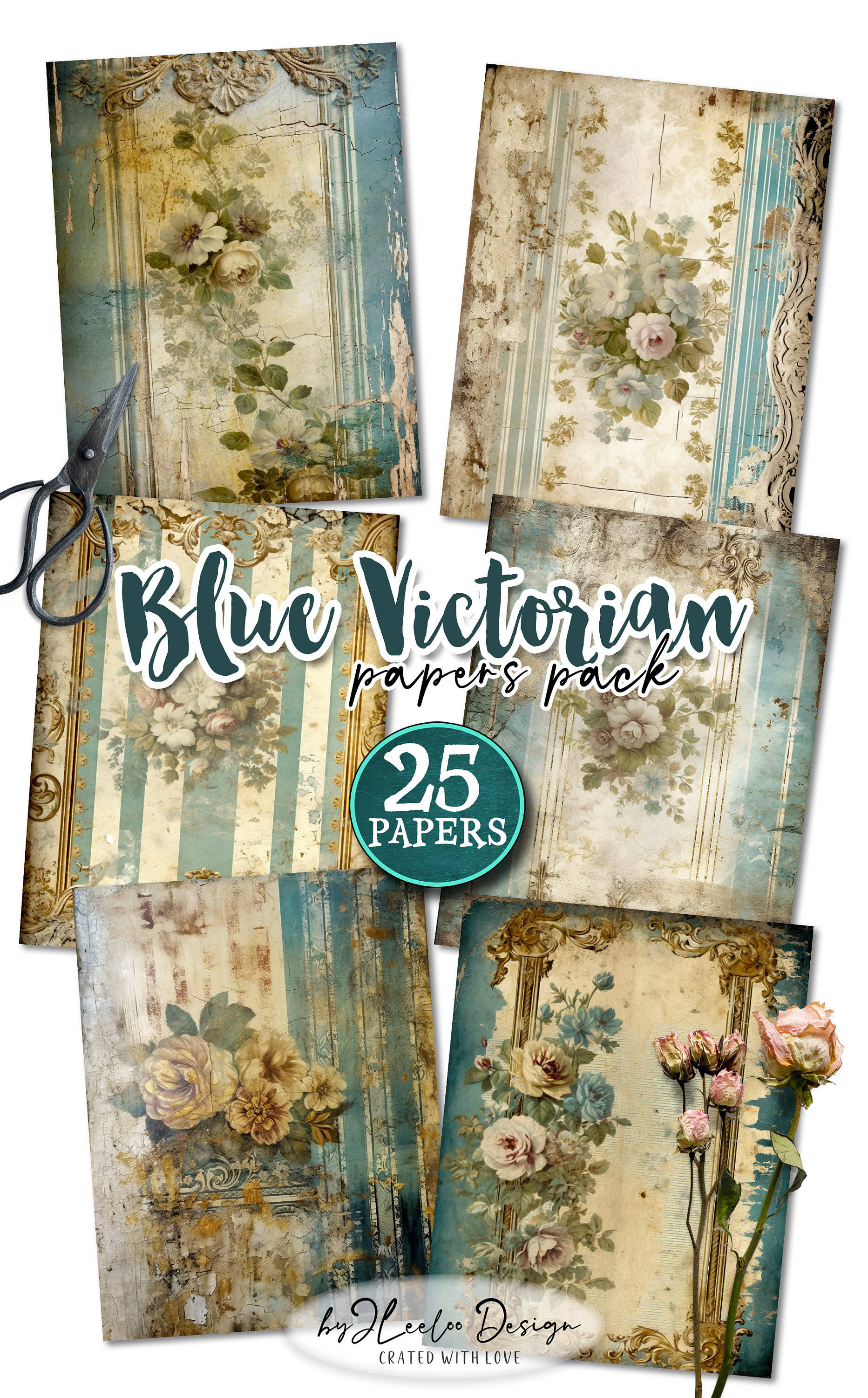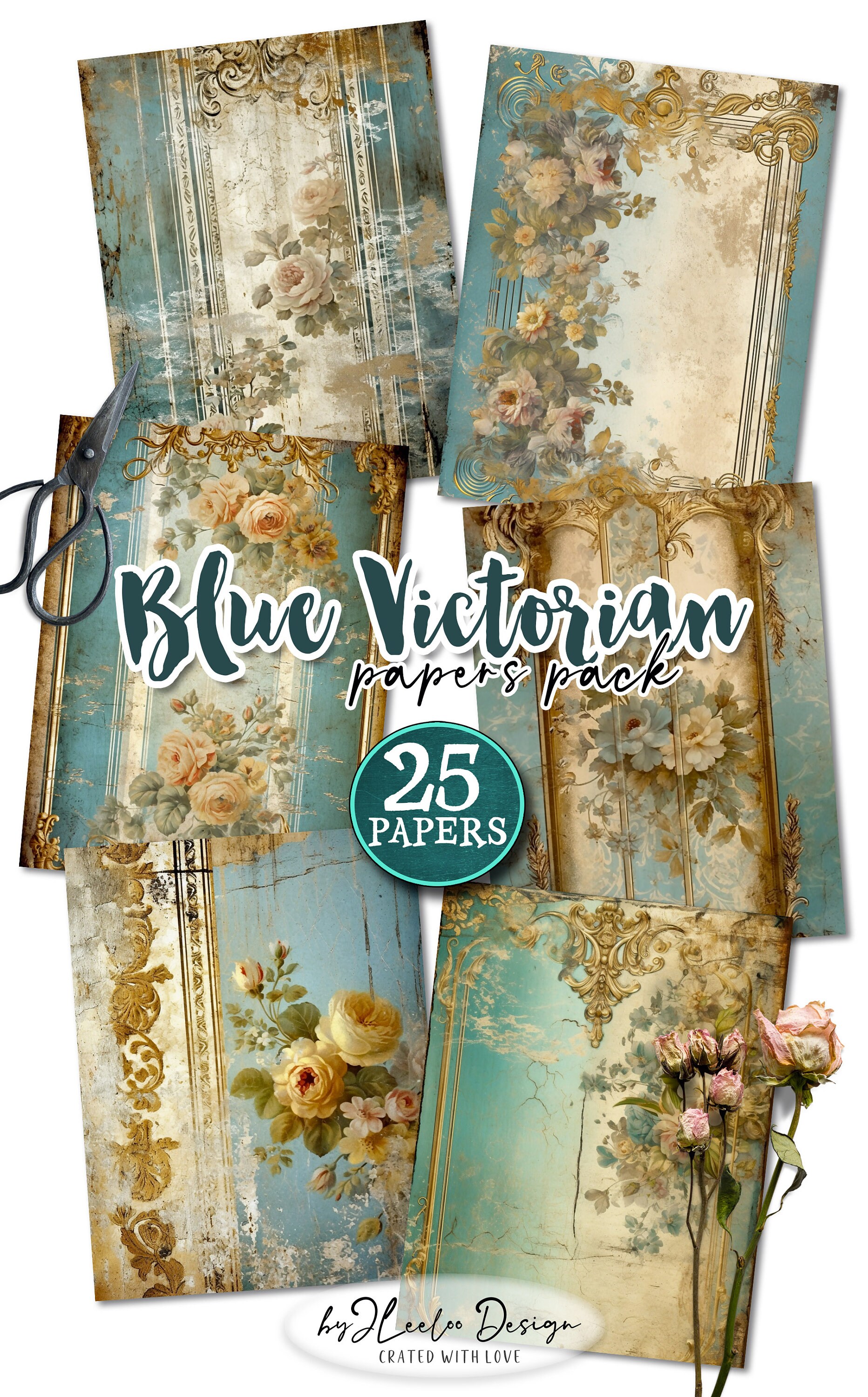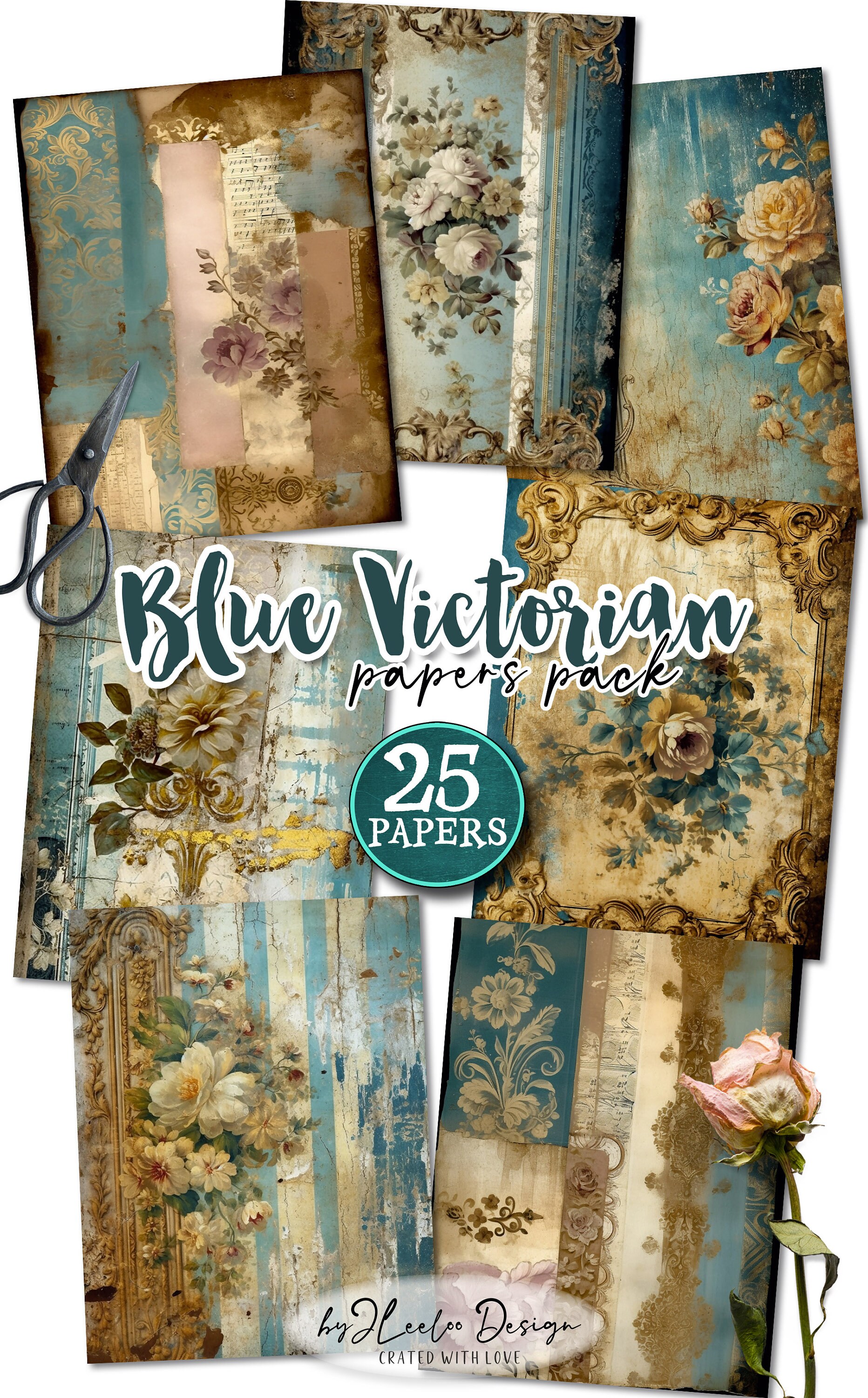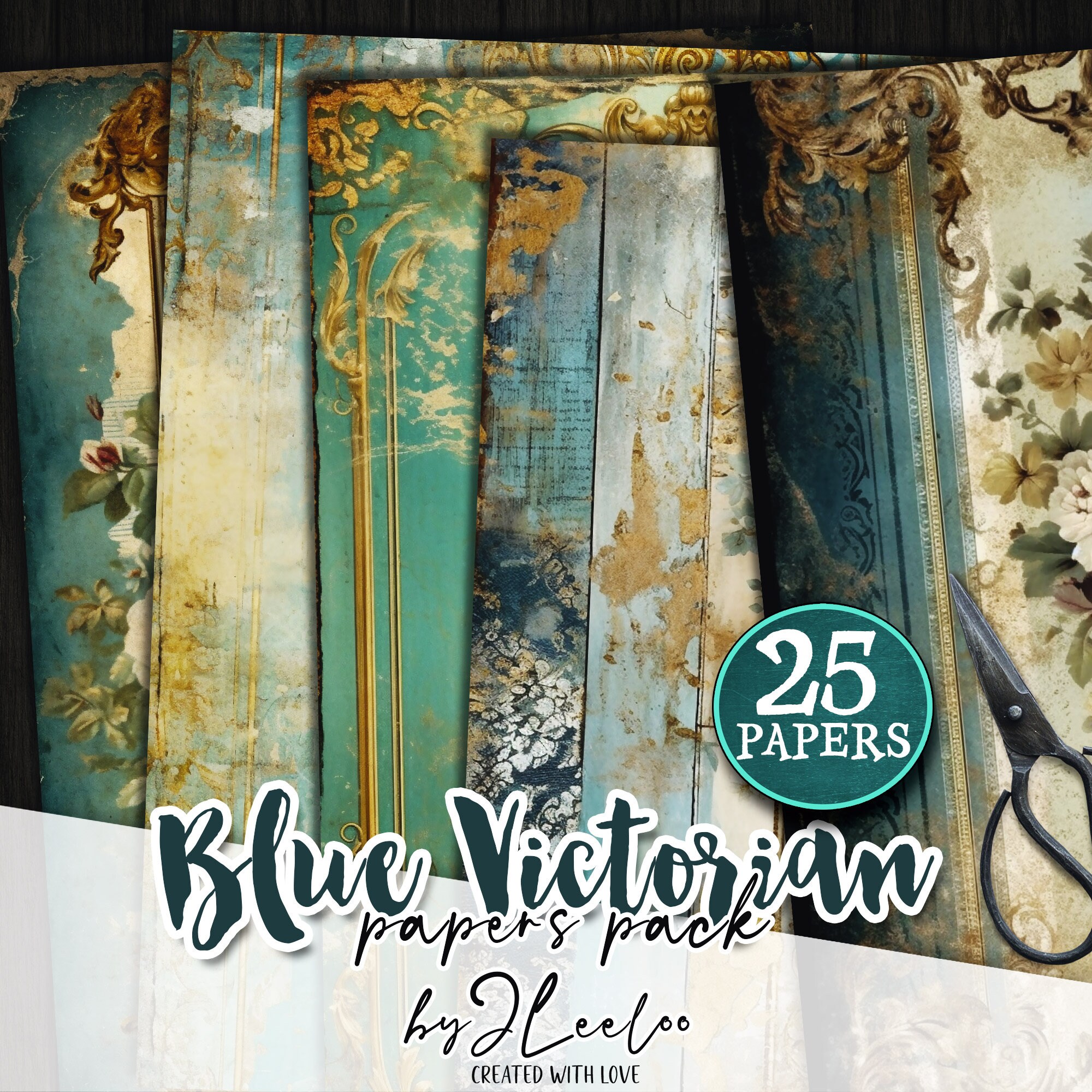 BLUE VICTORIAN french tattered papers | Shabby Chic Junk Journal pages | background Distressed card making digital ephemera | pp614