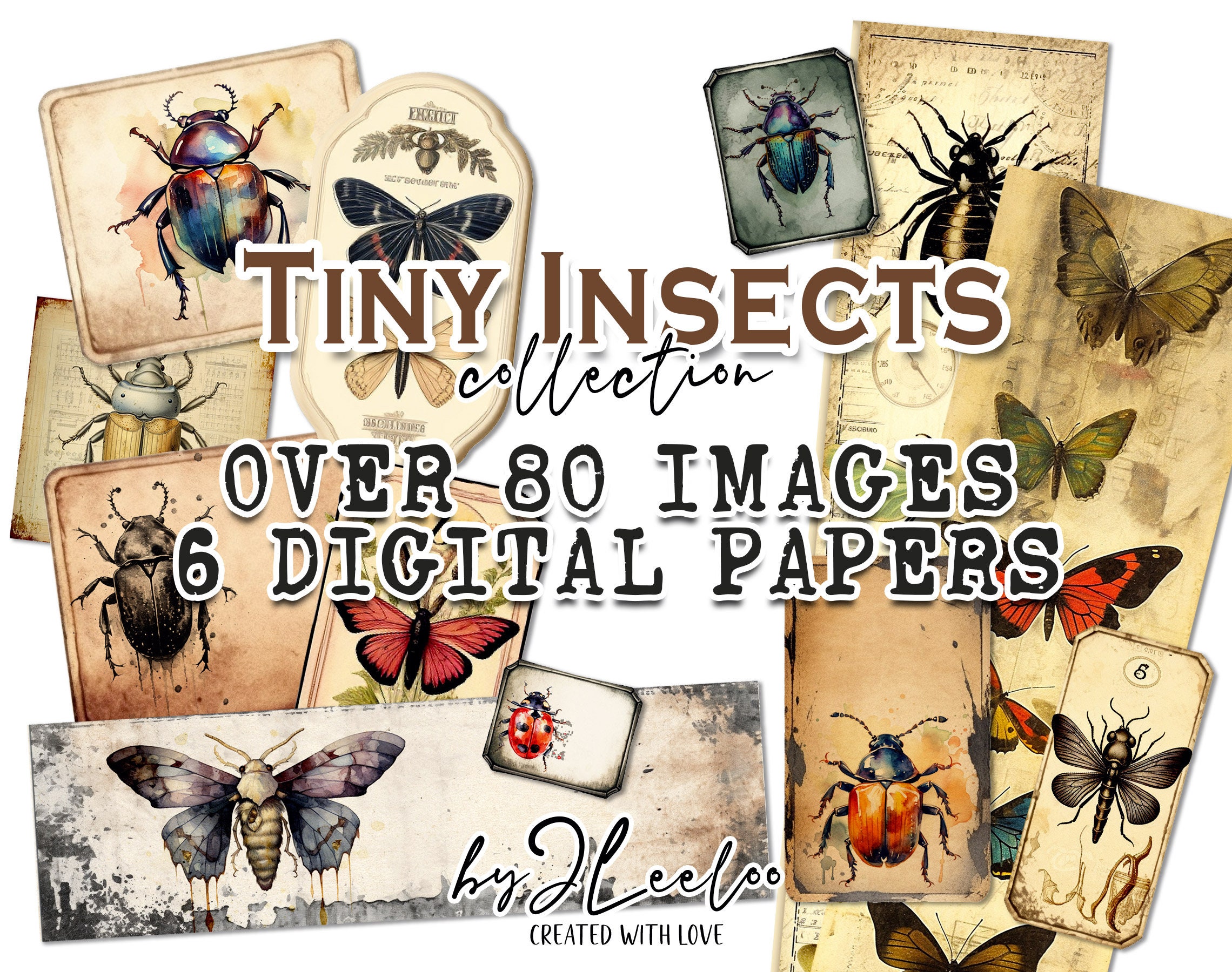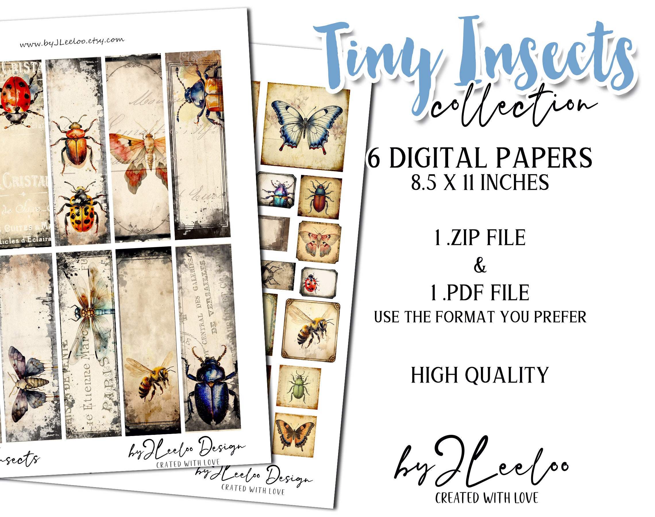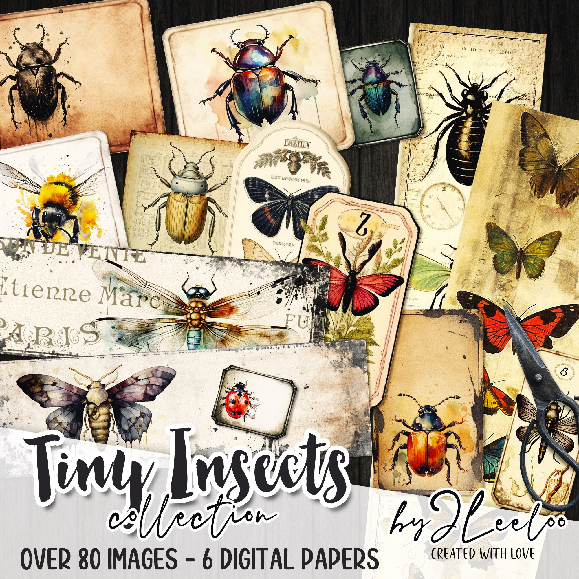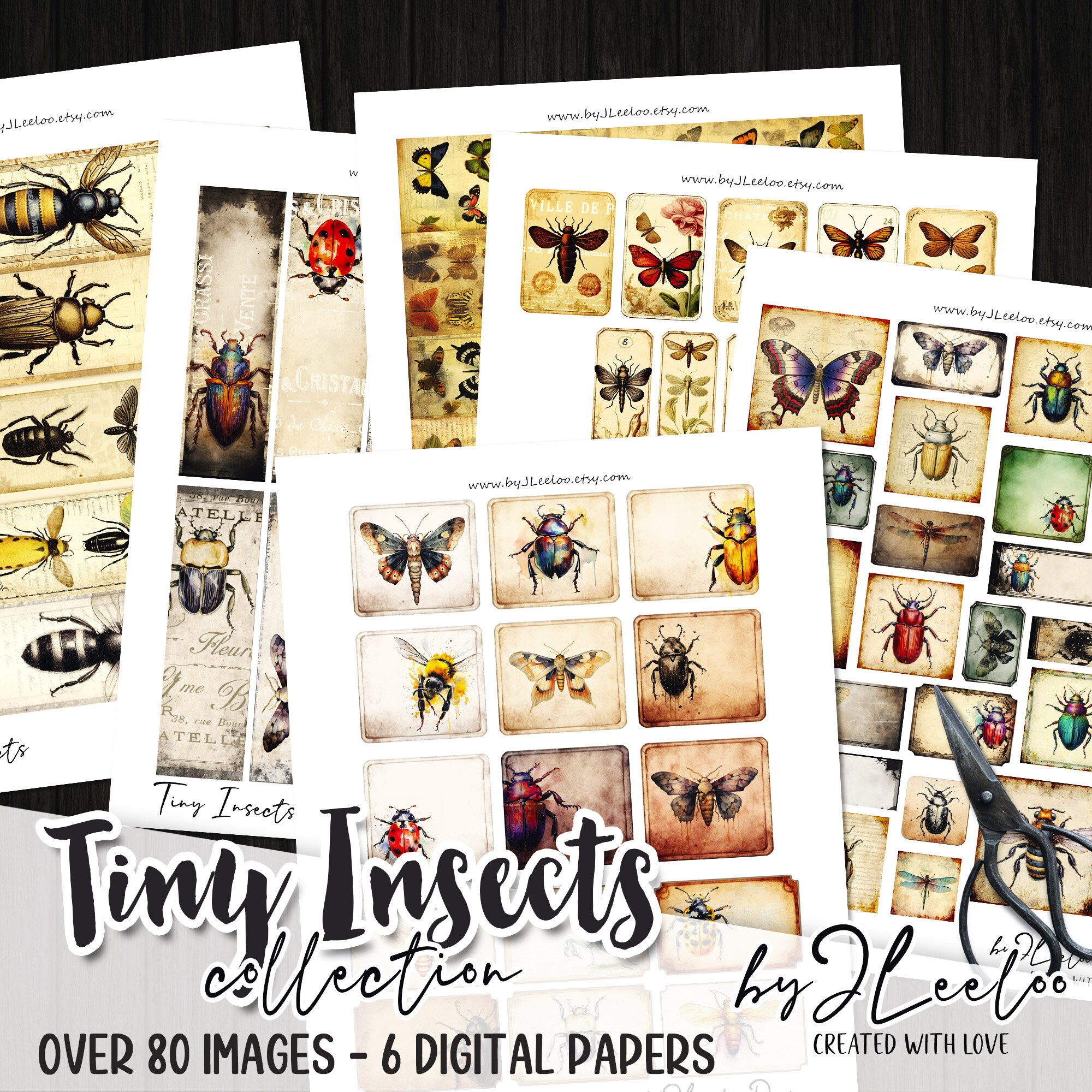 TINY INSECTS labels kit printable vintage entomology butterfly insect junk journal instant download printable digital collage sheet | tl258