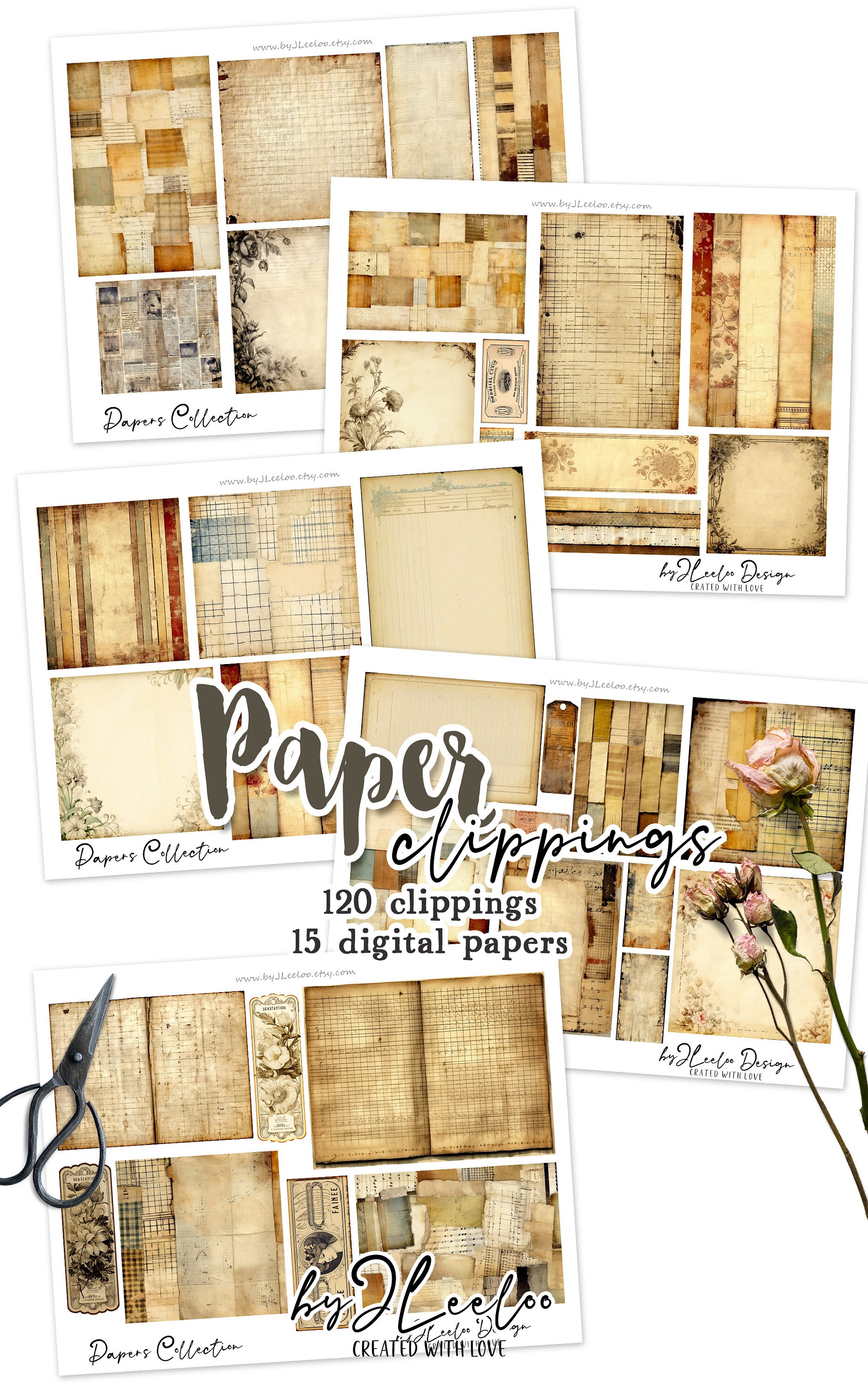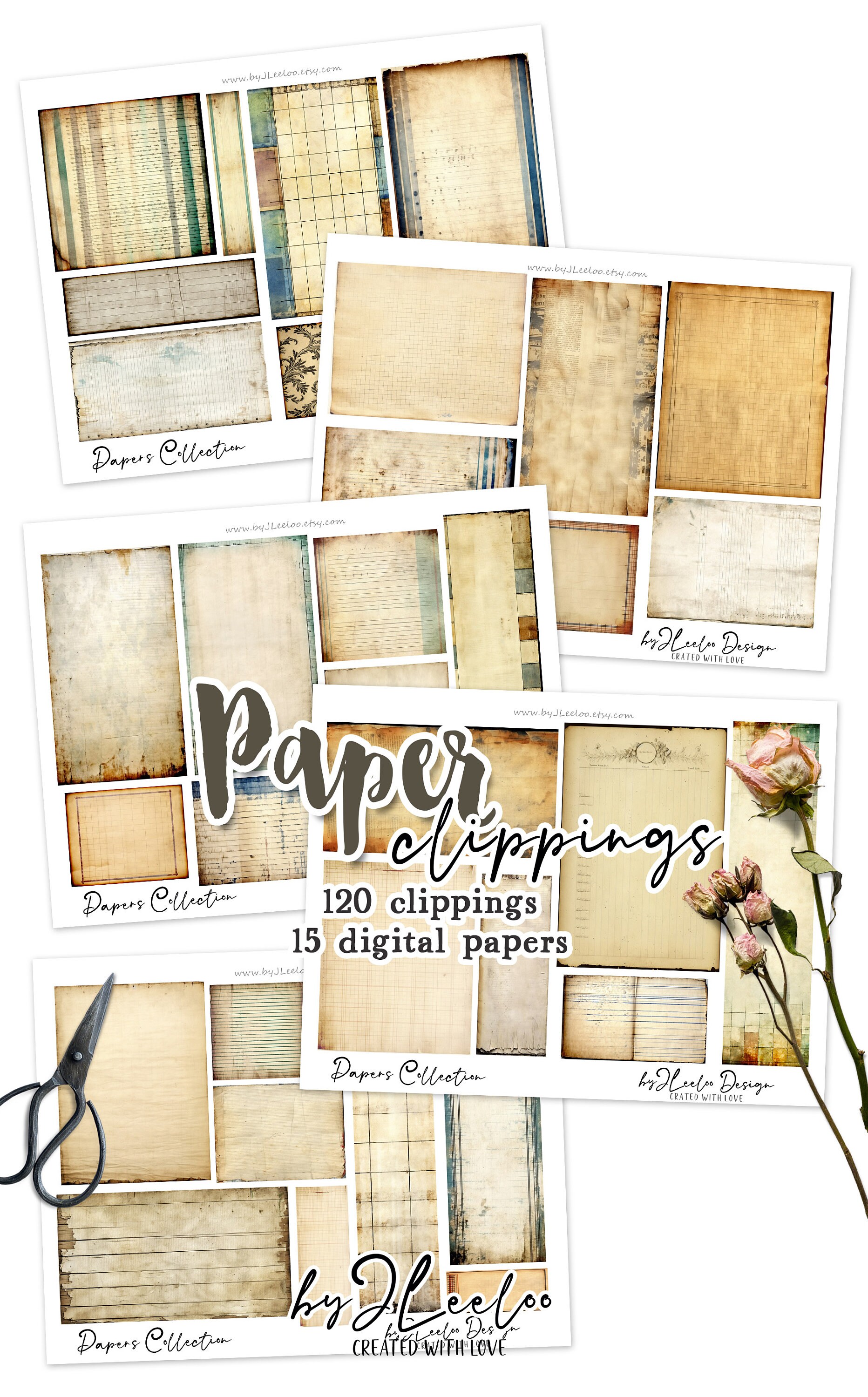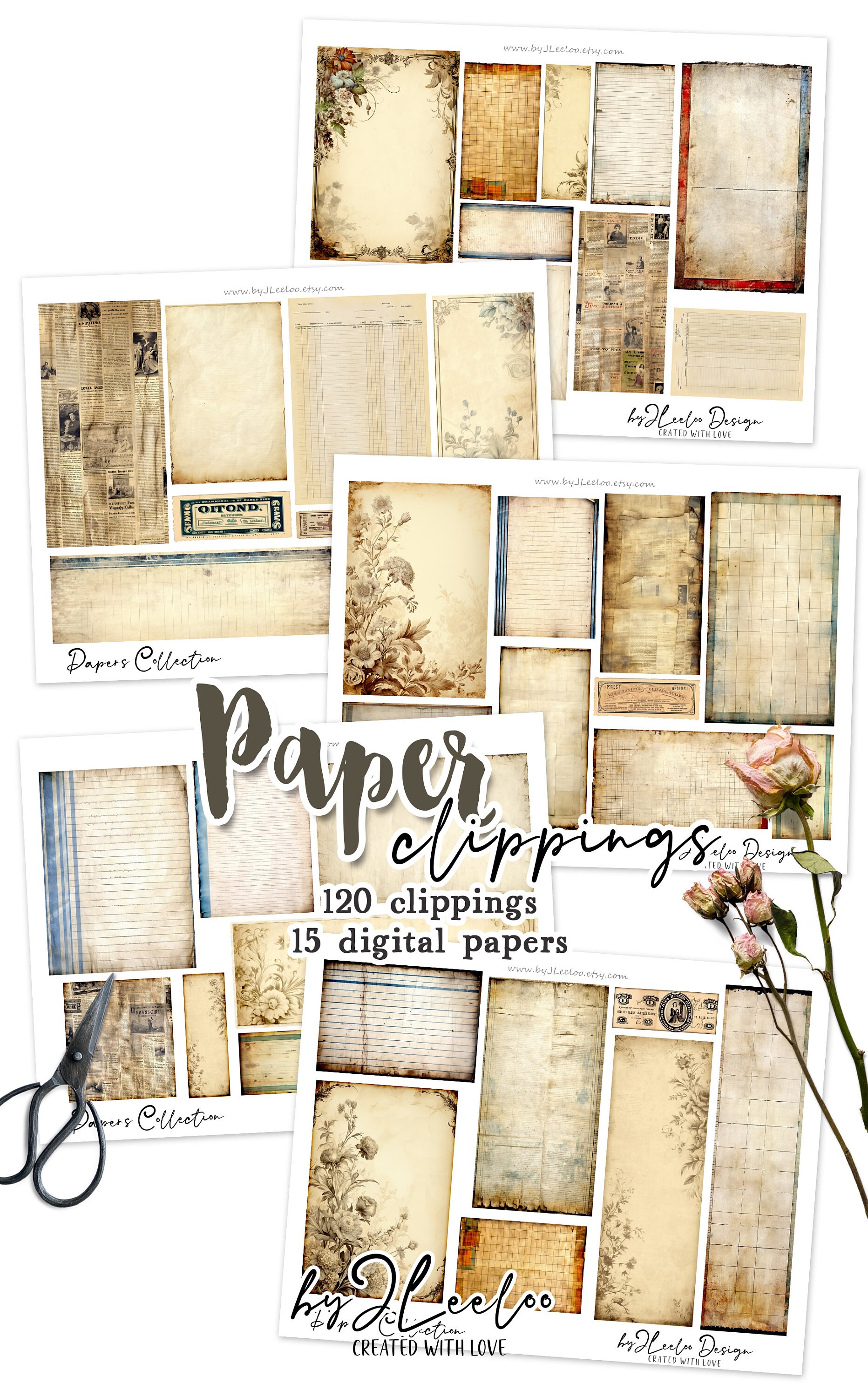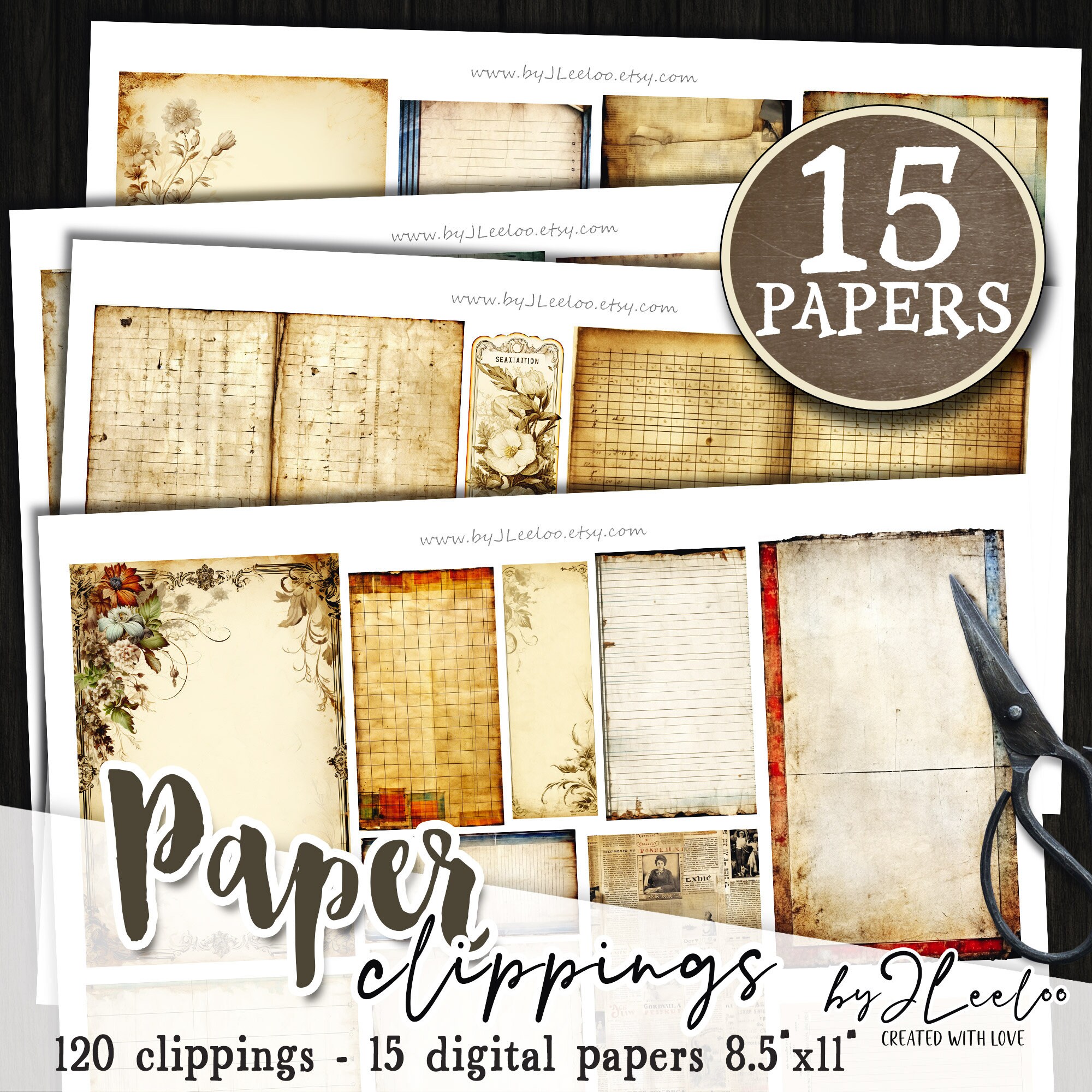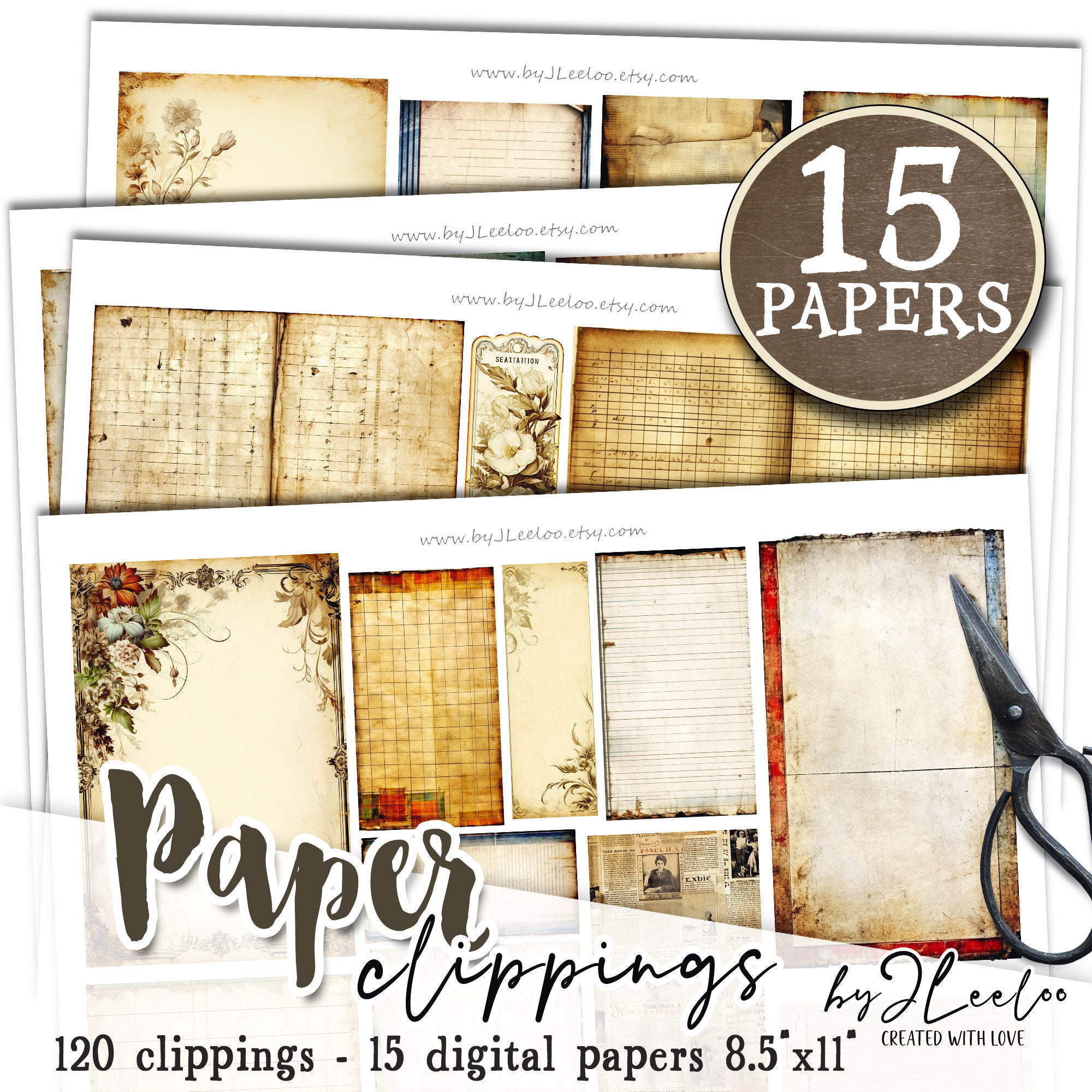 PAPER CLIPPINGS printable for junk journal | ephemera supplies card making collage | printable paper bundle vintage stationery | pp623