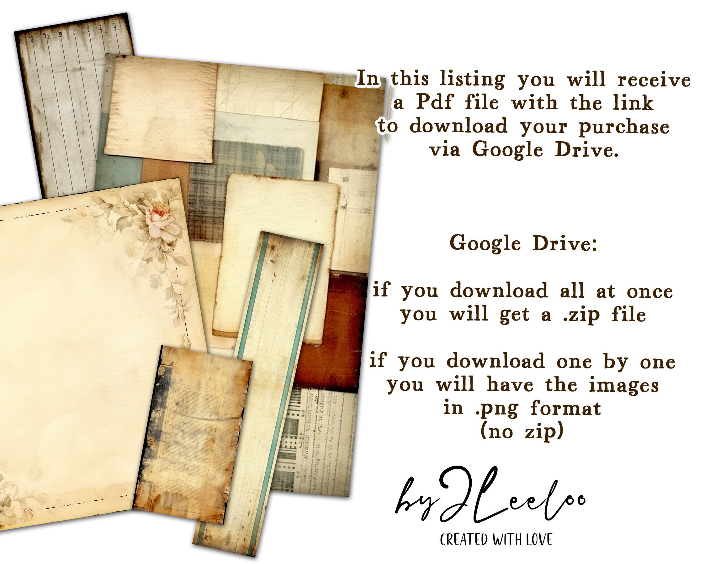 1 Pdf file where you will find the link via Google Drive to download your new digital papers (no zip)