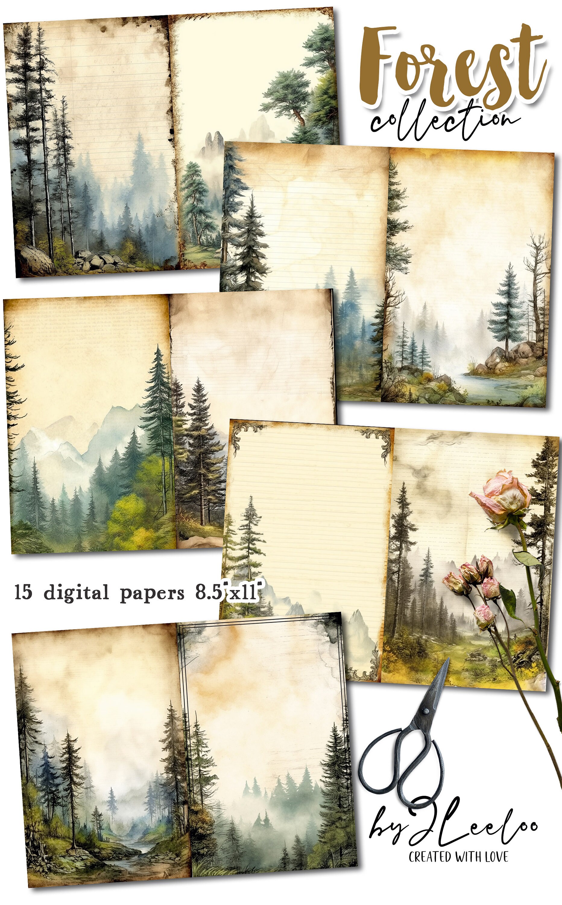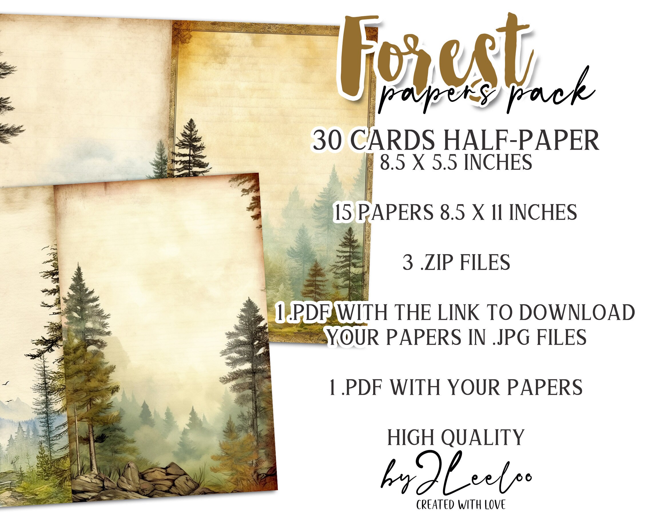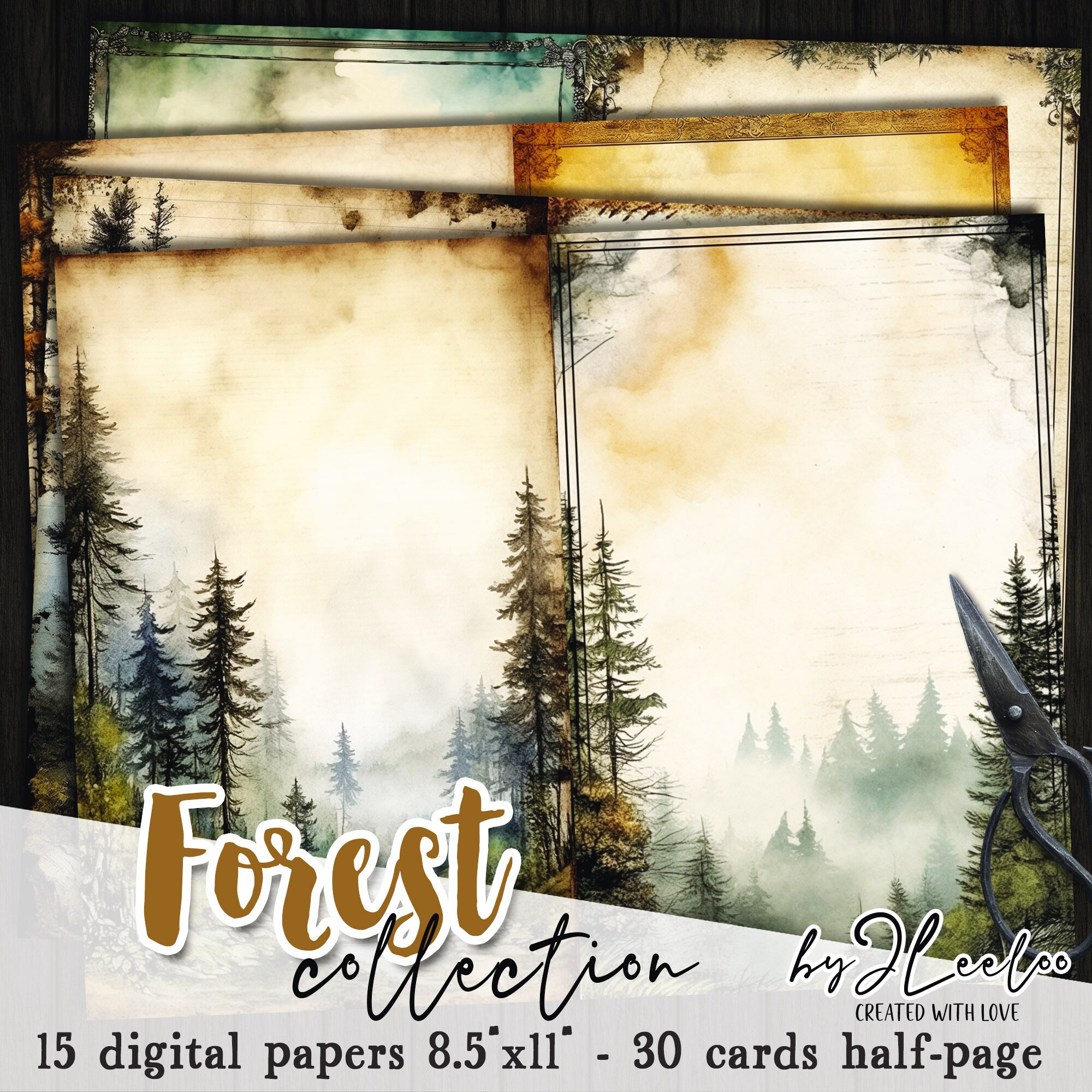 FOREST half pages printable for junk journal | watercolor forest scene | supplies card making woodland collage | vintage stationery | pp622