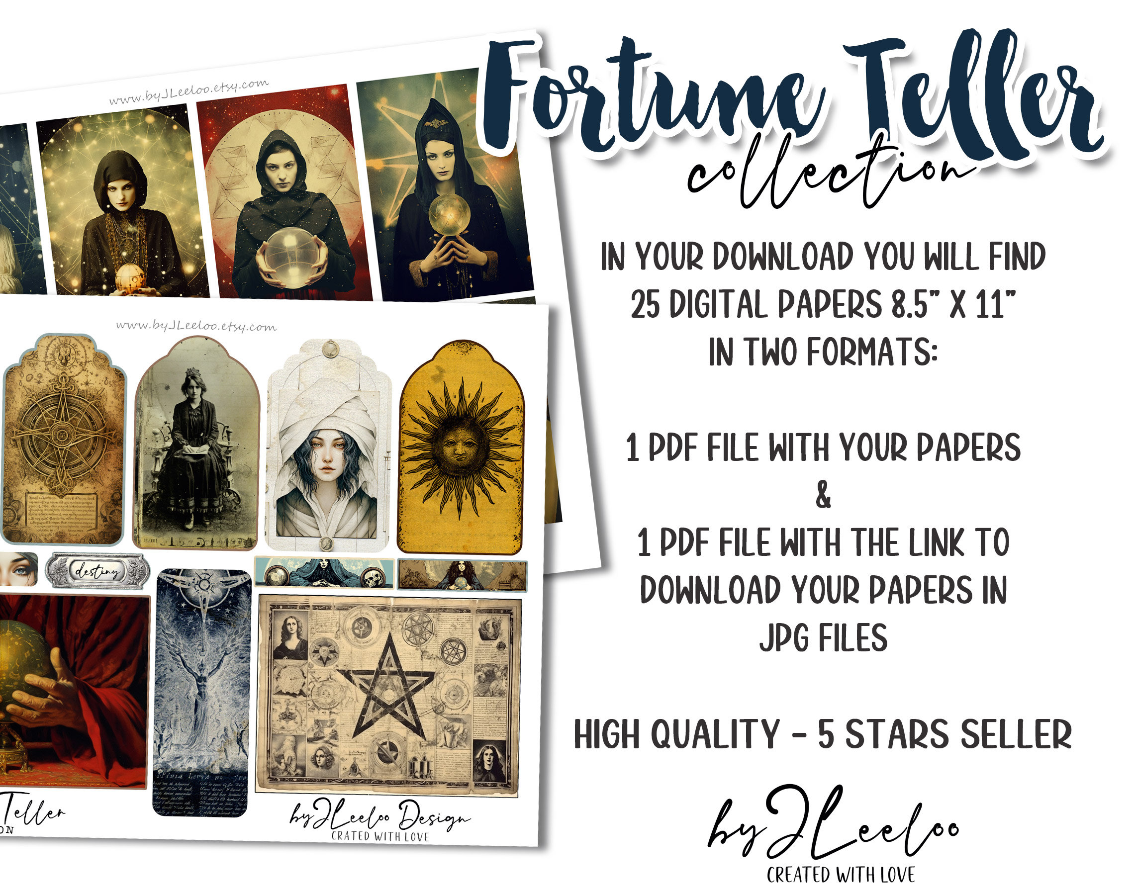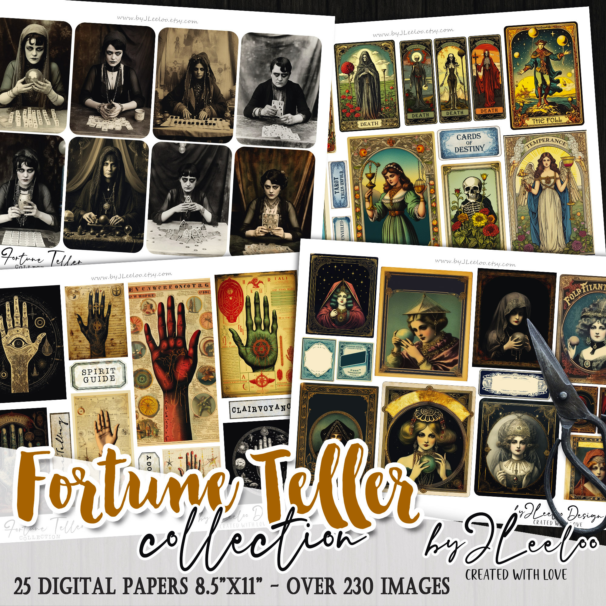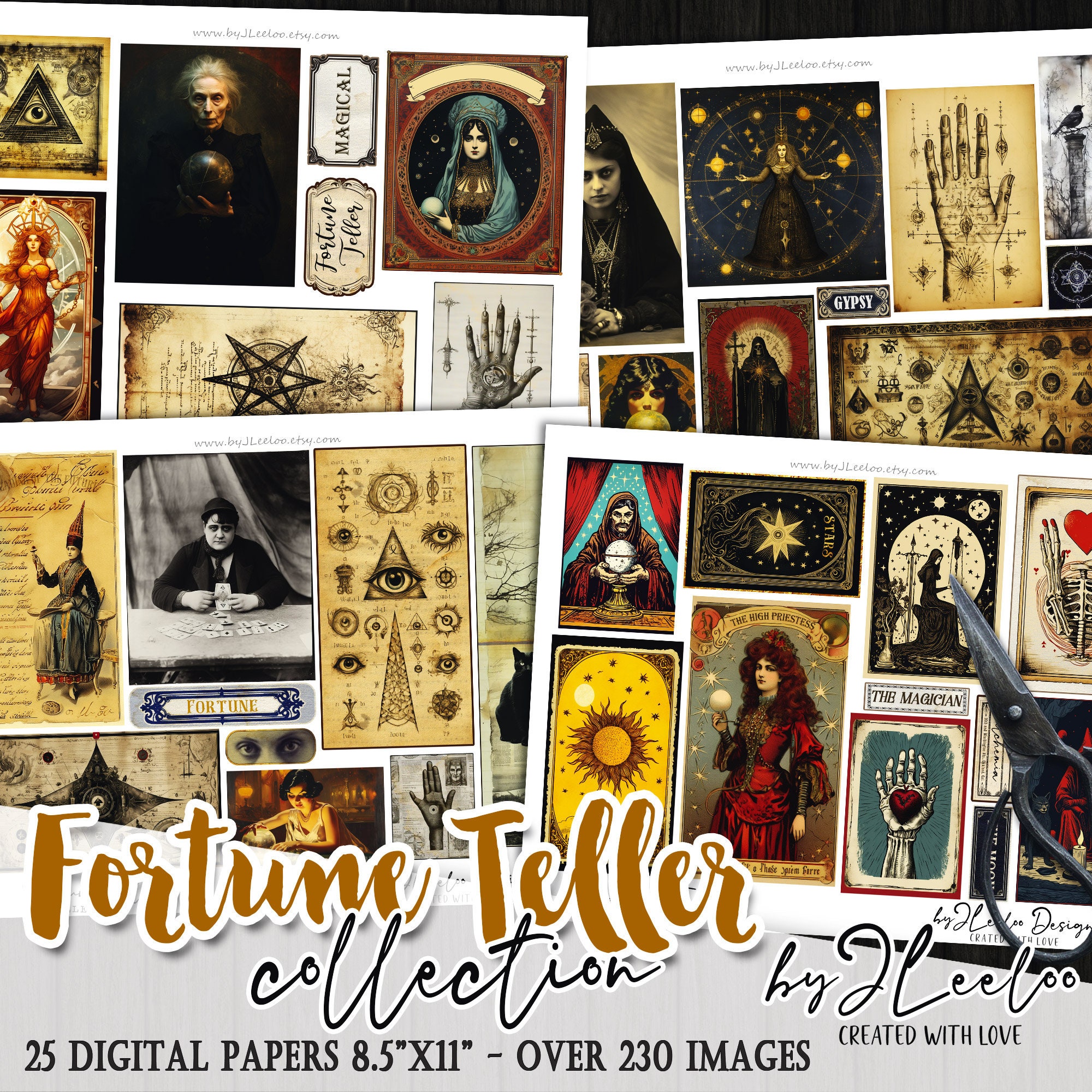 FORTUNE TELLER Collection 230 images | Tarot mystic scrapbook junk journal digital ephemera supplies | photo cards halloween Bundle | pp624