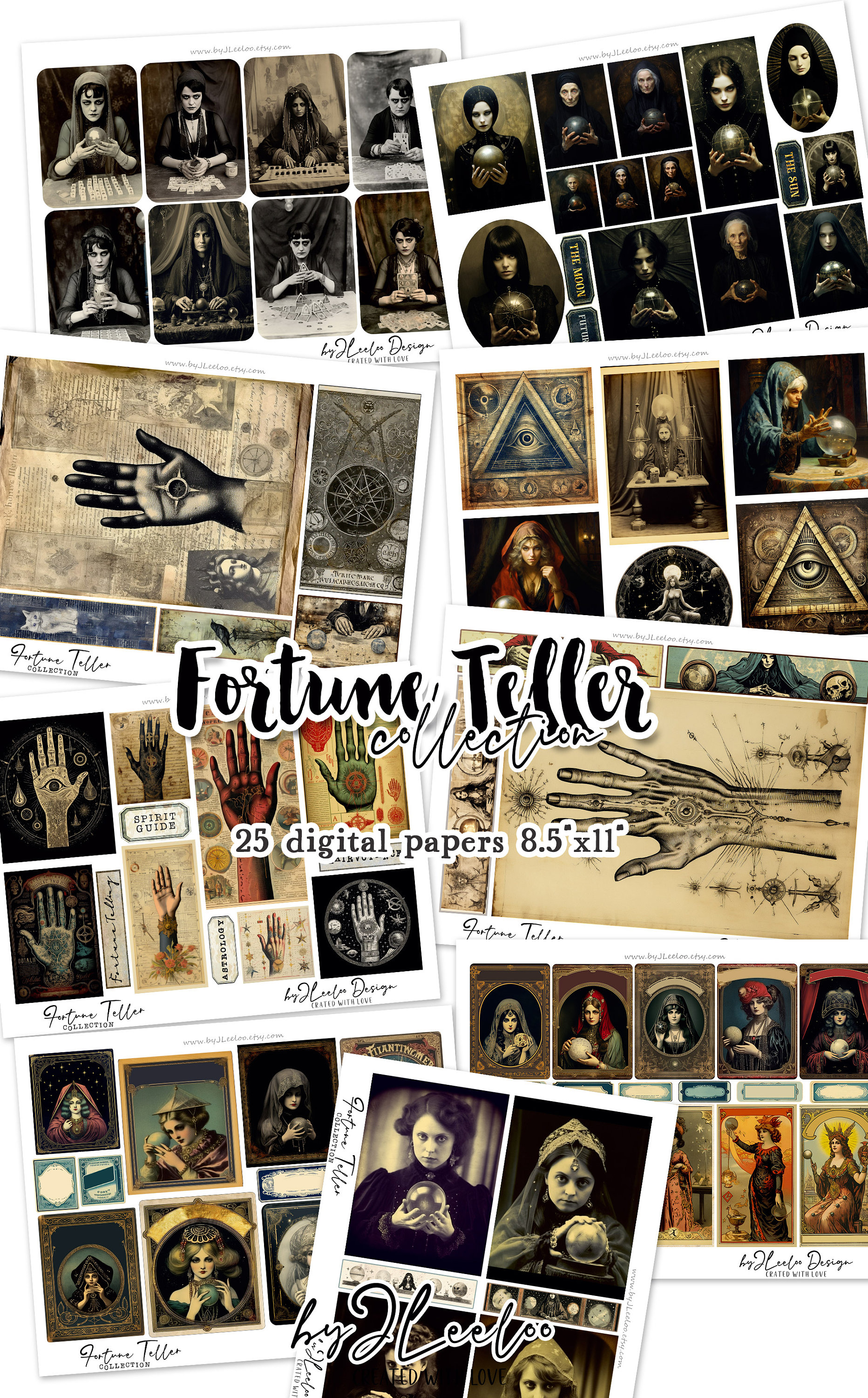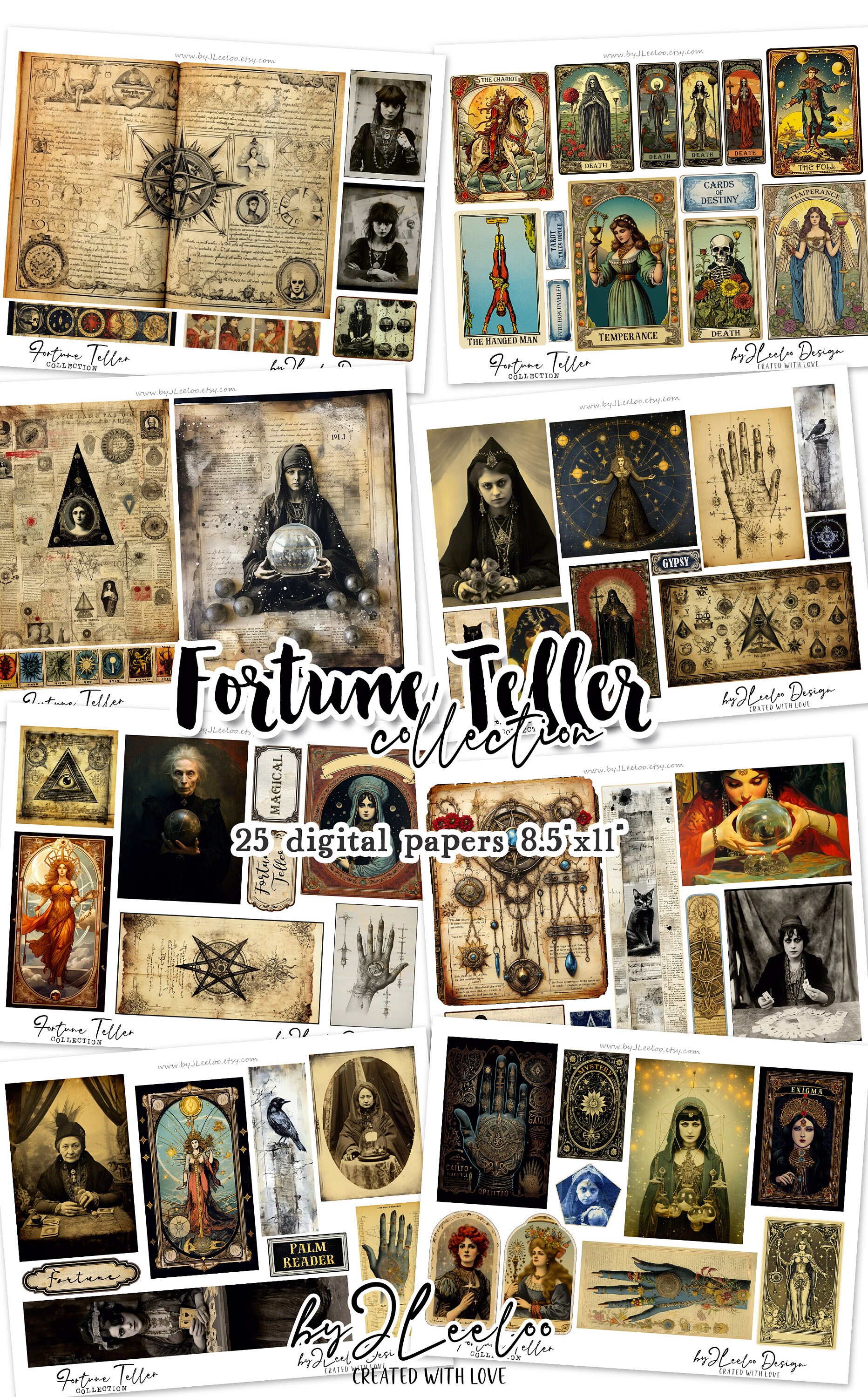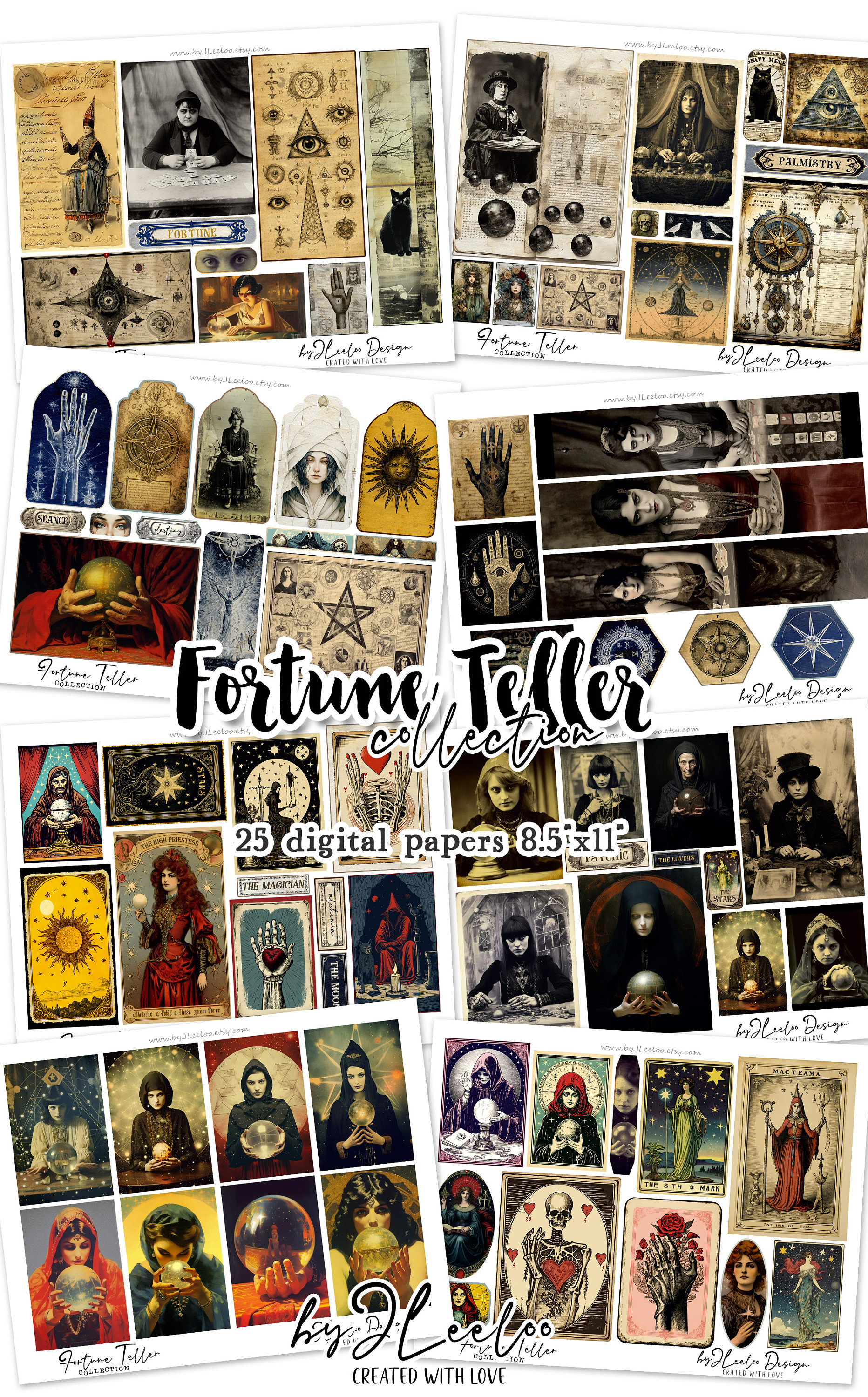 FORTUNE TELLER Collection 230 images | Tarot mystic scrapbook junk journal digital ephemera supplies | photo cards halloween Bundle | pp624