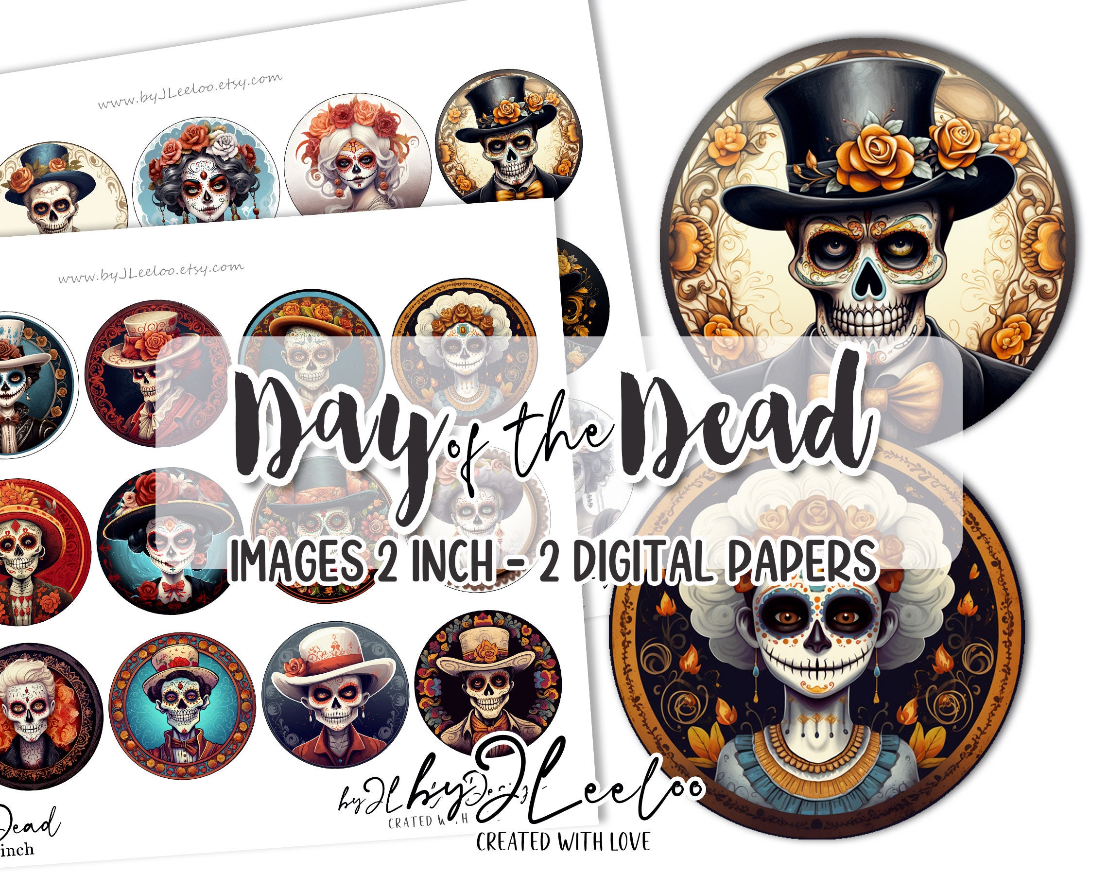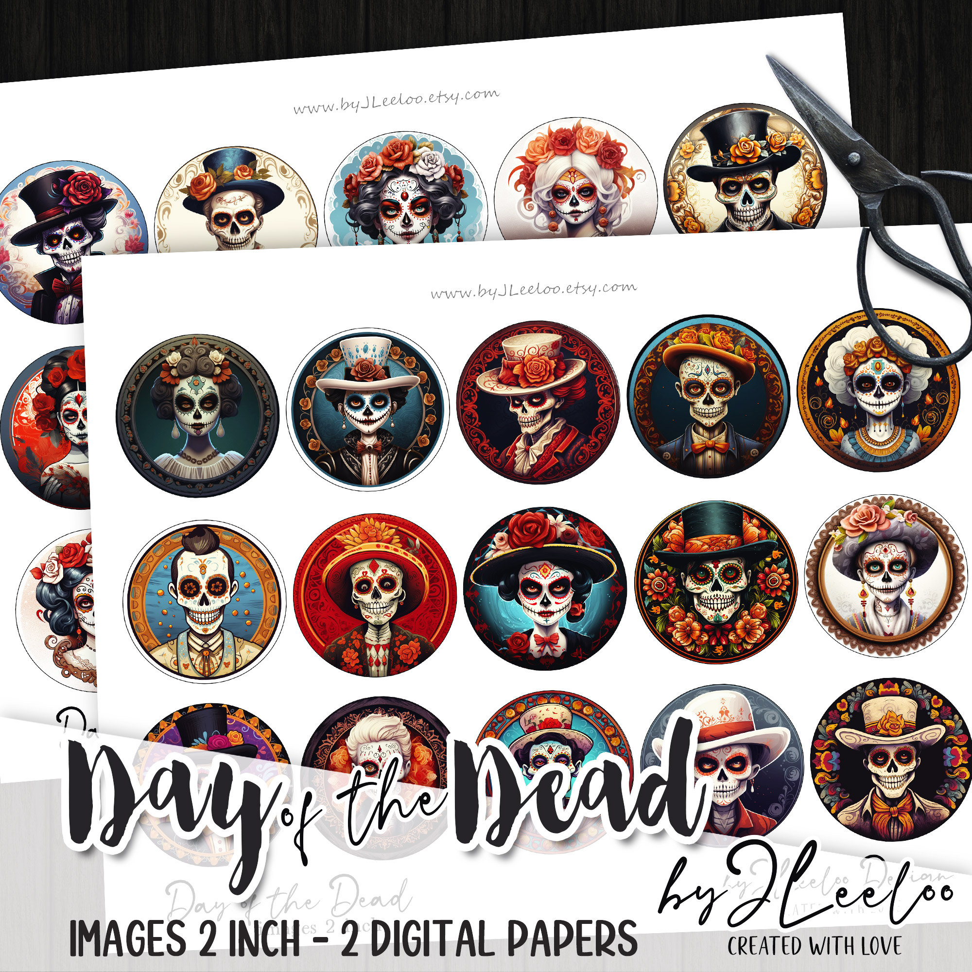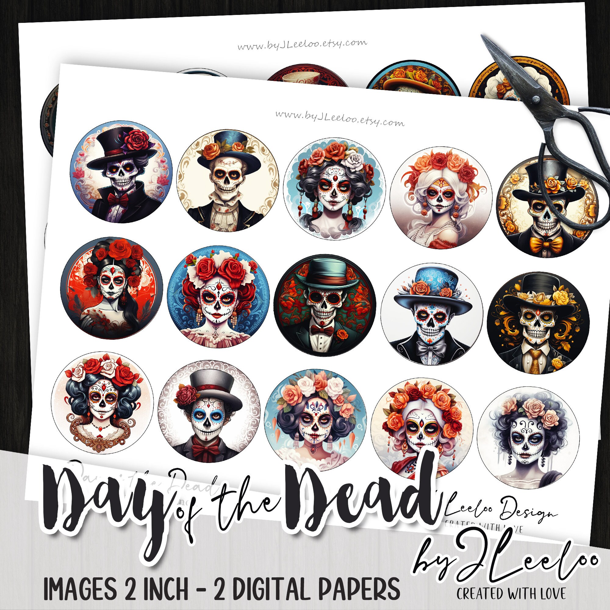 DAY of the DEAD 2 inch sugar skull round pendants | printable halloween sheet digital images | la Catrina skull skeleton | tn661
