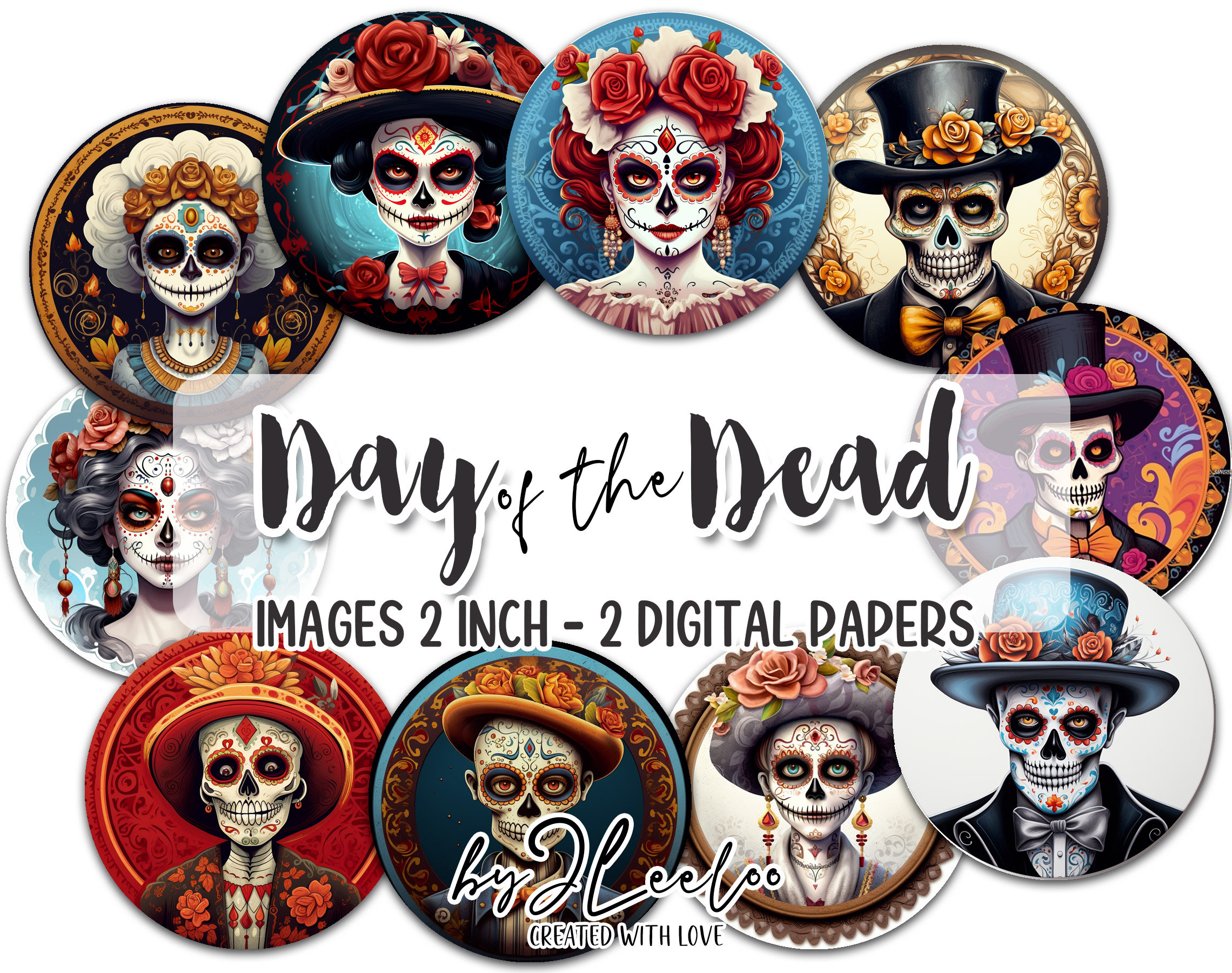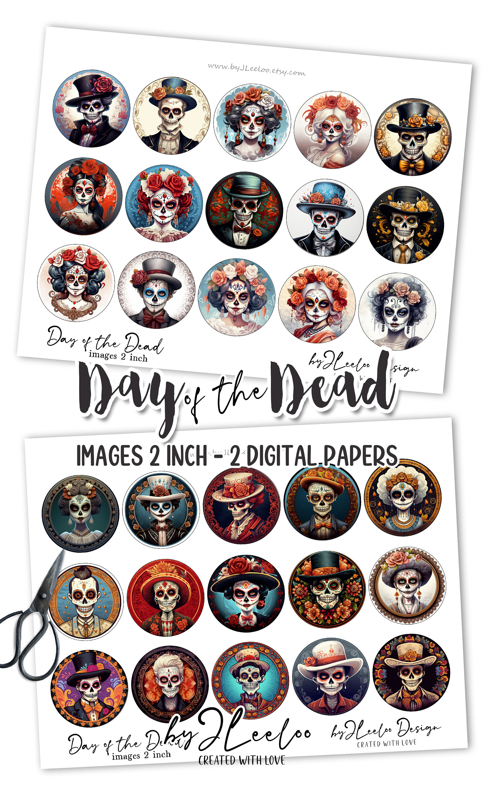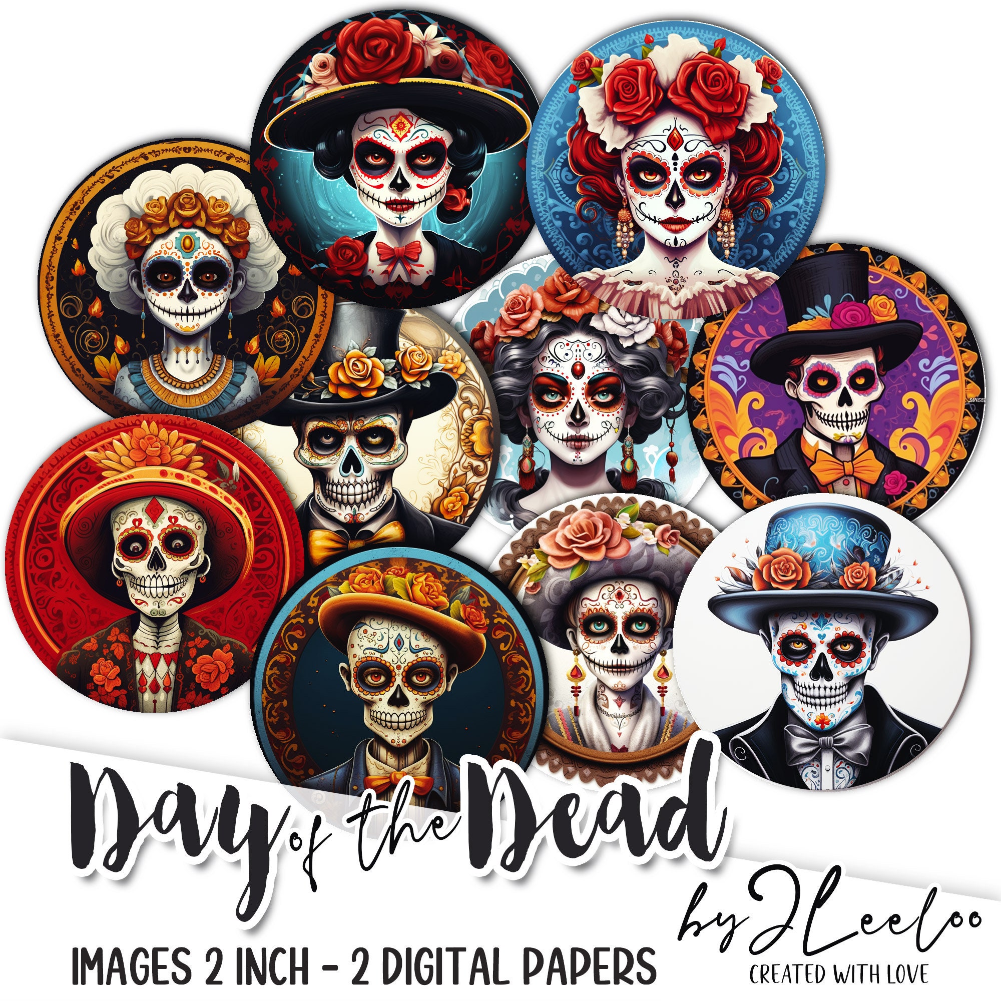 DAY of the DEAD 2 inch sugar skull round pendants | printable halloween sheet digital images | la Catrina skull skeleton | tn661