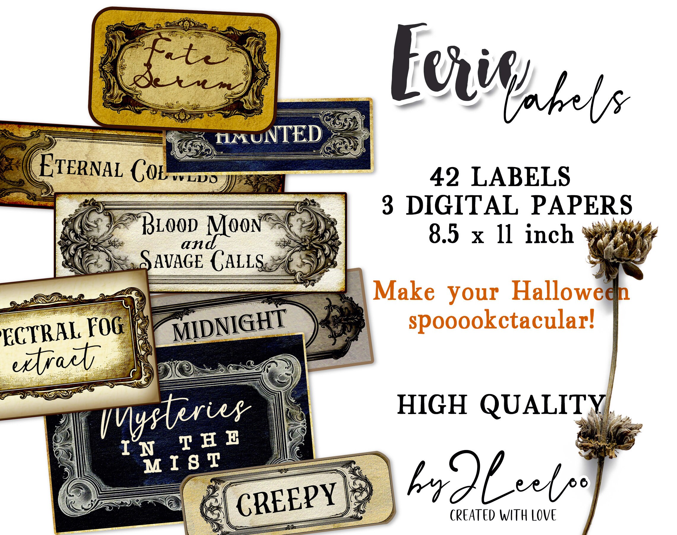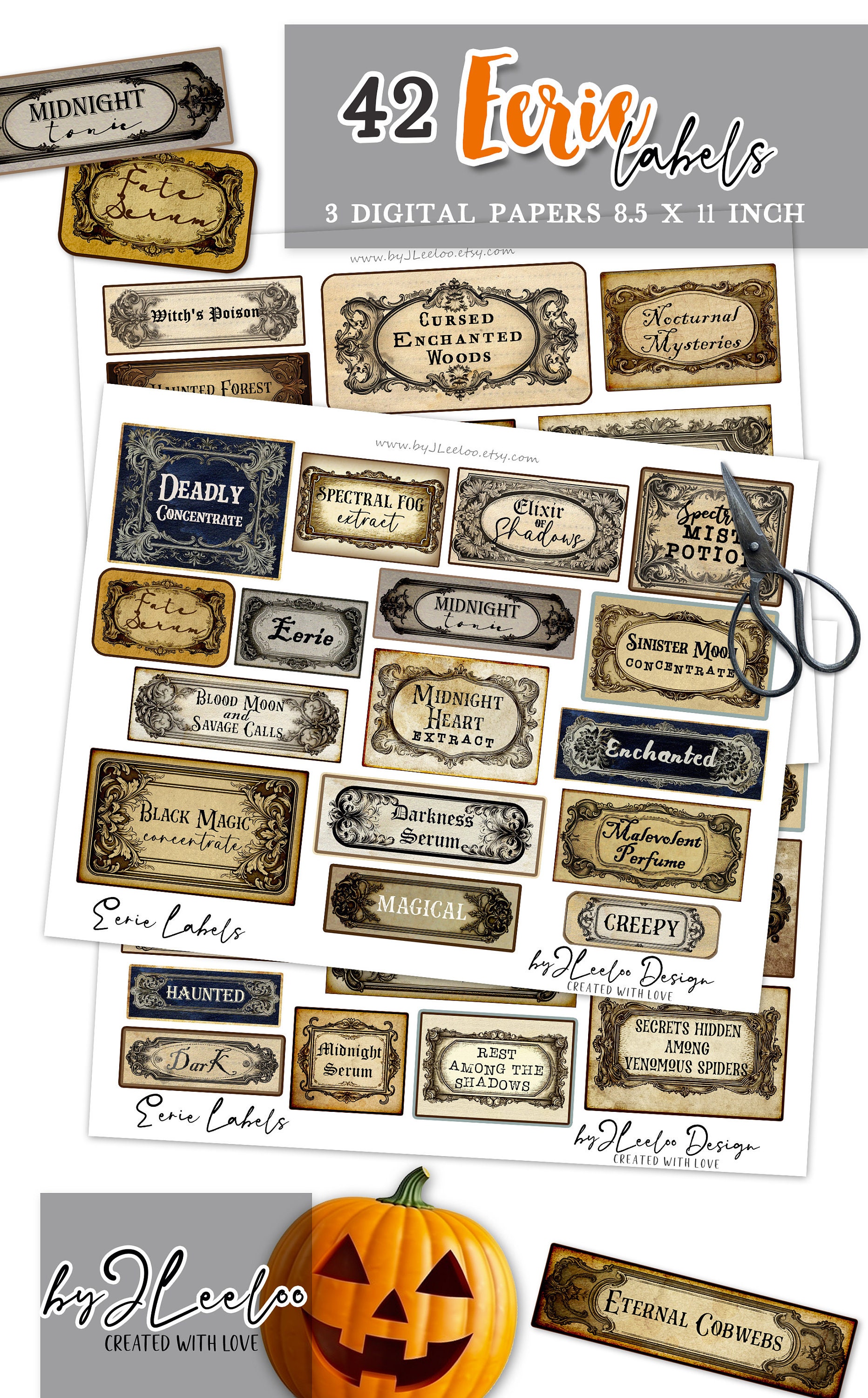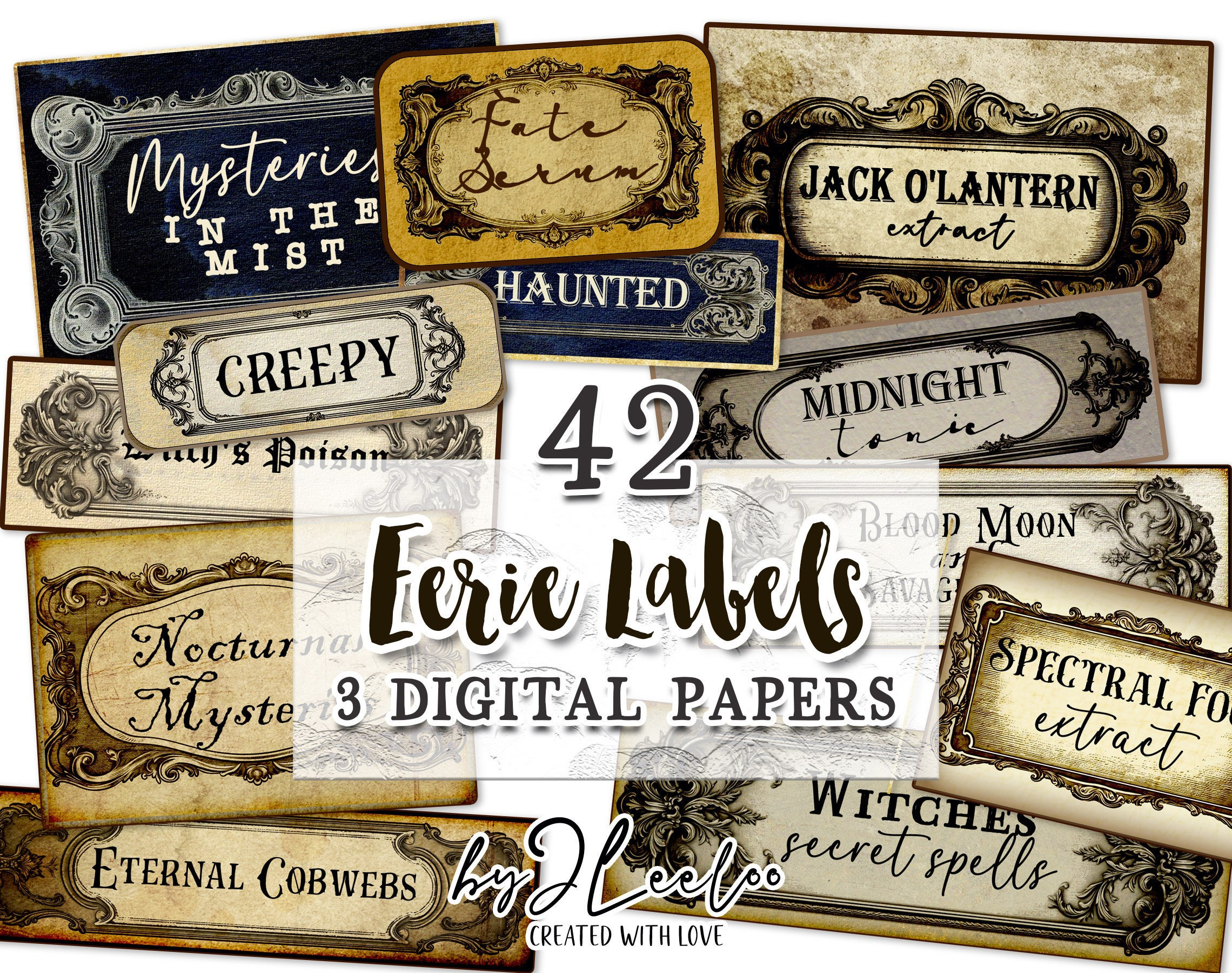 EERIE LABELS vintage apothecary | Witch Halloween supplies | Junk journal stickers potion and poison labels | Digital Download | tl262