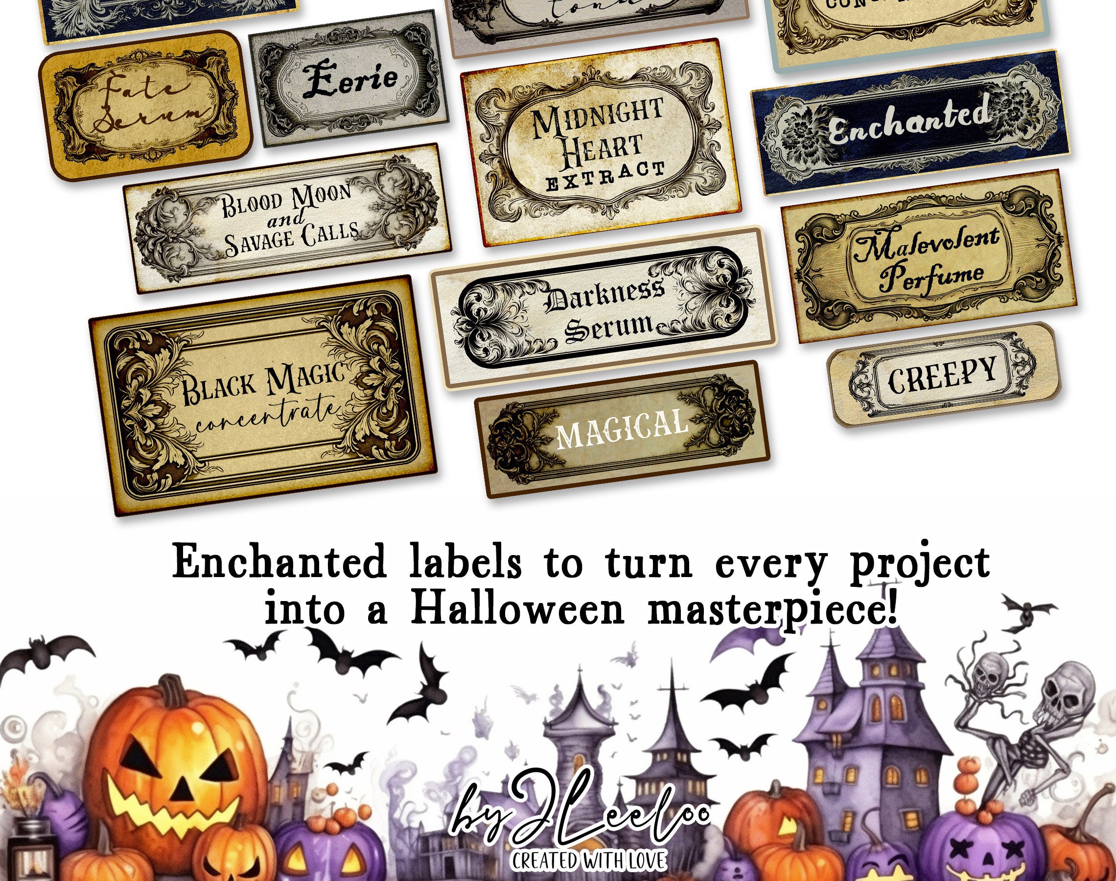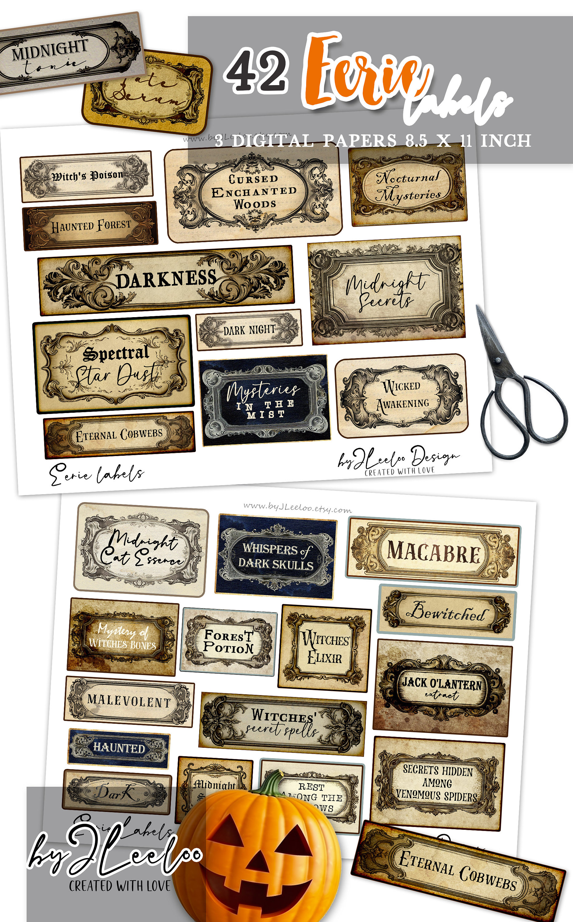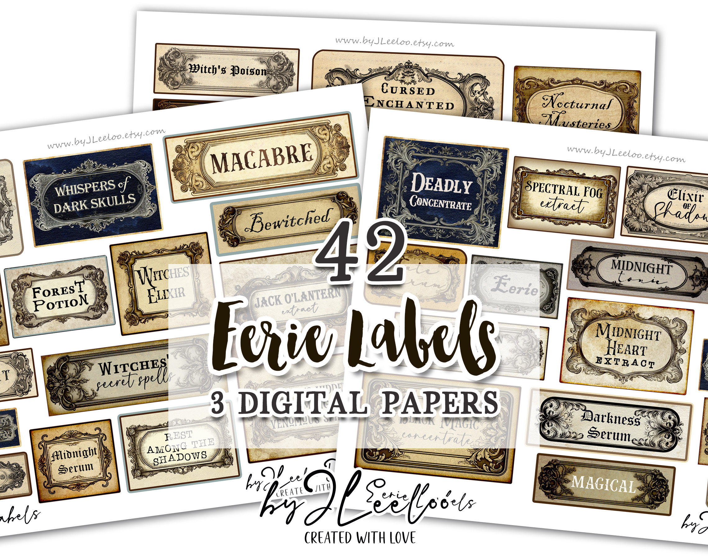 EERIE LABELS vintage apothecary | Witch Halloween supplies | Junk journal stickers potion and poison labels | Digital Download | tl262
