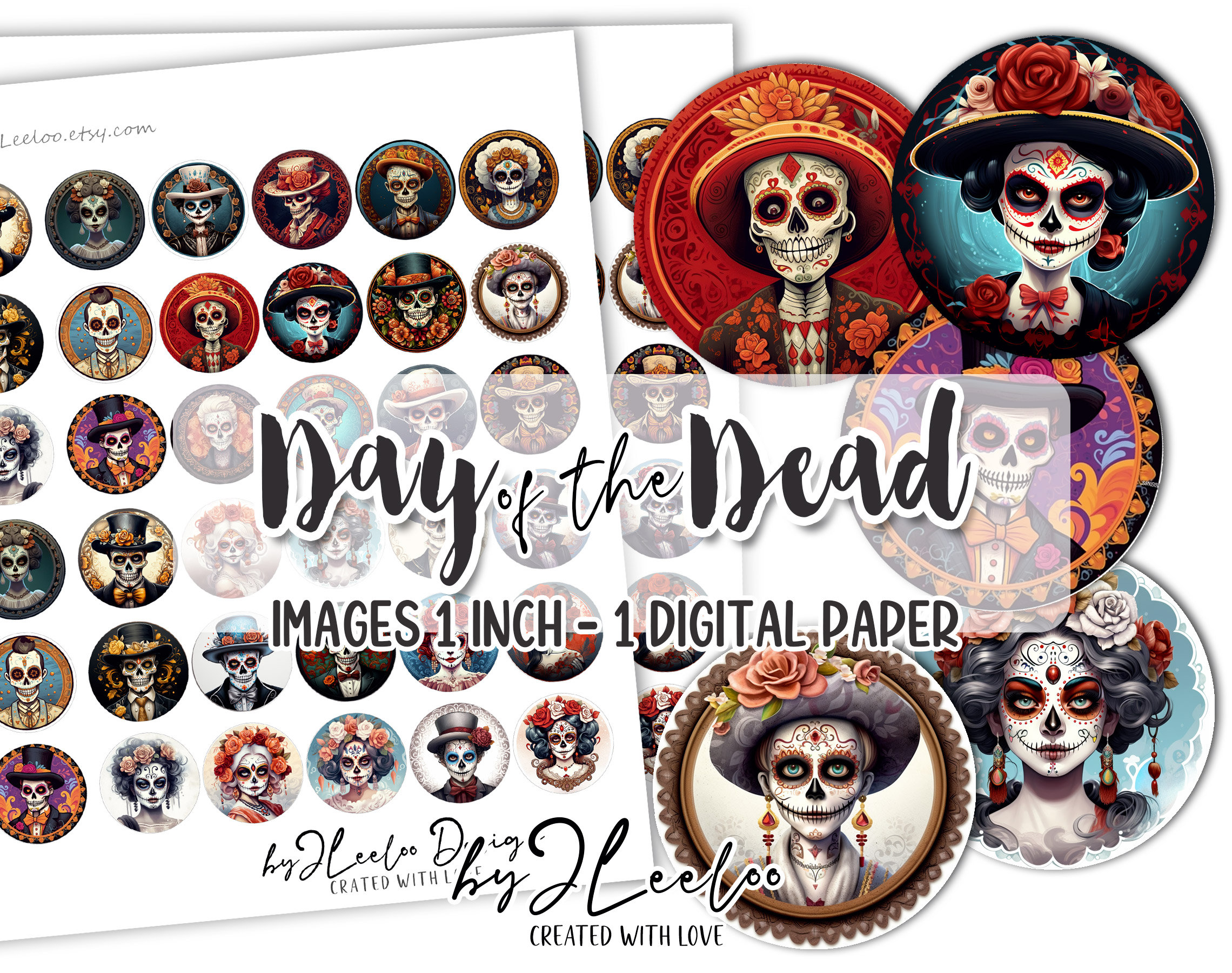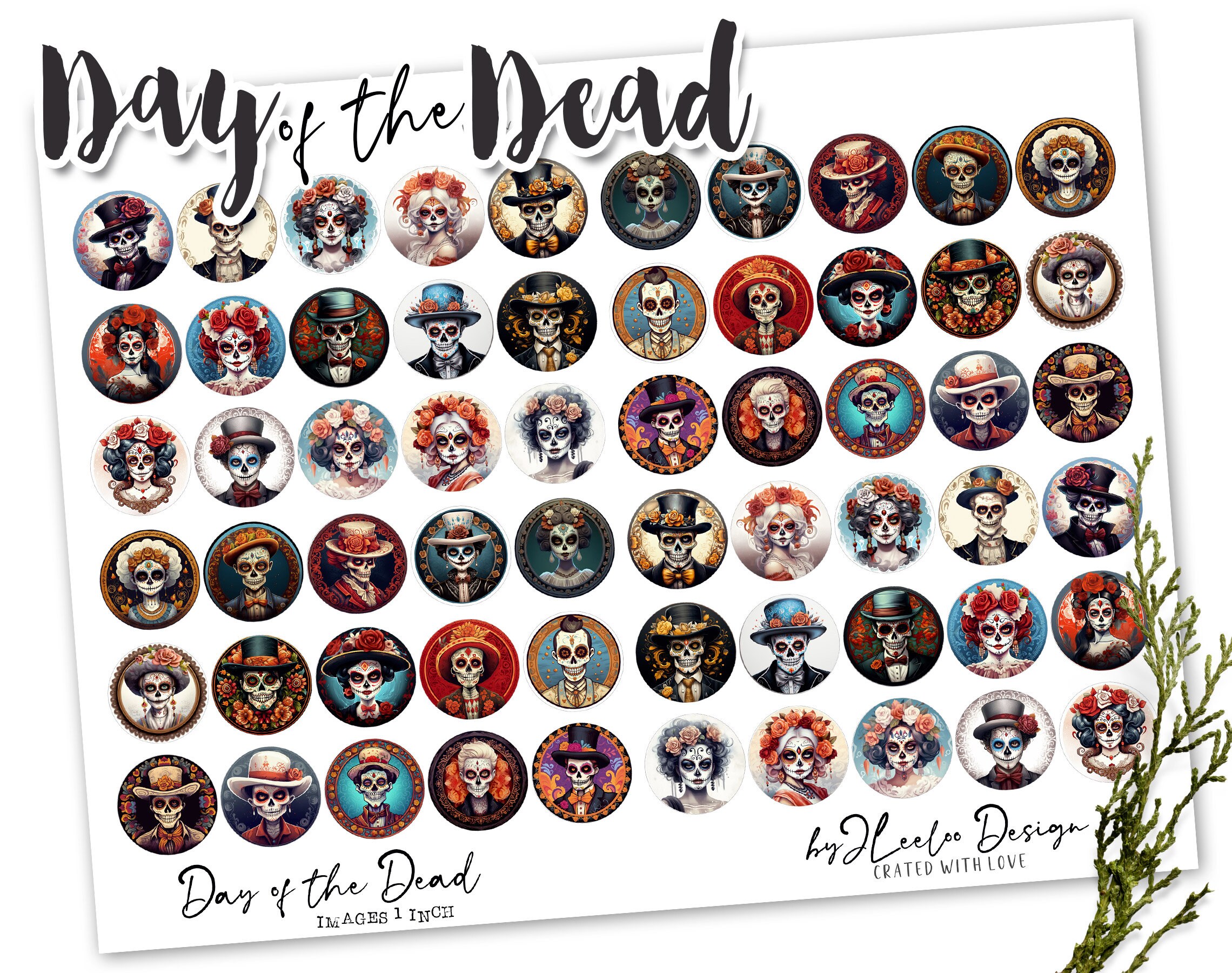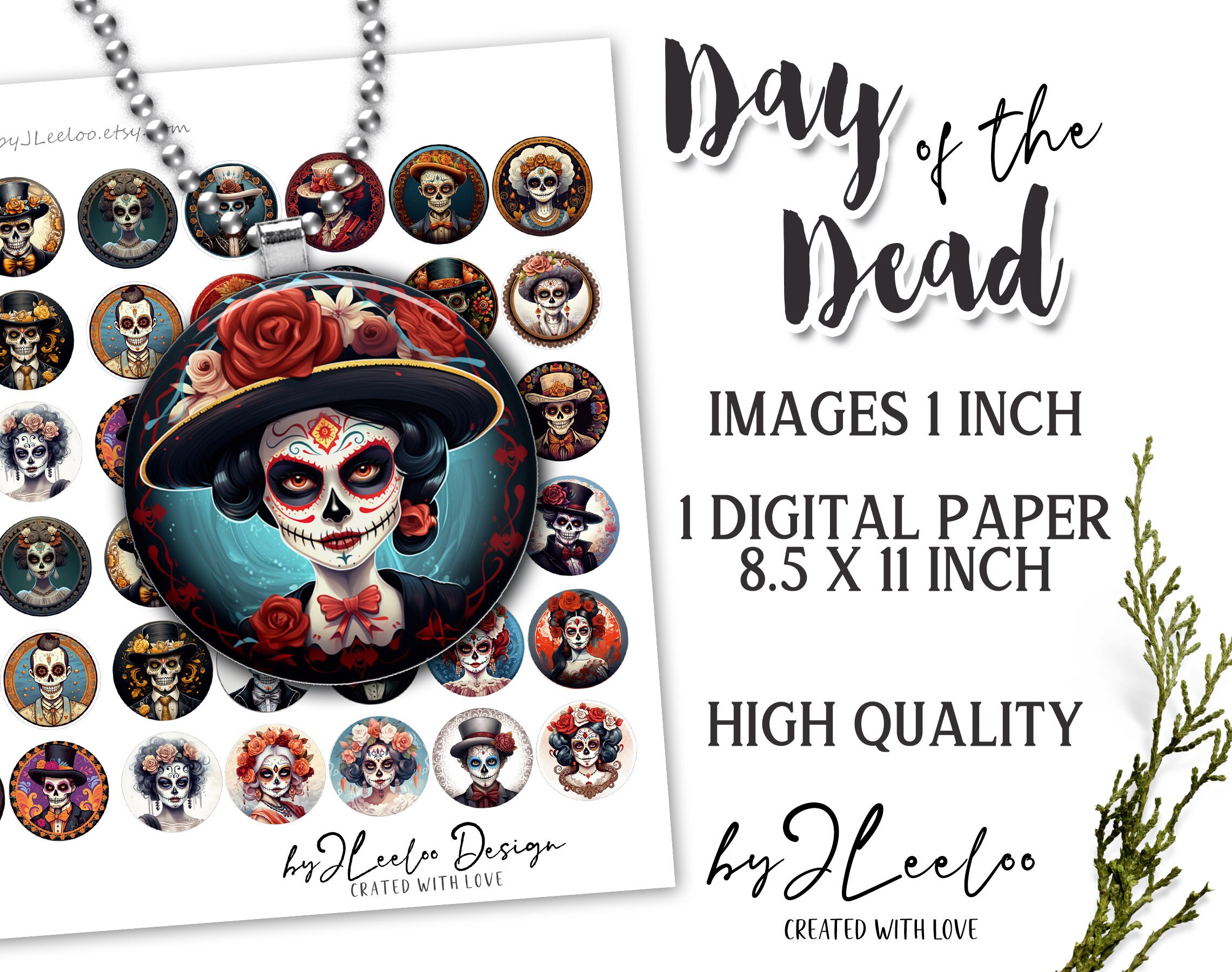 DAY of the DEAD 1 inch sugar skull round pendants | printable halloween sheet digital images | la Catrina skull skeleton | tn662