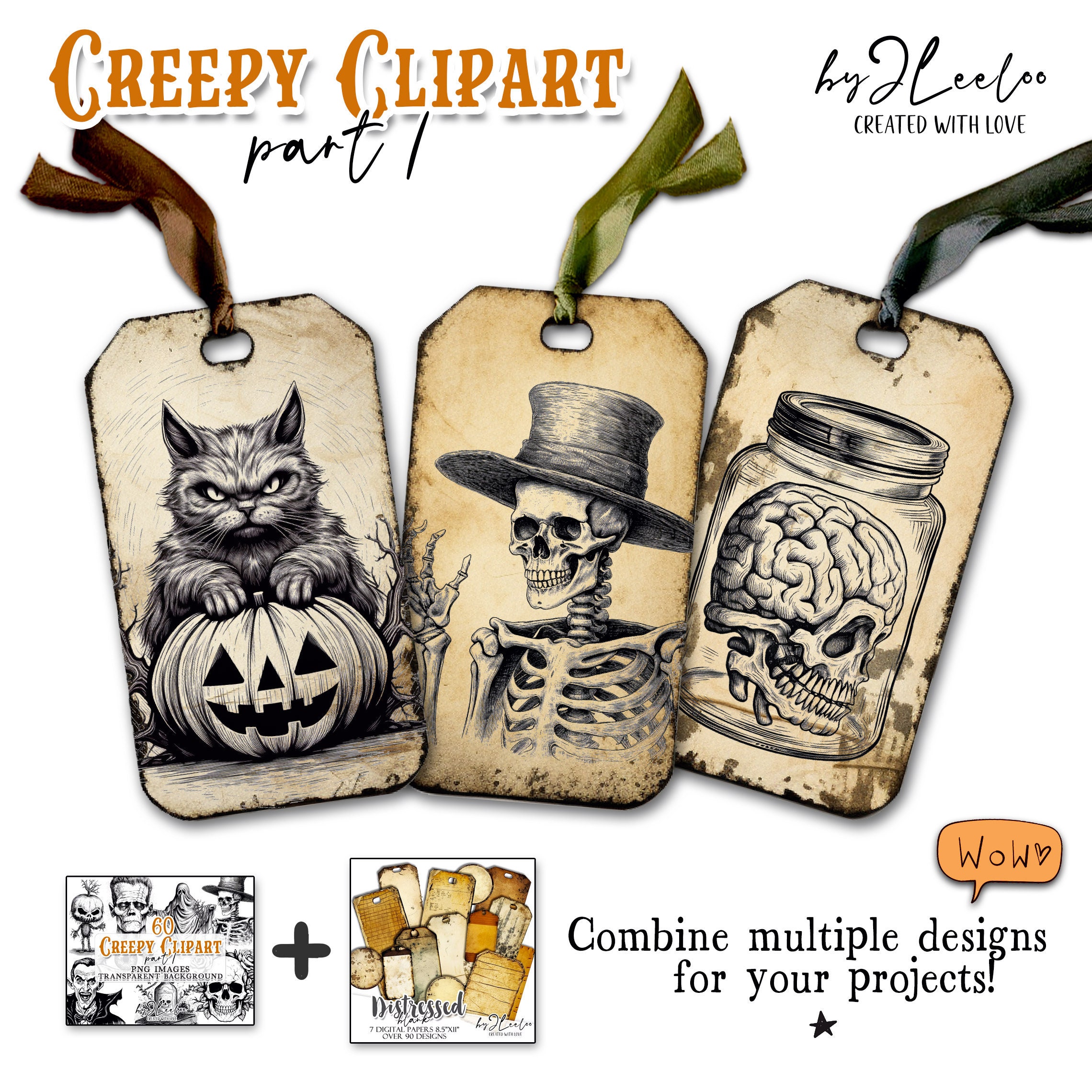 ๐ CREEPY CLIPART set 1 | vintage horror scrapbook junk journal paper craft art | printable DIY and antique gothic victorian ephemera | cl153 ๐