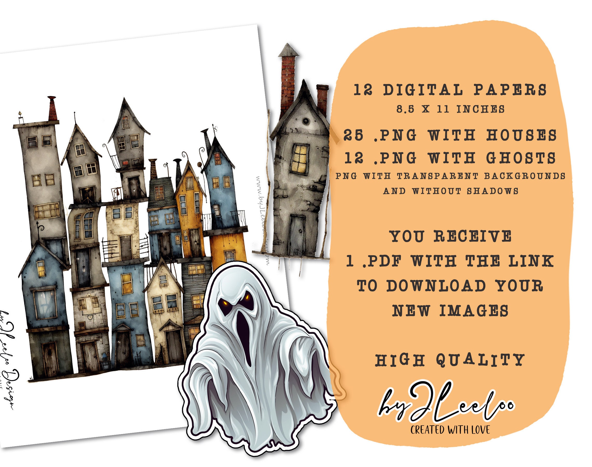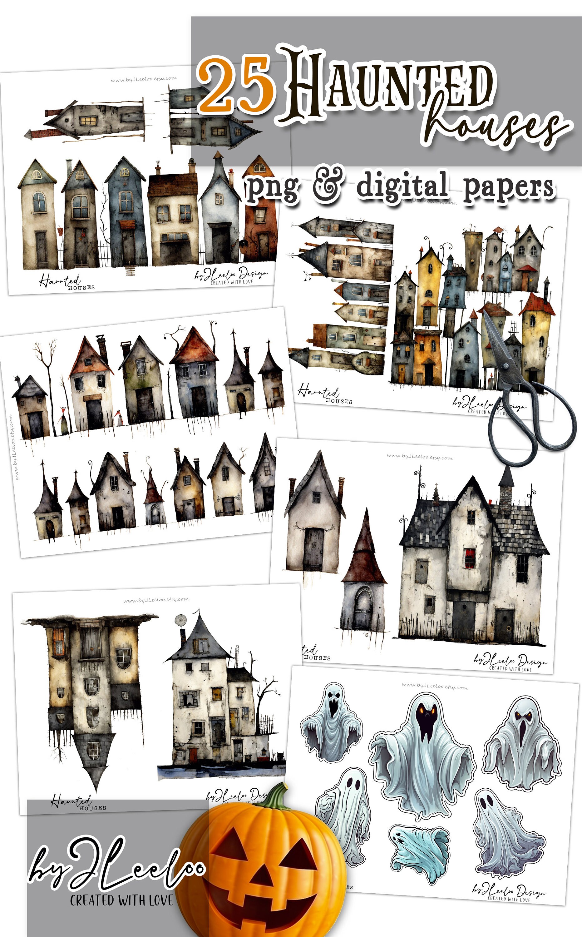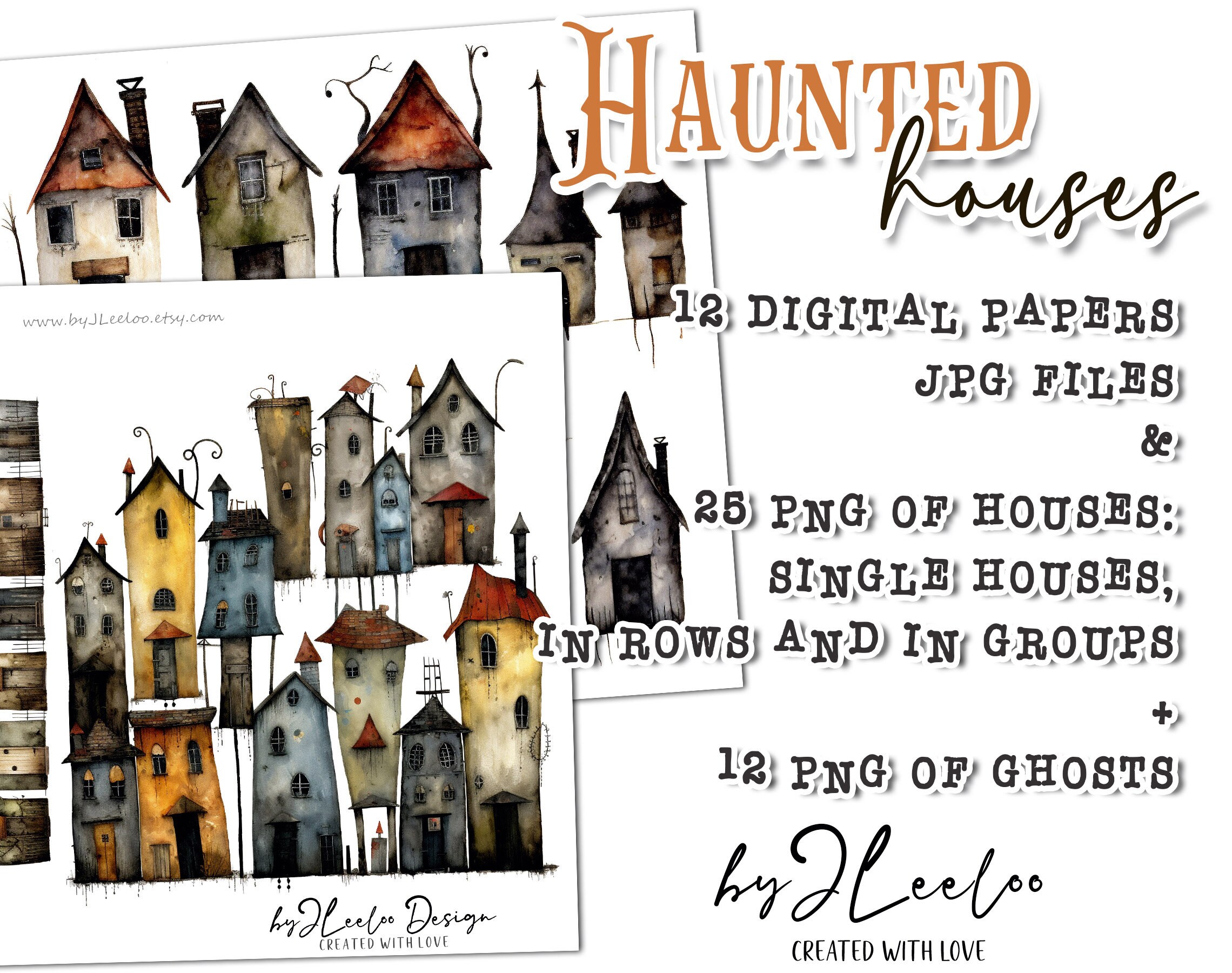 HAUNTED HOUSES PNG Clipart paper craft supplies | junk journal elements vintage | Halloween mixed media printable | commercial use | pp632