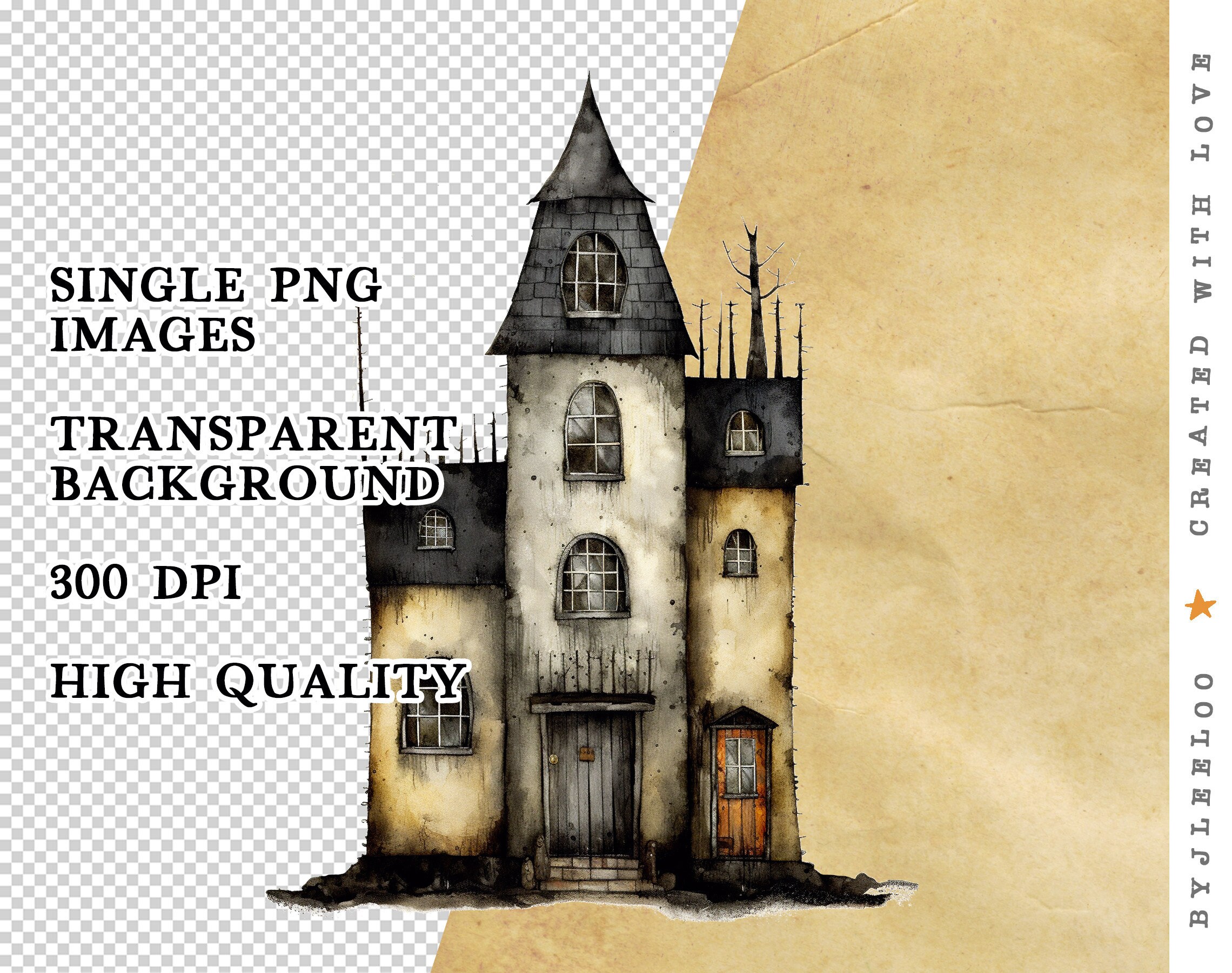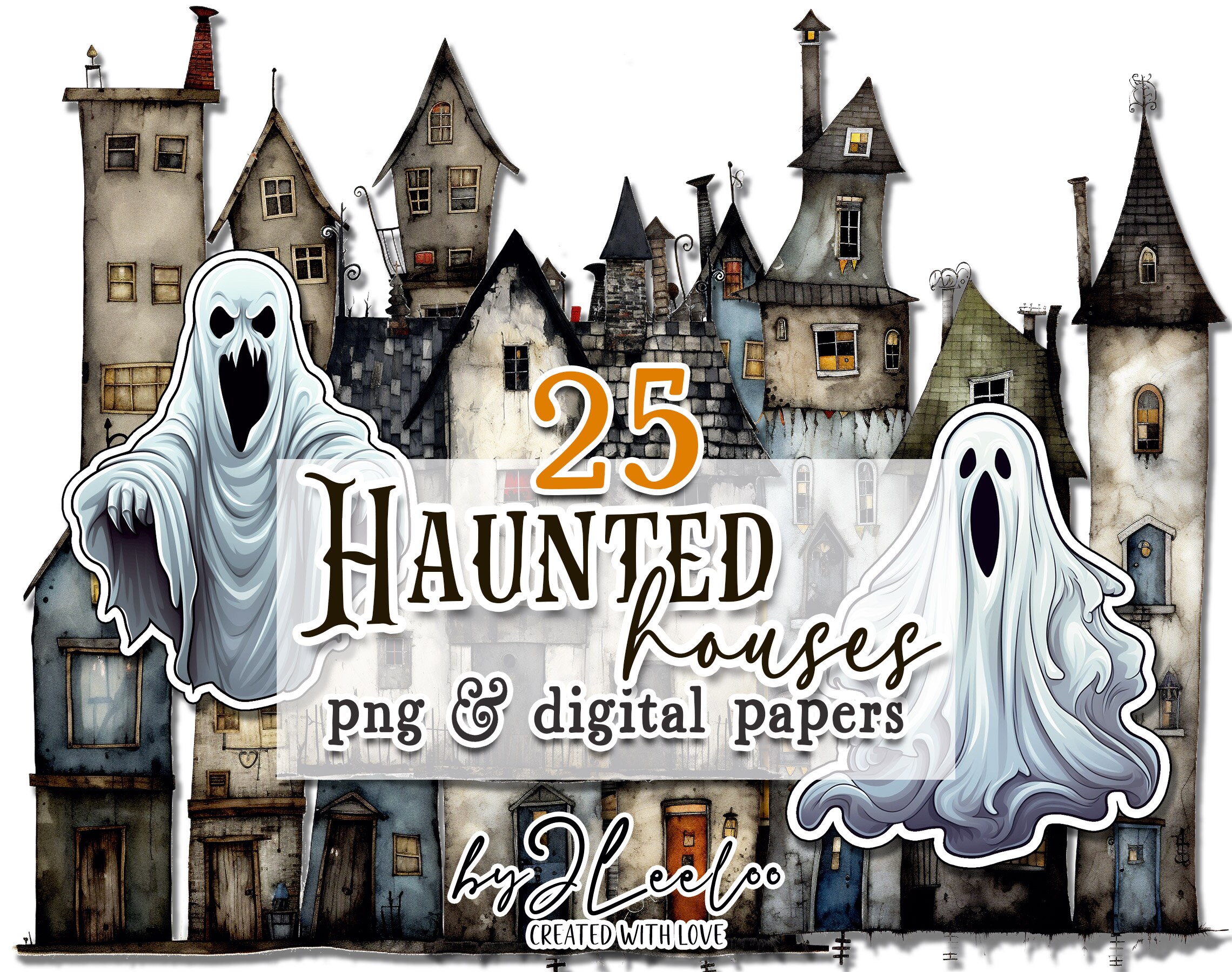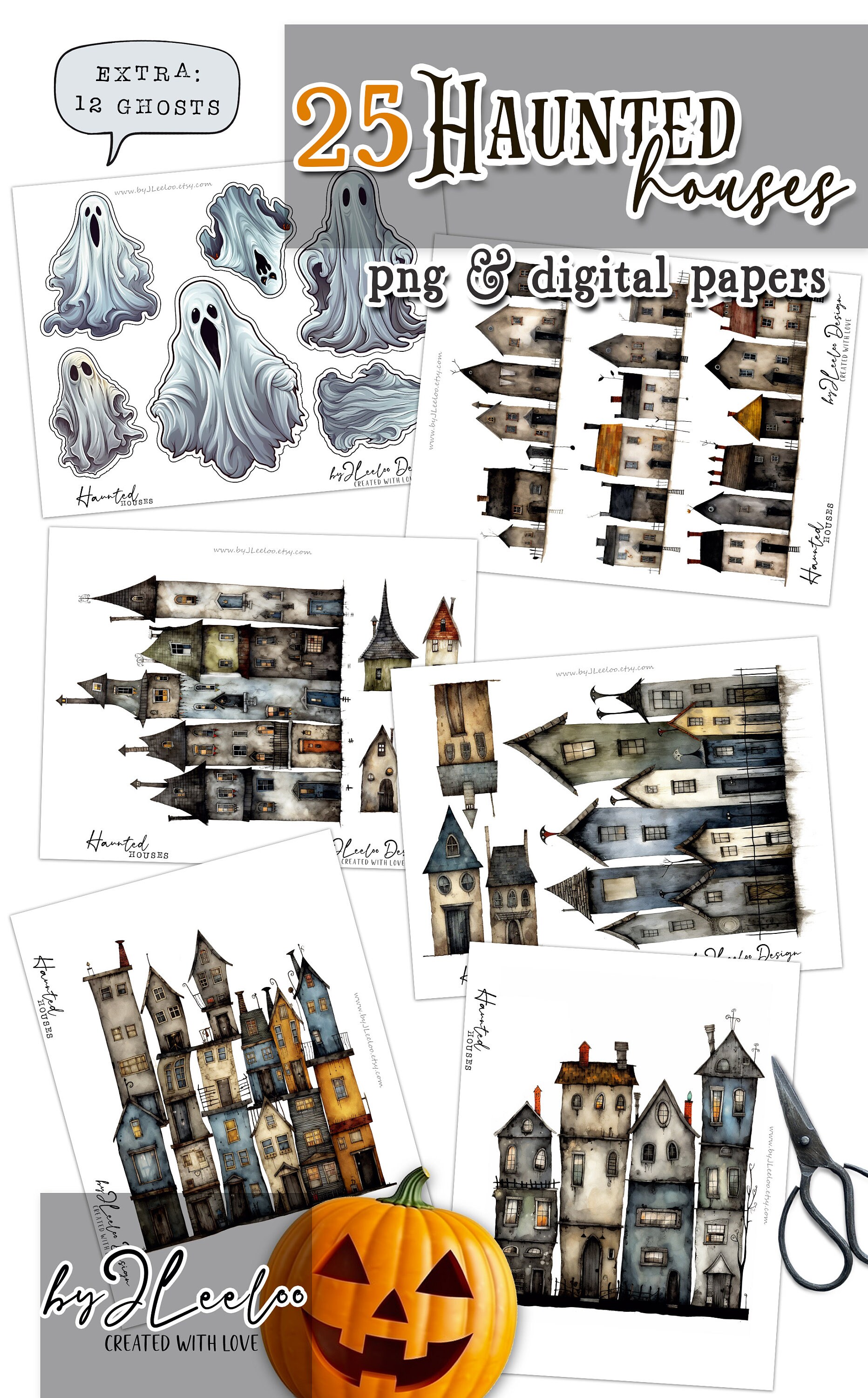 HAUNTED HOUSES PNG Clipart paper craft supplies | junk journal elements vintage | Halloween mixed media printable | commercial use | pp632