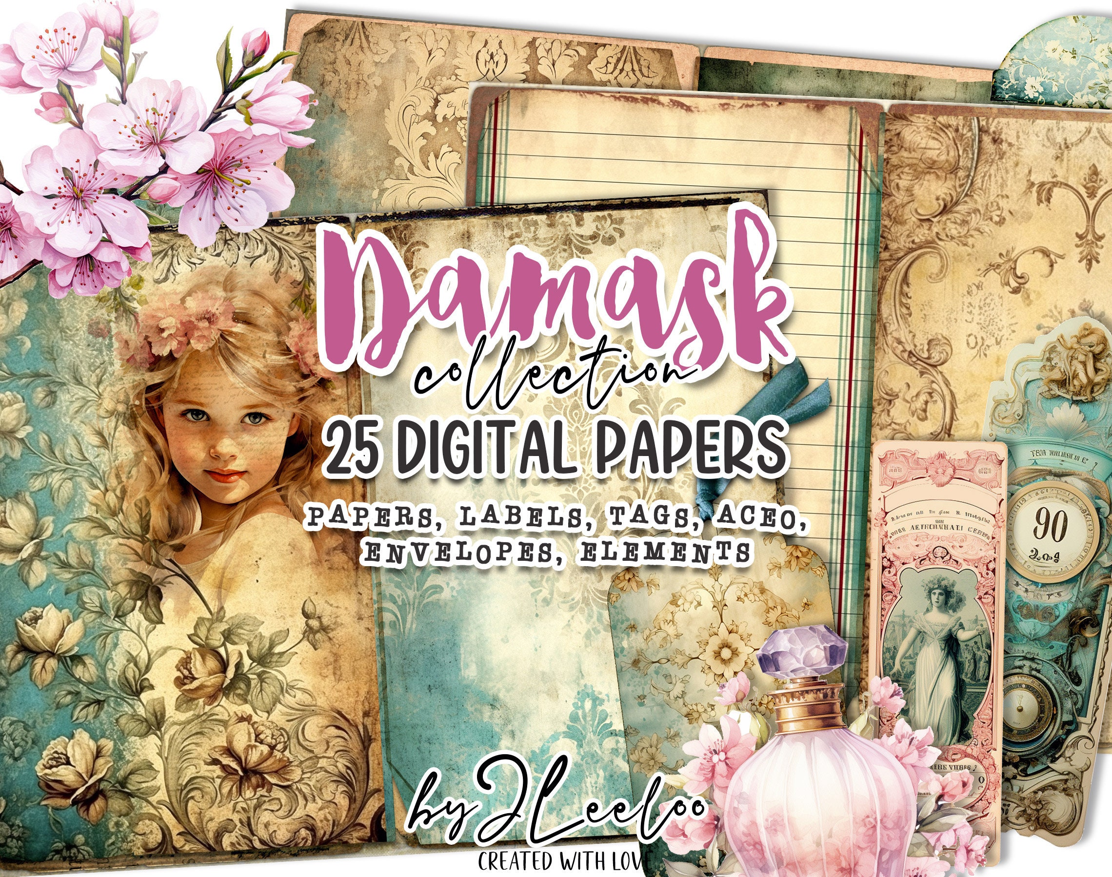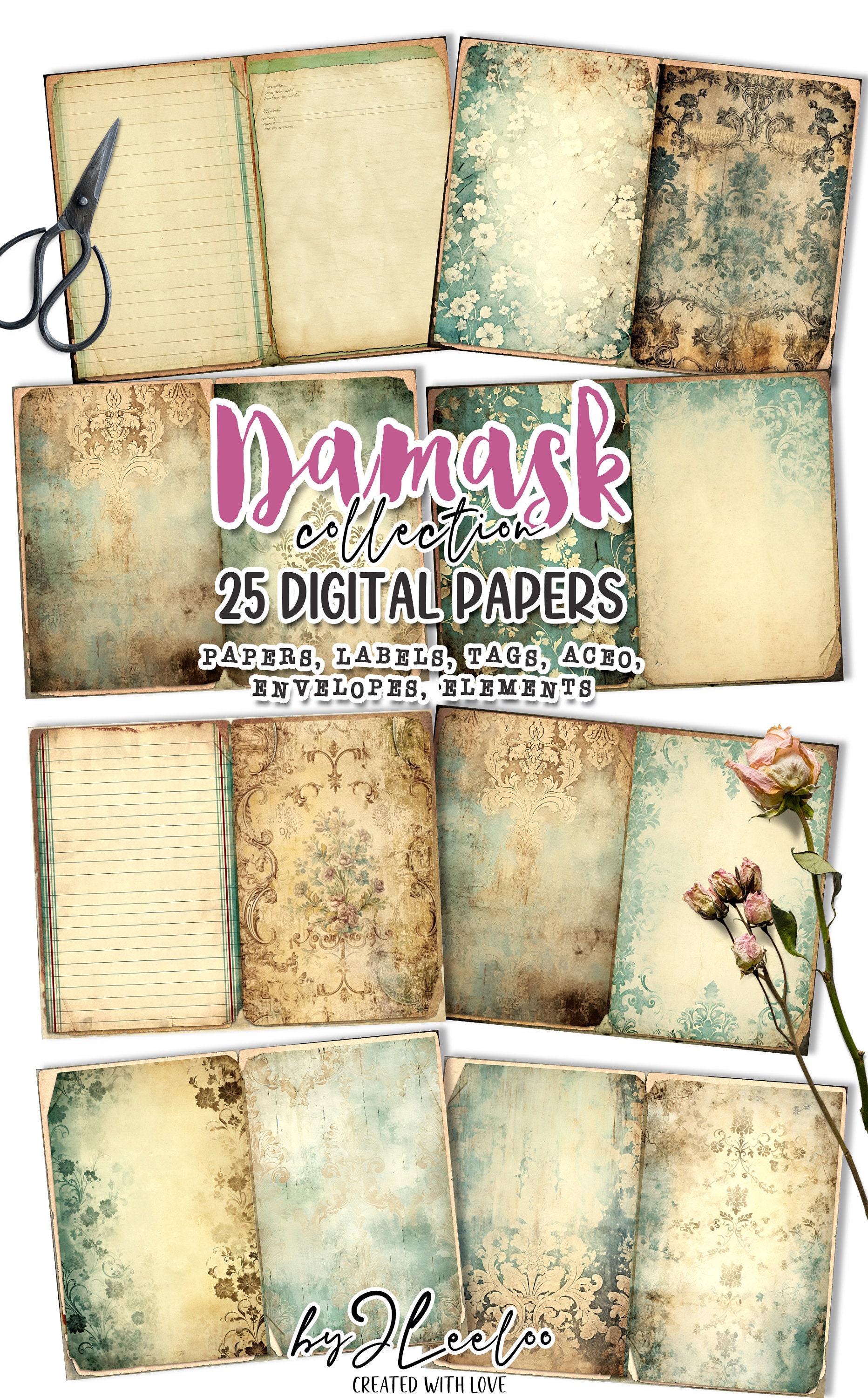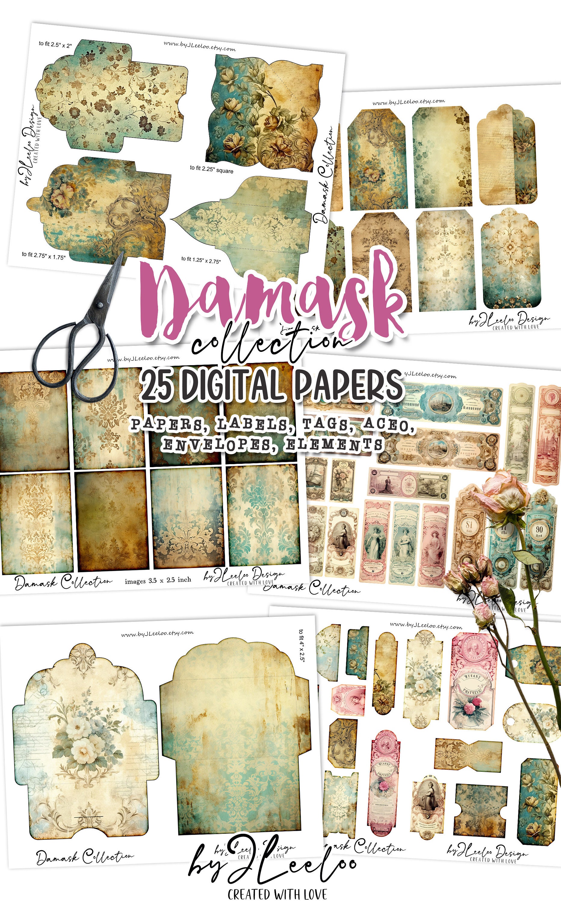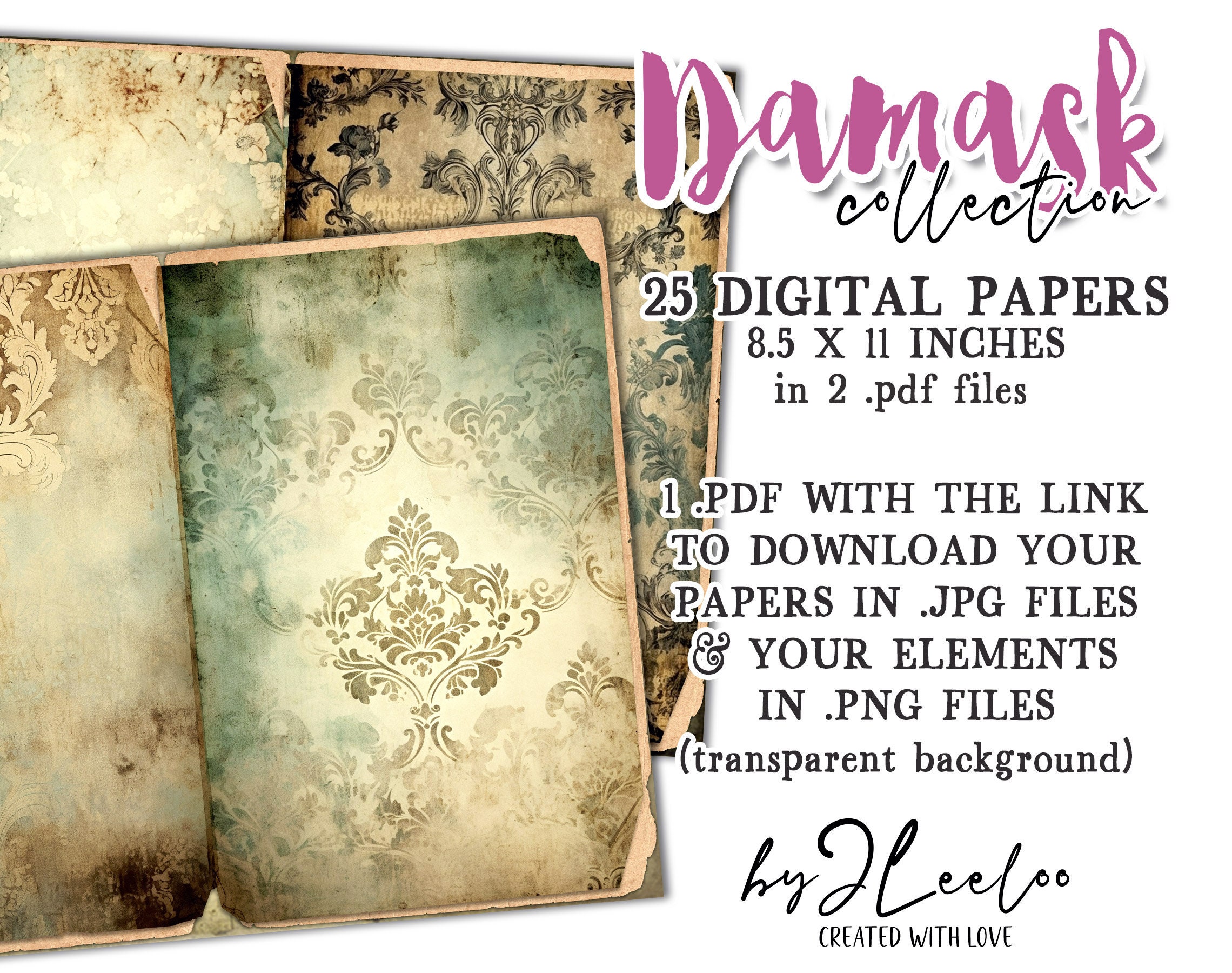 DAMASK COLLECTION junk journal kit | watercolor printable pages | victorian romantic digital collage sheet | vintage stationery | pp627