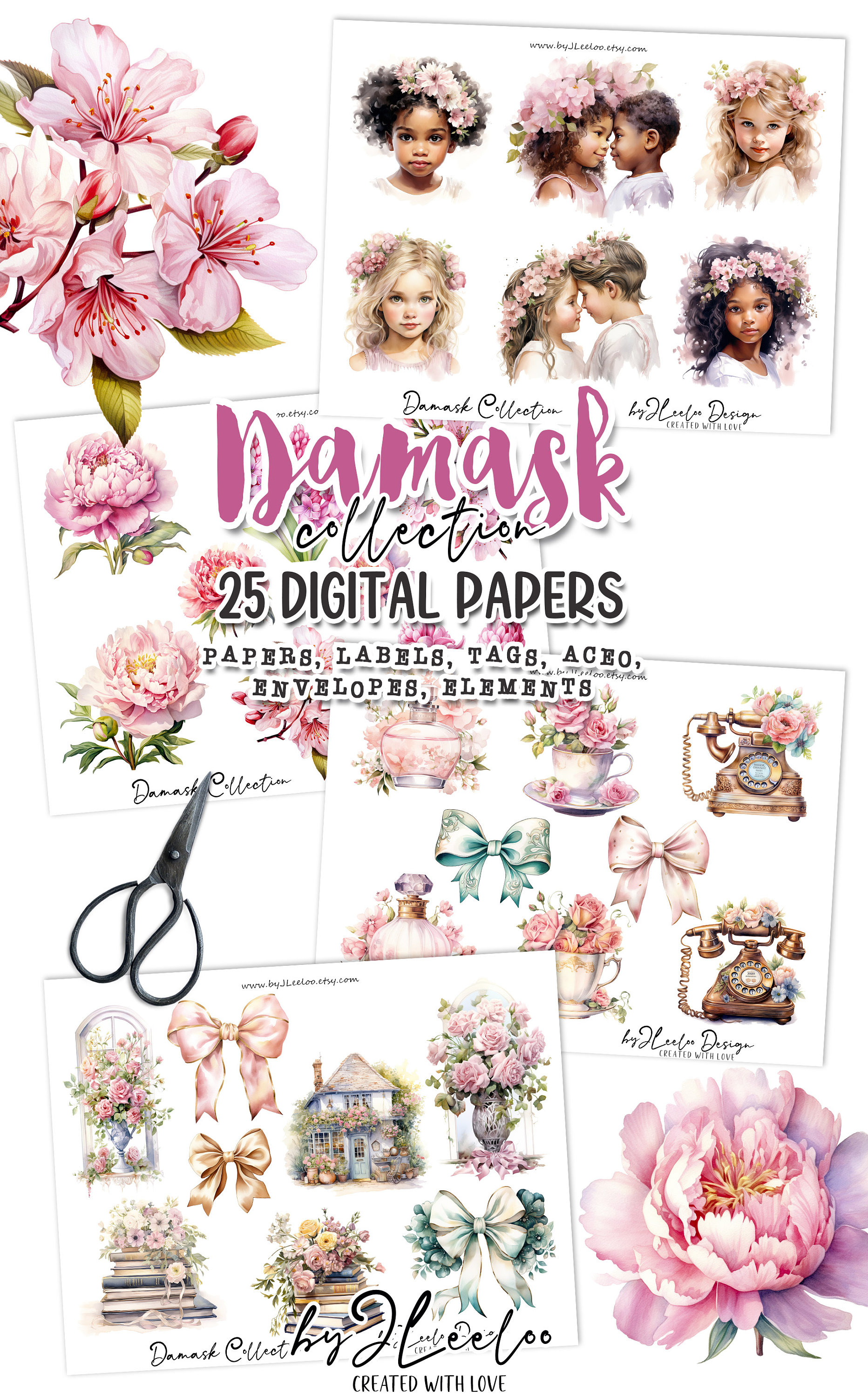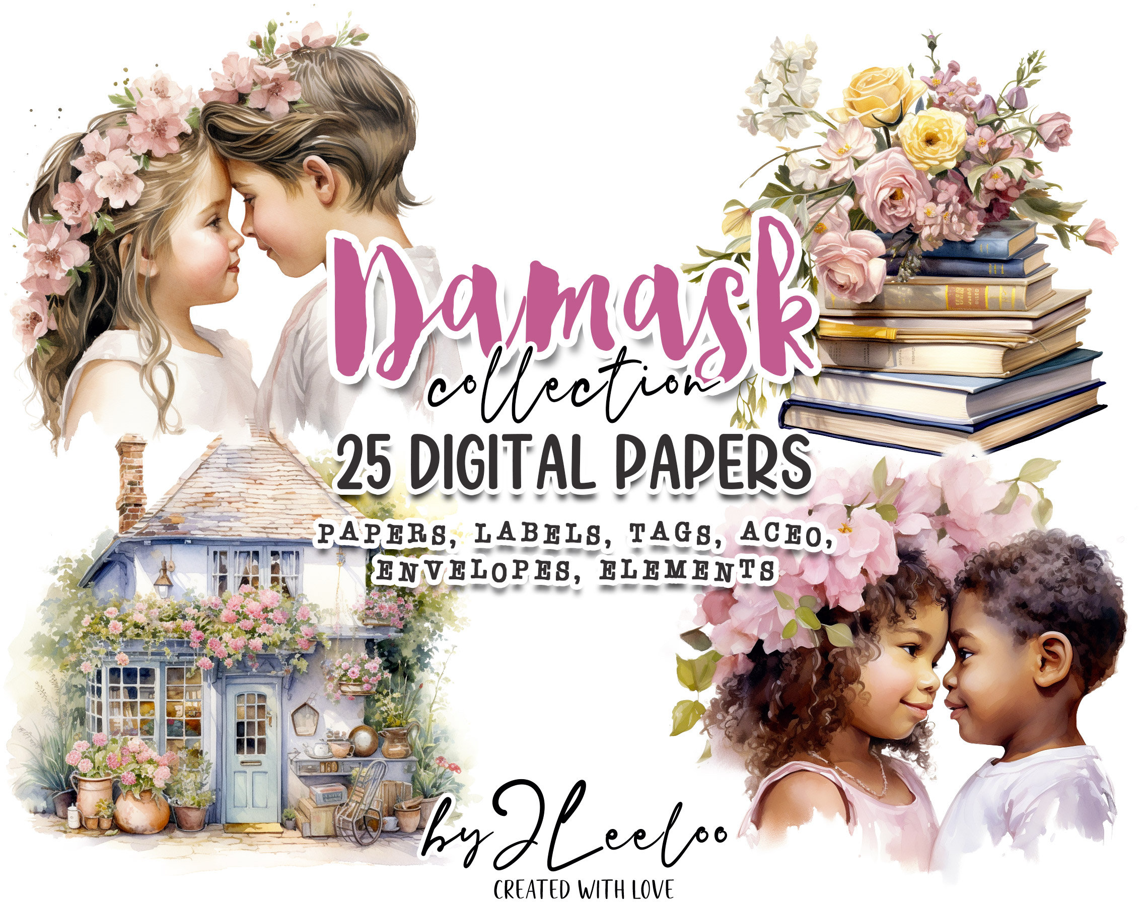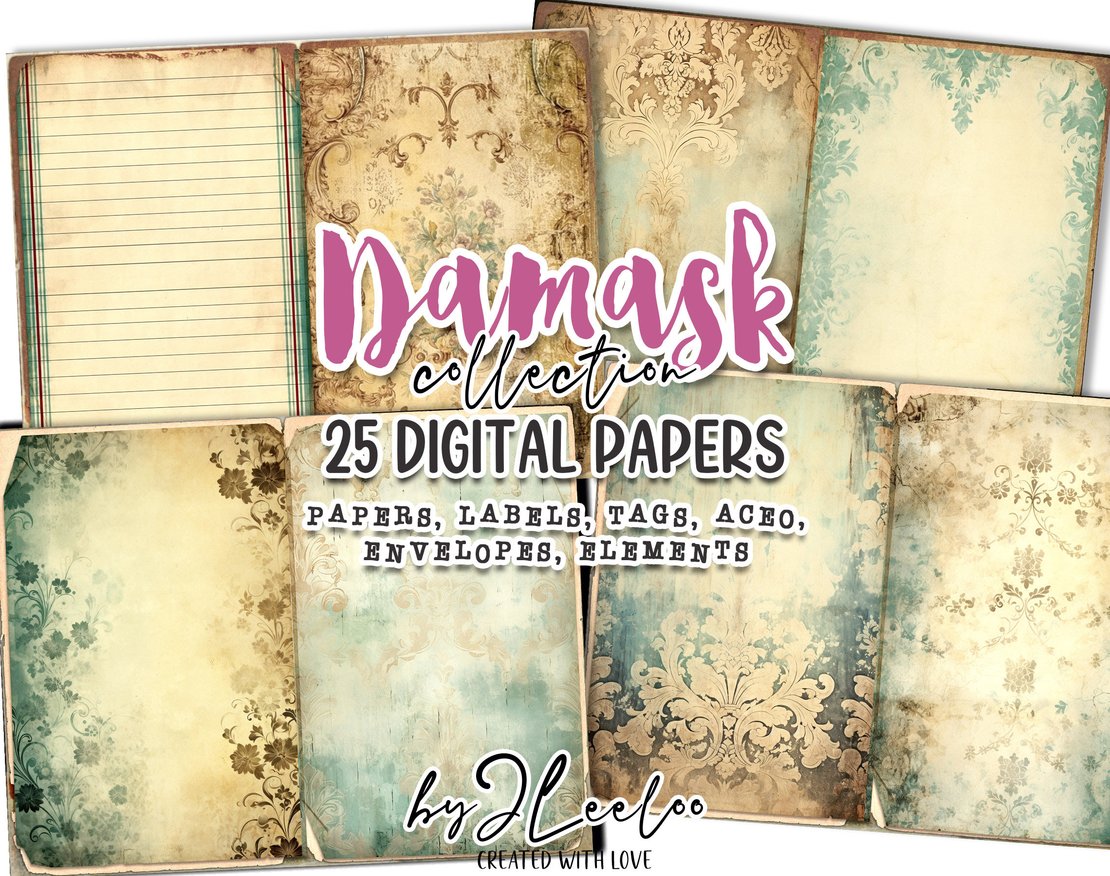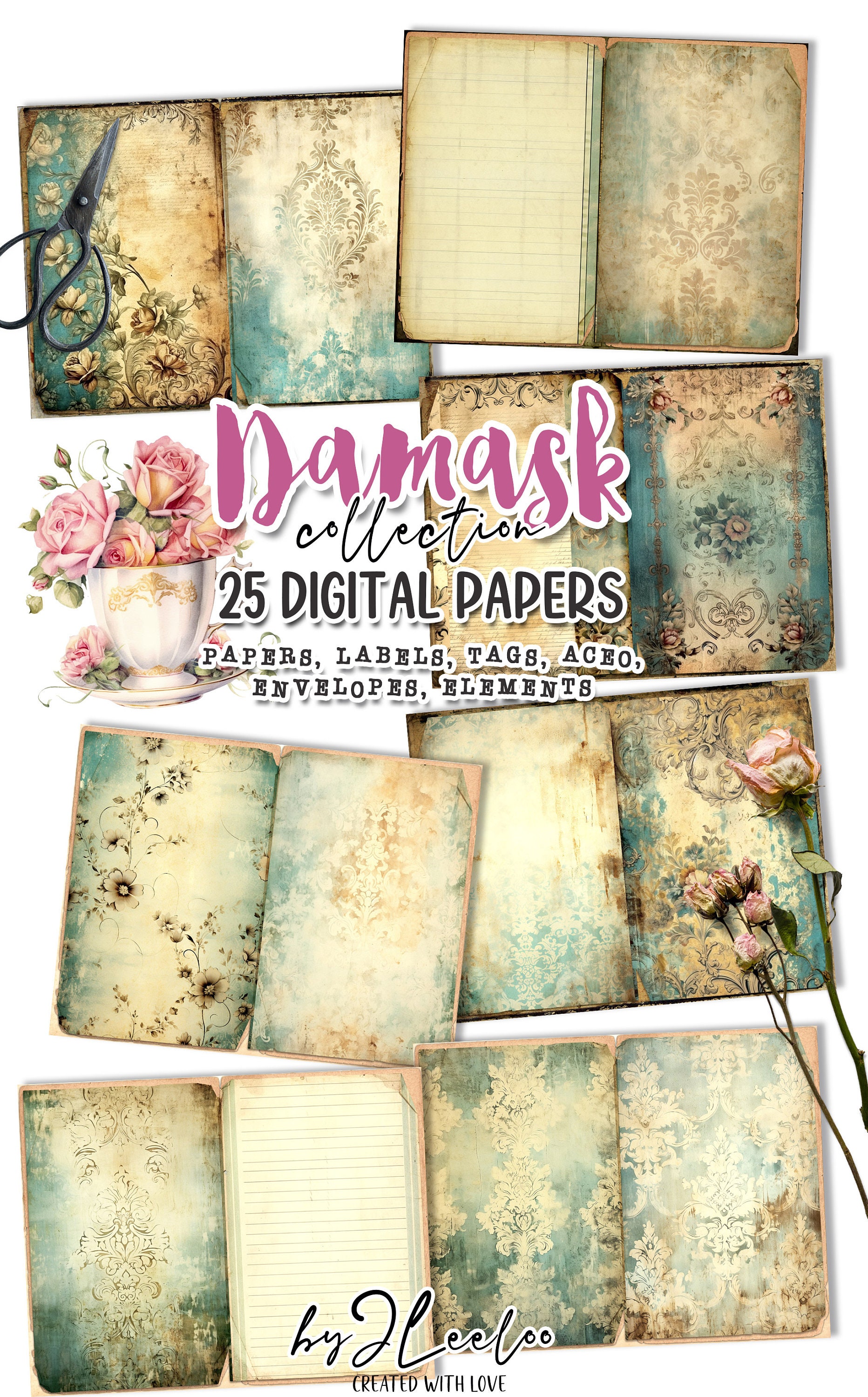 DAMASK COLLECTION junk journal kit | watercolor printable pages | victorian romantic digital collage sheet | vintage stationery | pp627
