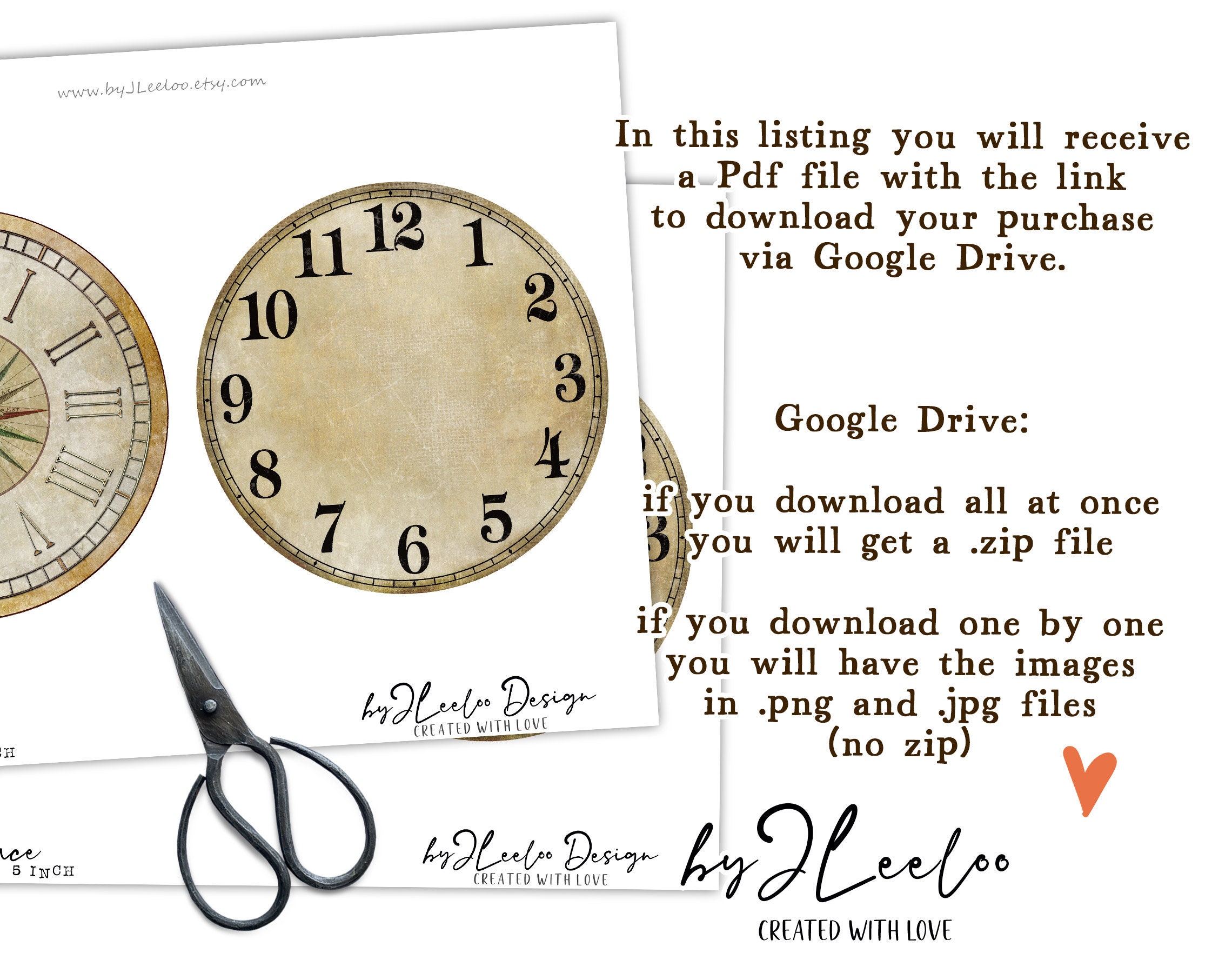 VINTAGE CLOCK 5 inch printable clock face | jpeg png clipart vintage home decor | diy paper crafting download digital collage | tn665