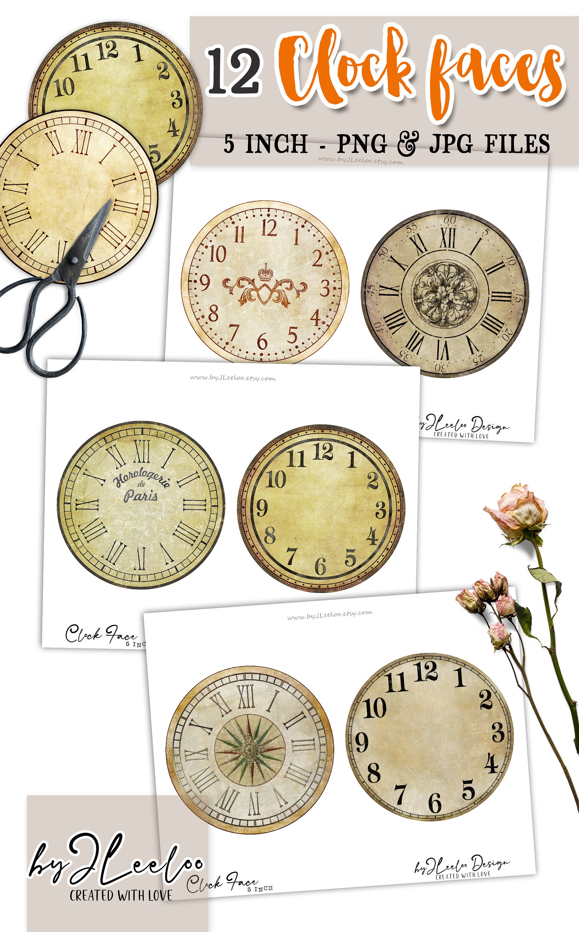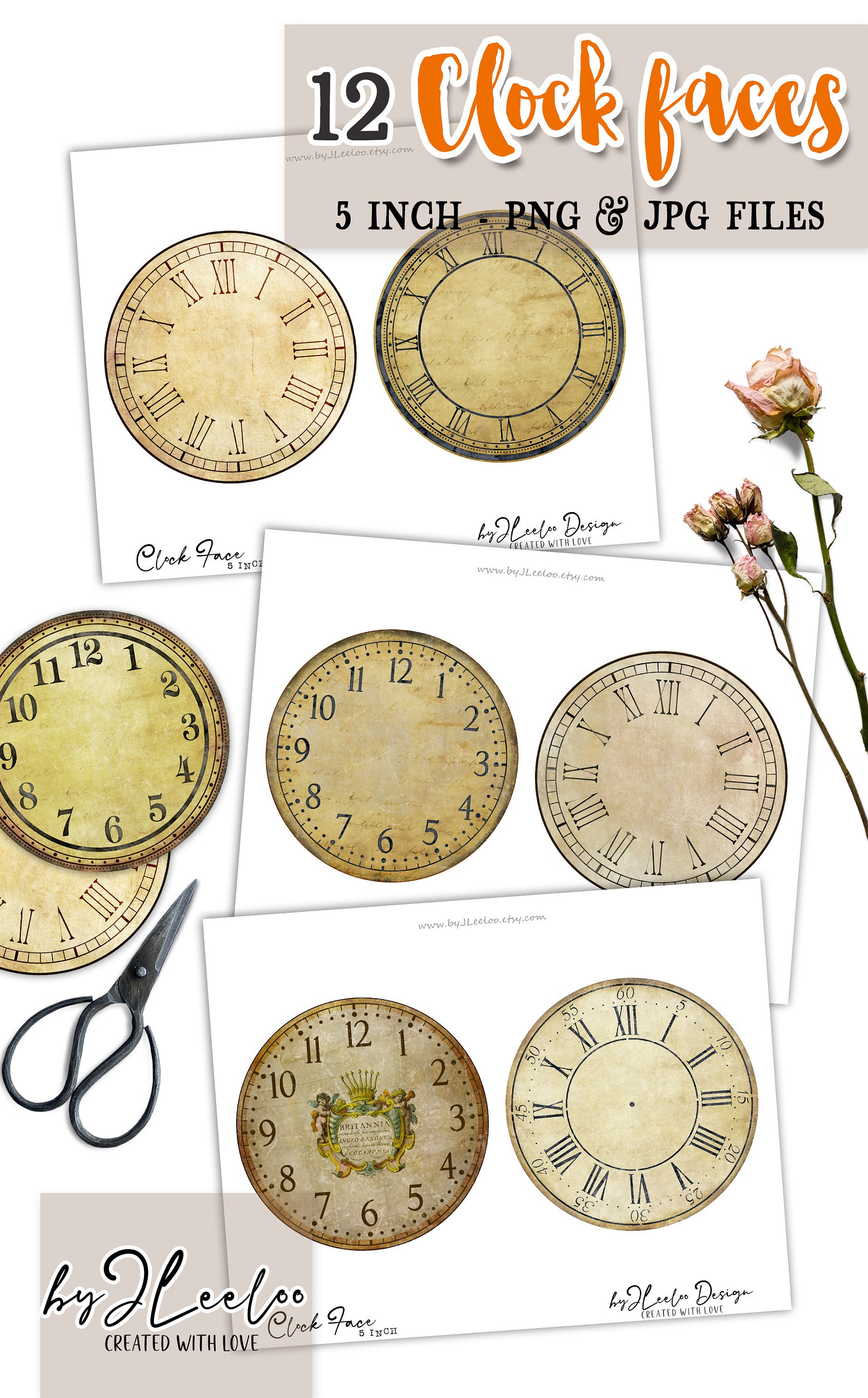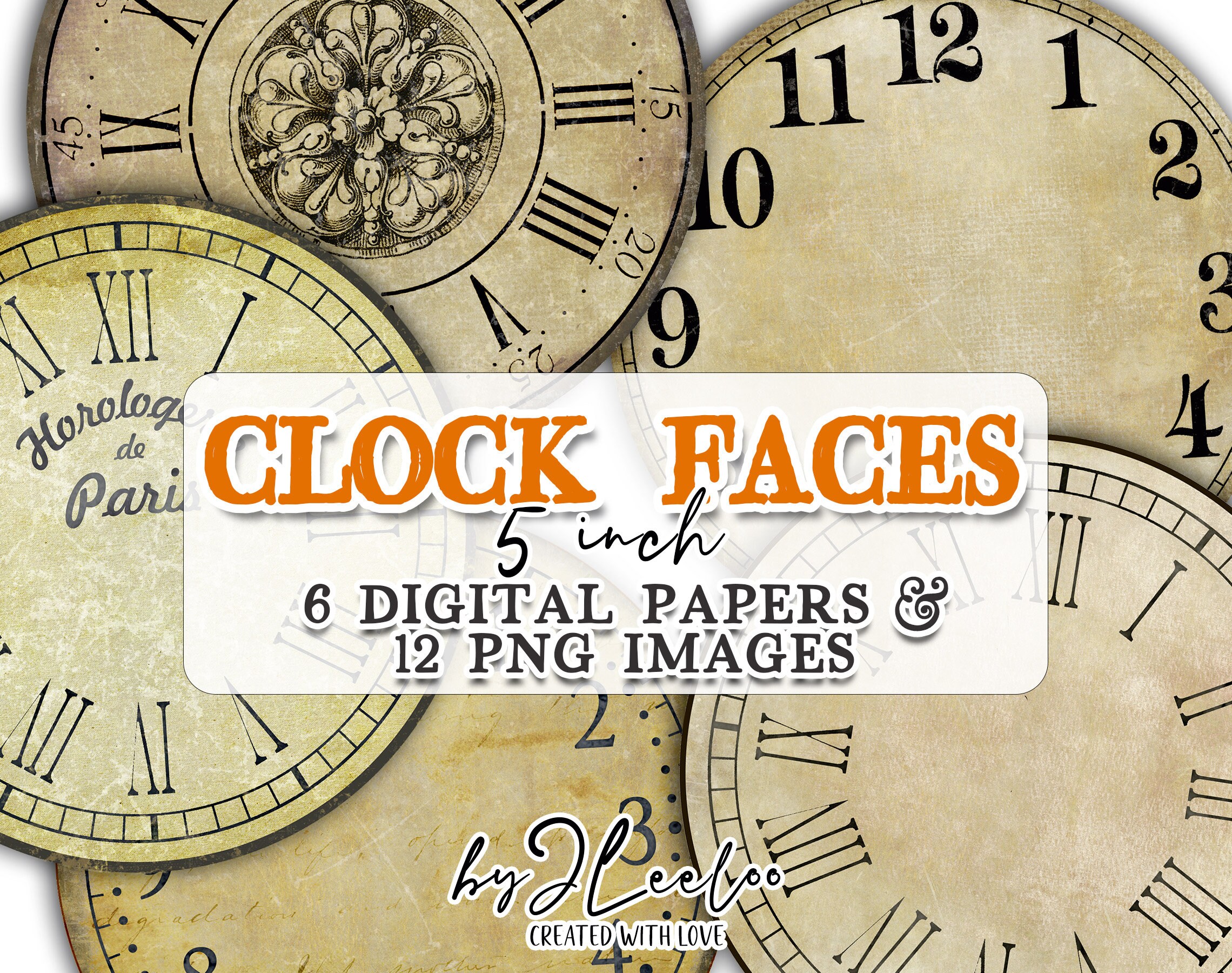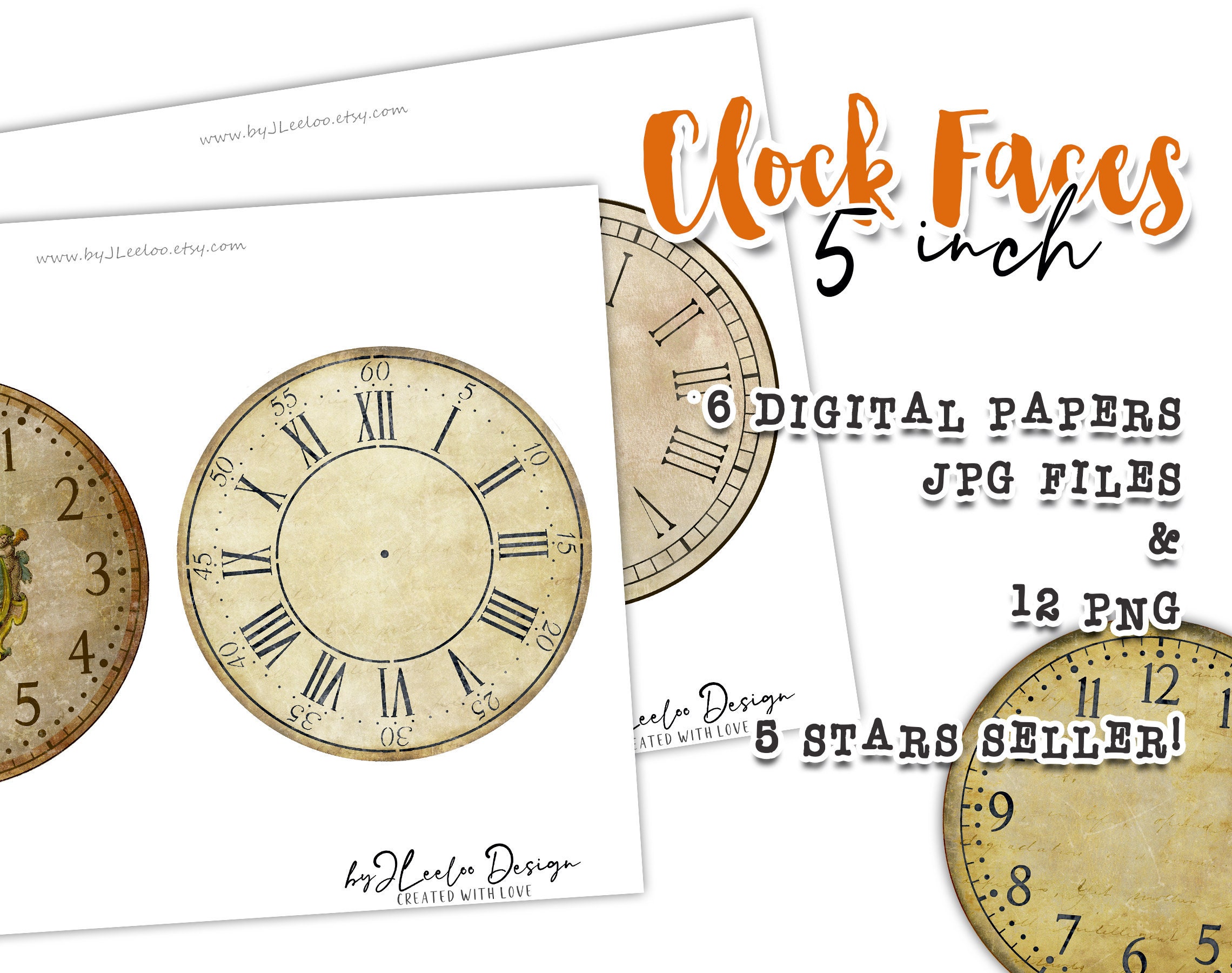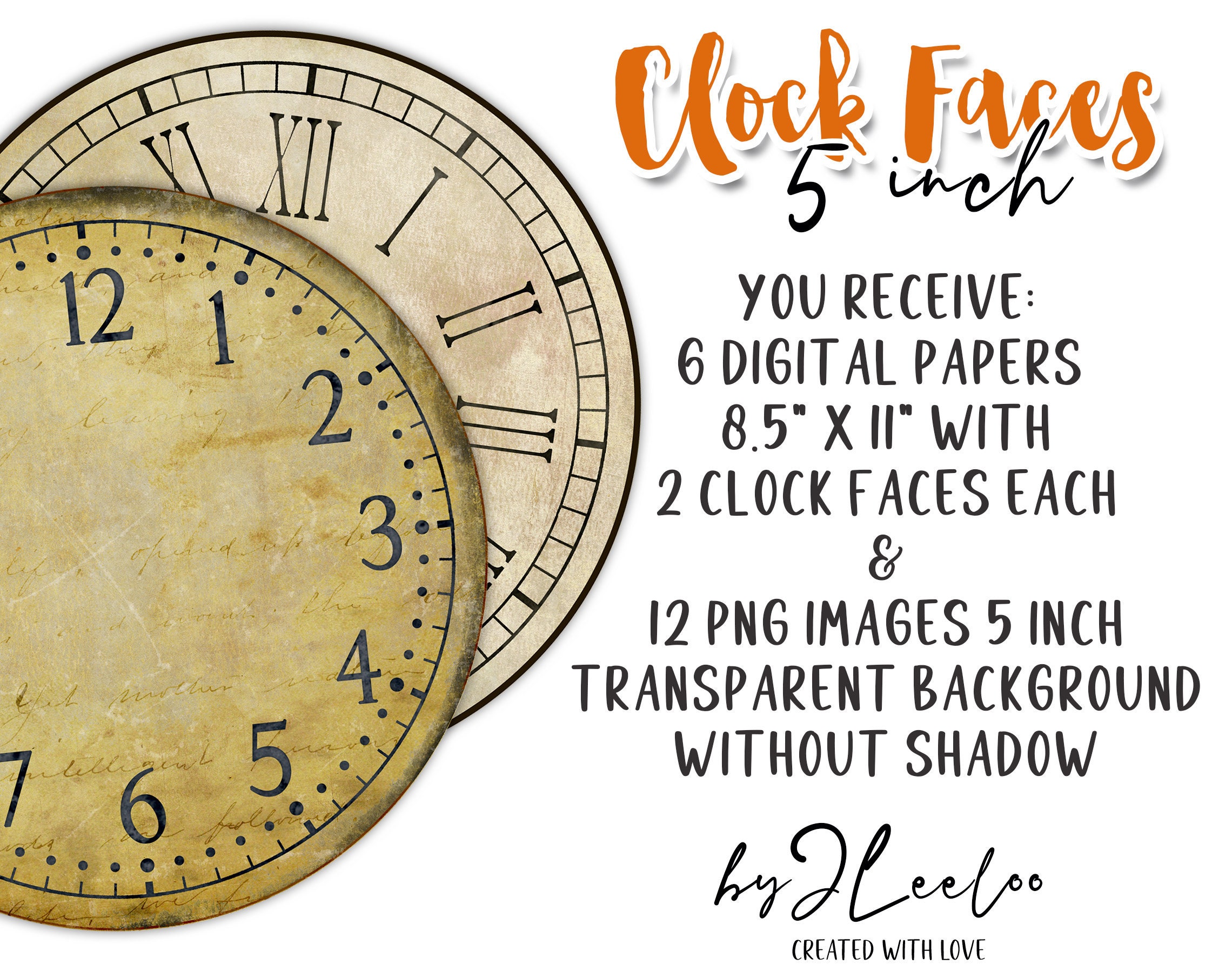 clock faces 5 inch placed in 6 digital papers, 2 clock face each digital paper