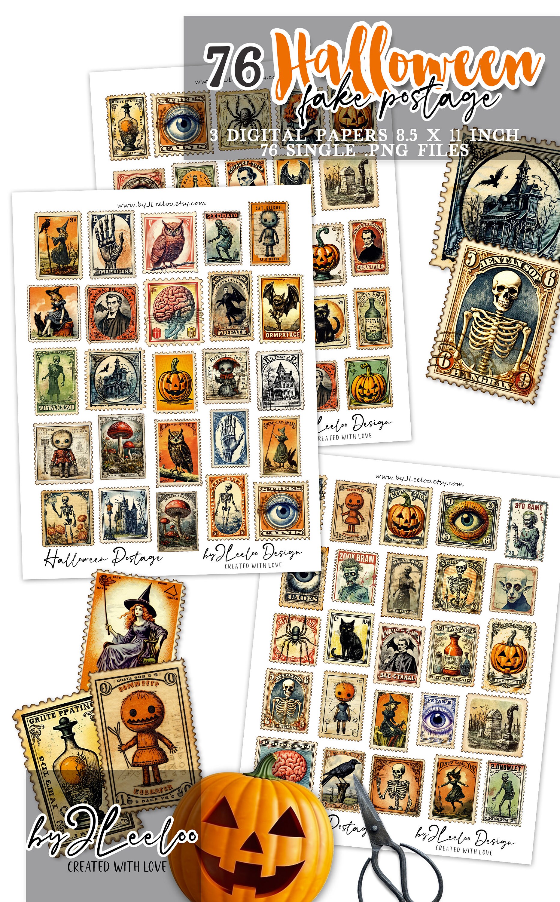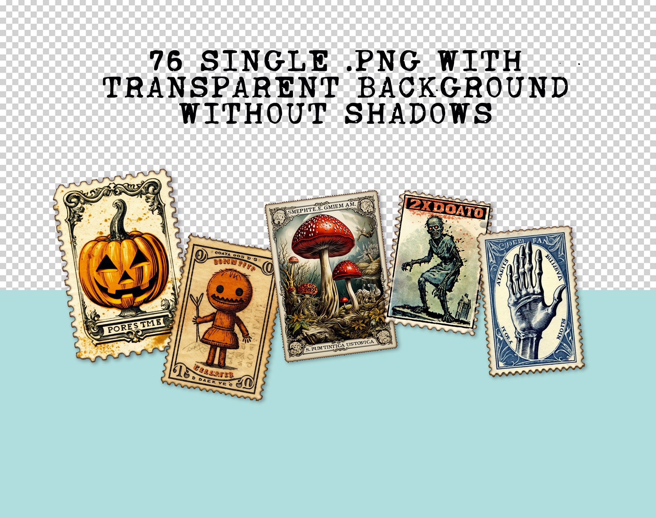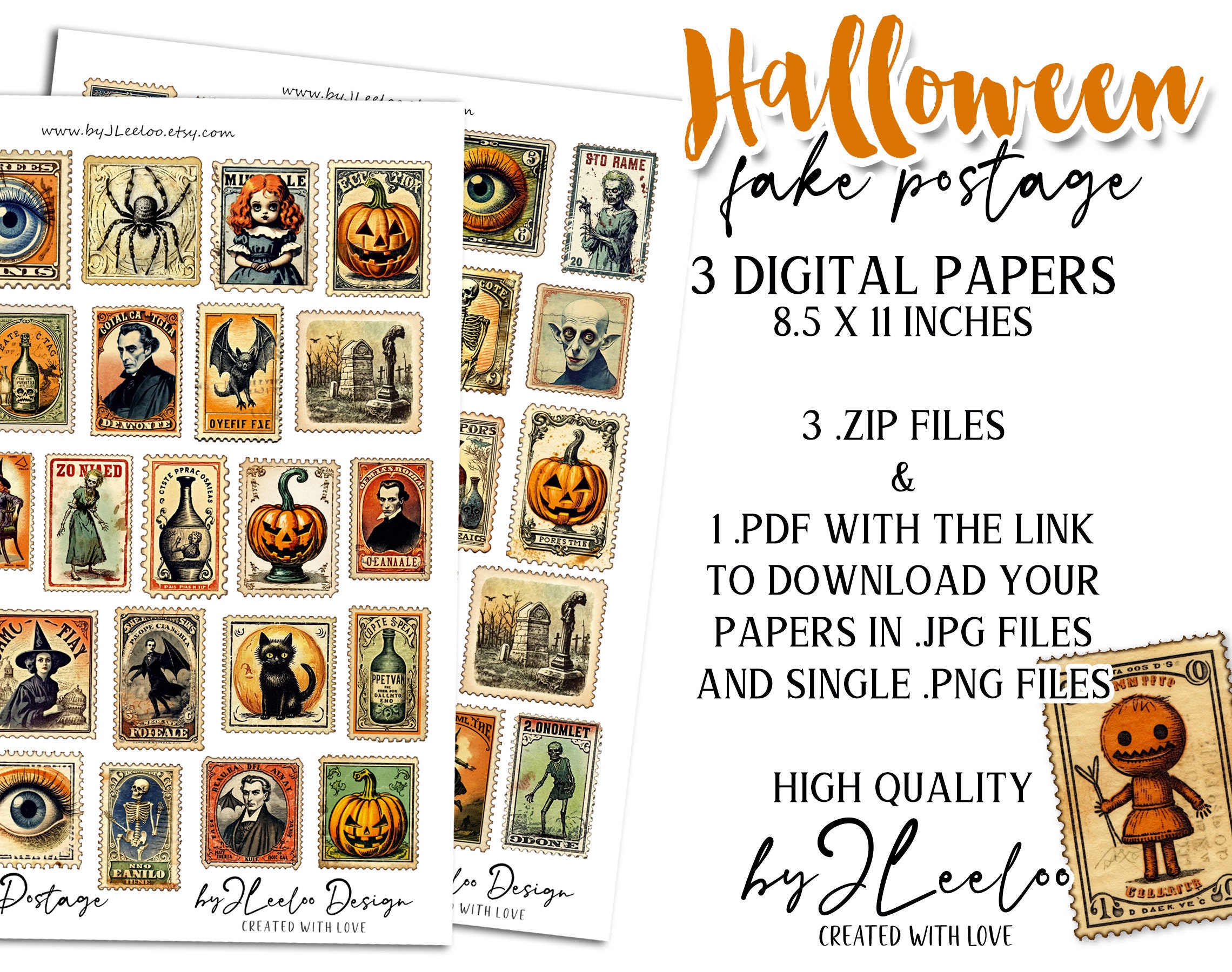 HALLOWEEN POSTAGE fake stamp creepy supplies Png printable vintage scary ephemera junk journal instant download collage |
