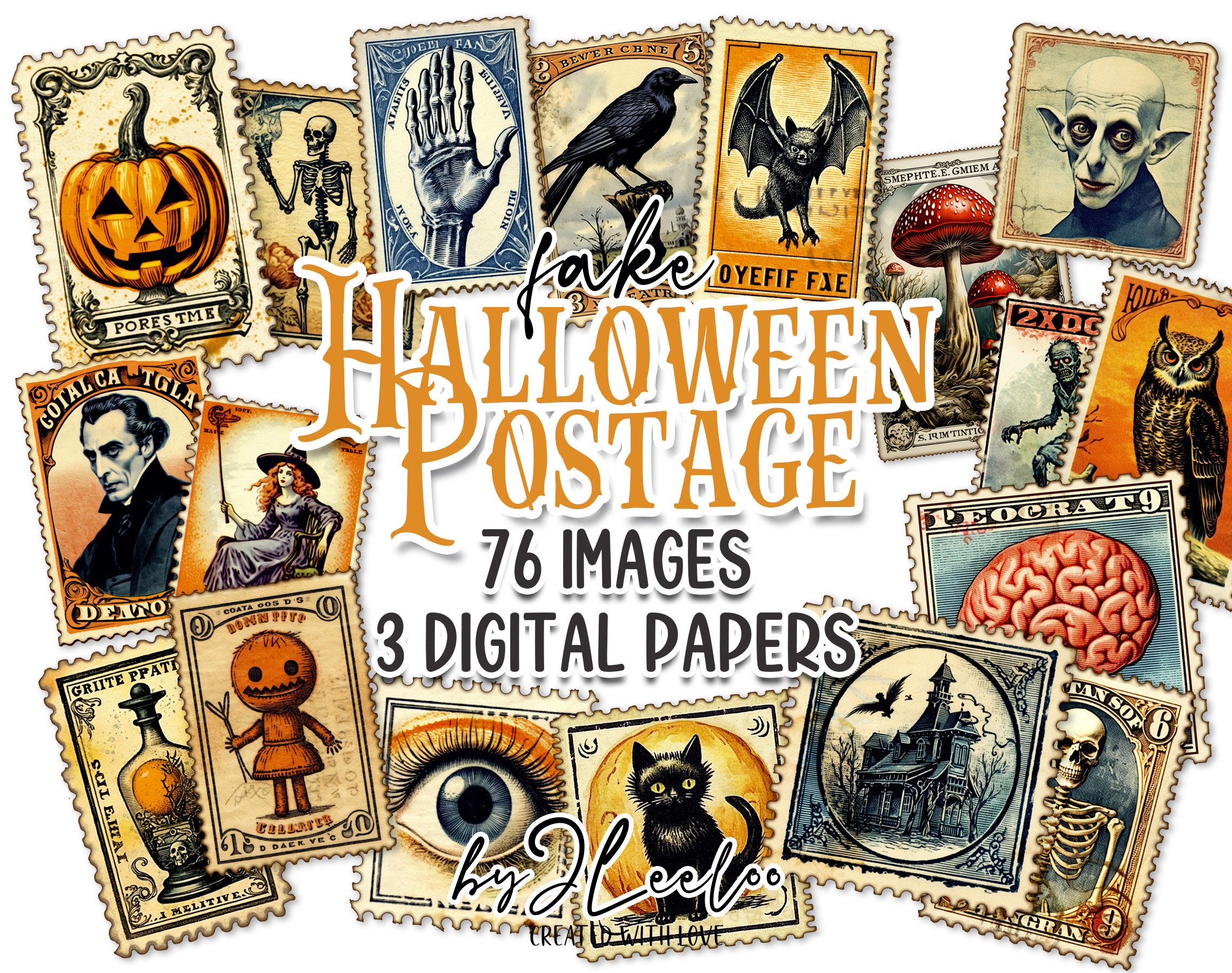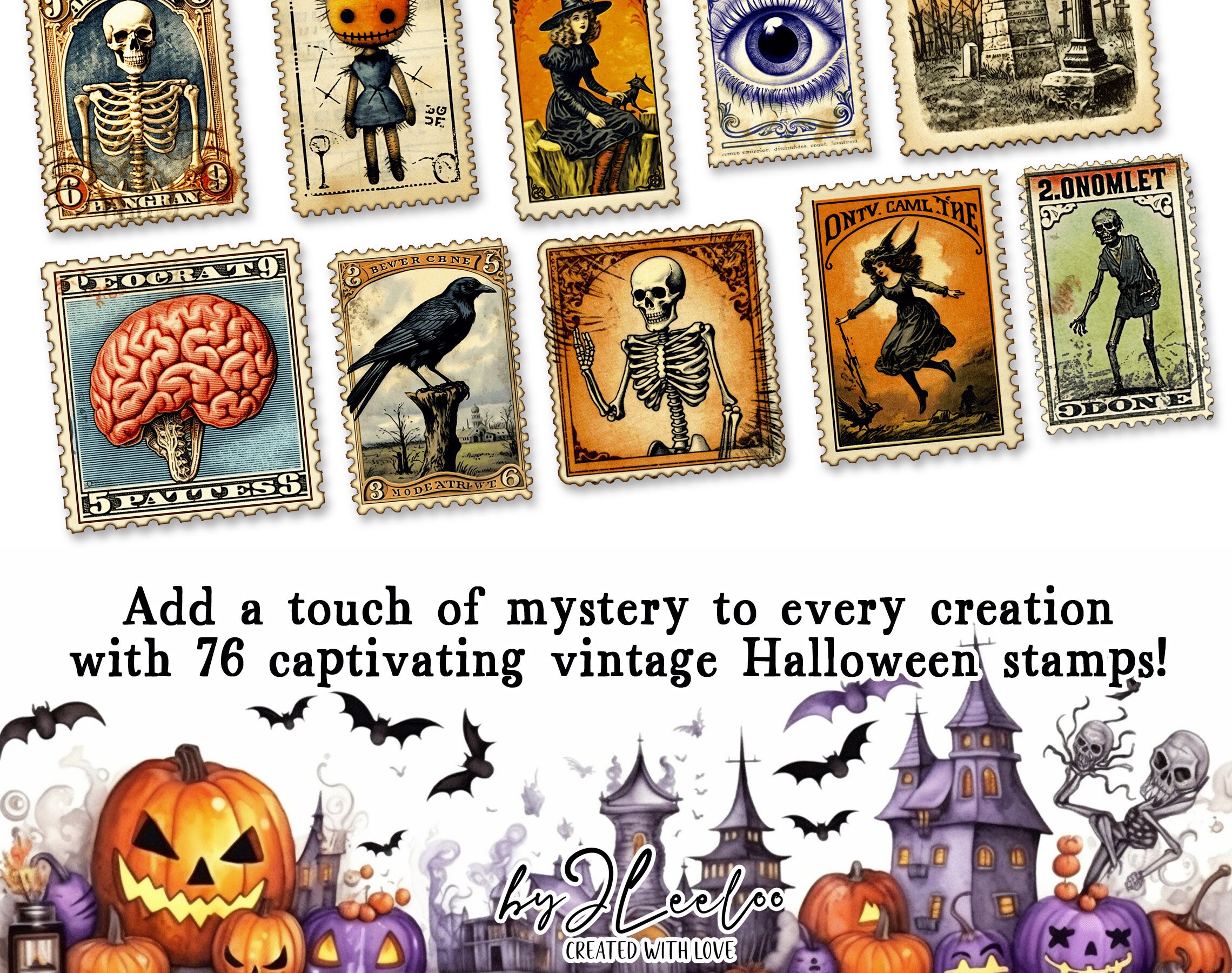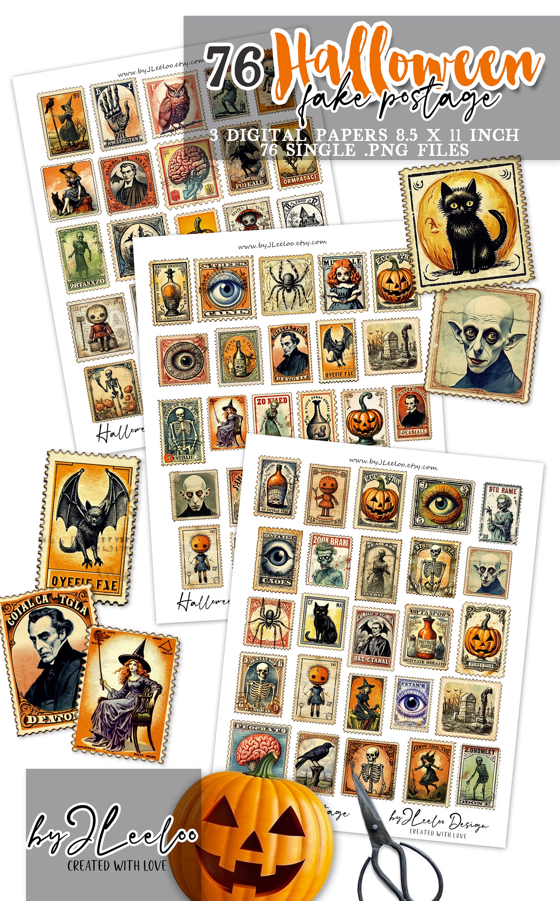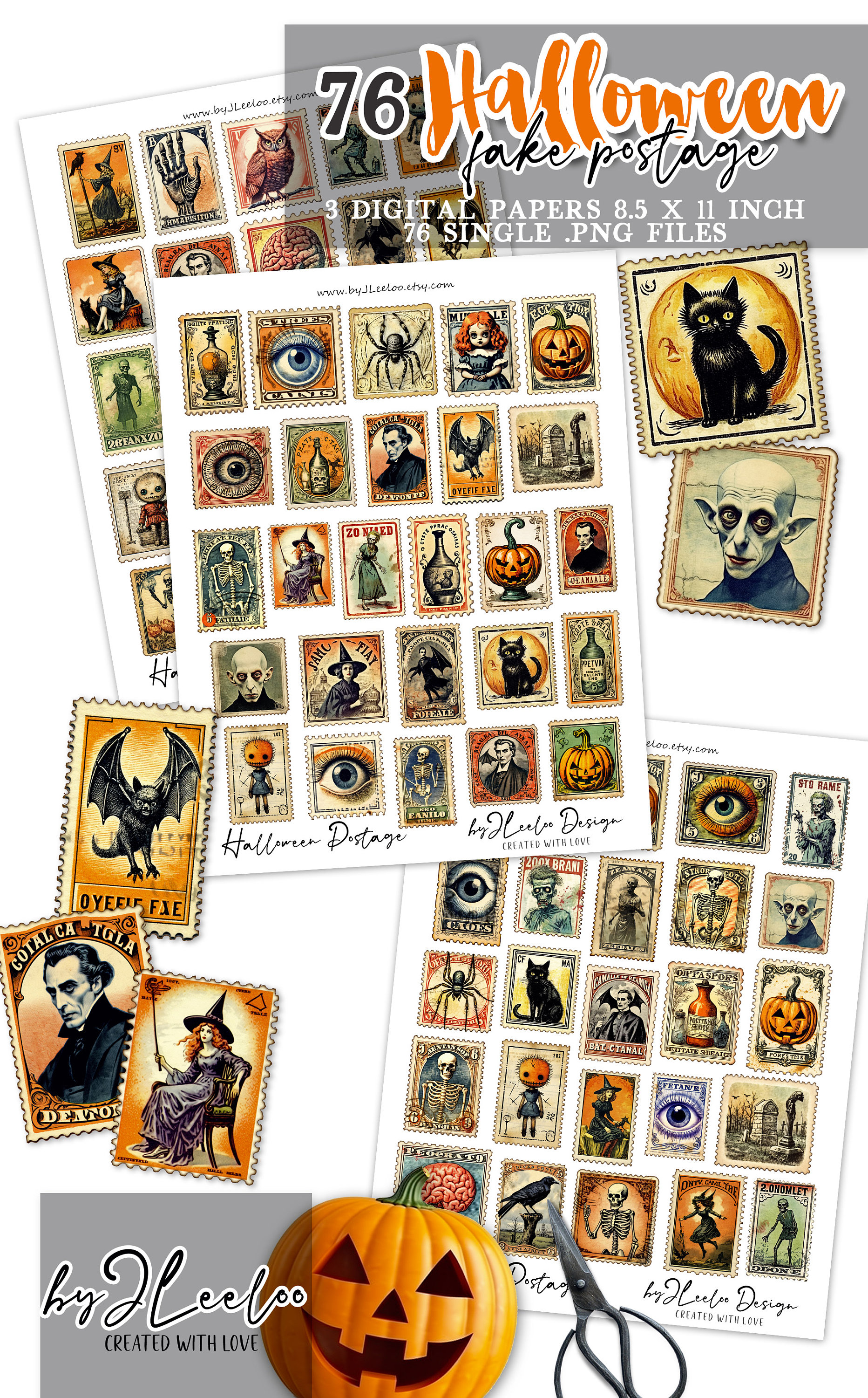 HALLOWEEN POSTAGE fake stamp creepy supplies Png printable vintage scary ephemera junk journal instant download collage |