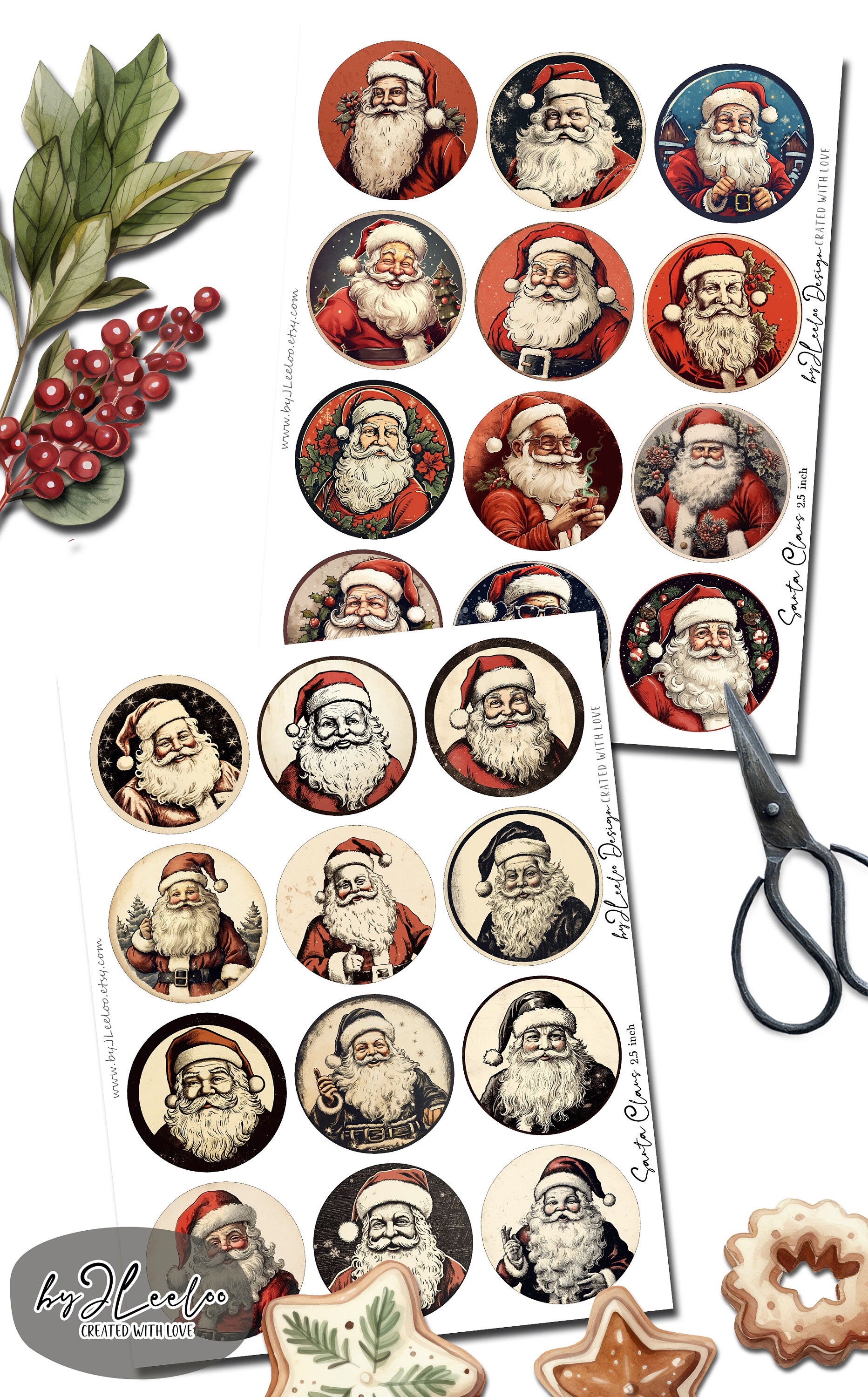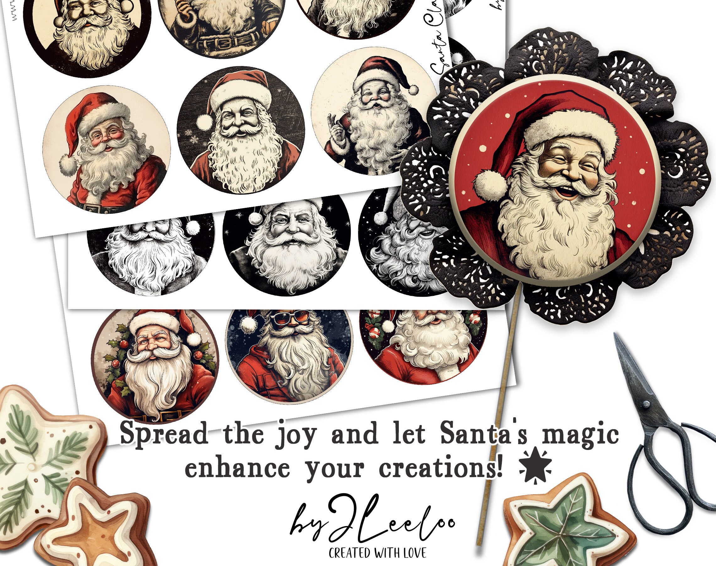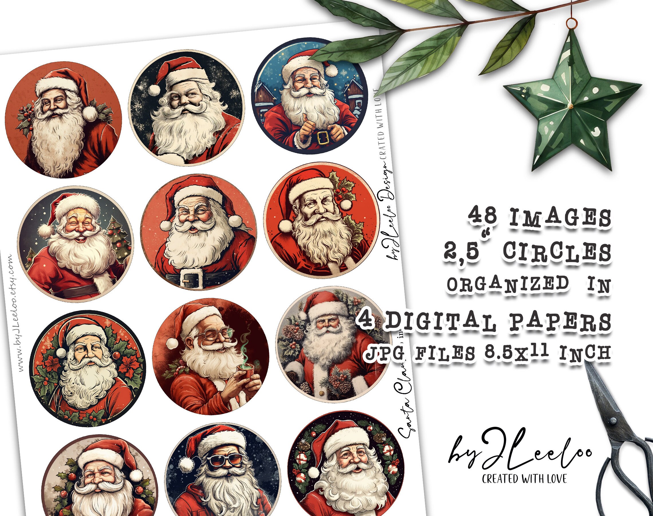 SANTA CLAUS 2.5 inch circle | Christmas vintage supplies | pocket mirrors cupcake topper scrapbook magnets | Junk journal ephemera | tn669