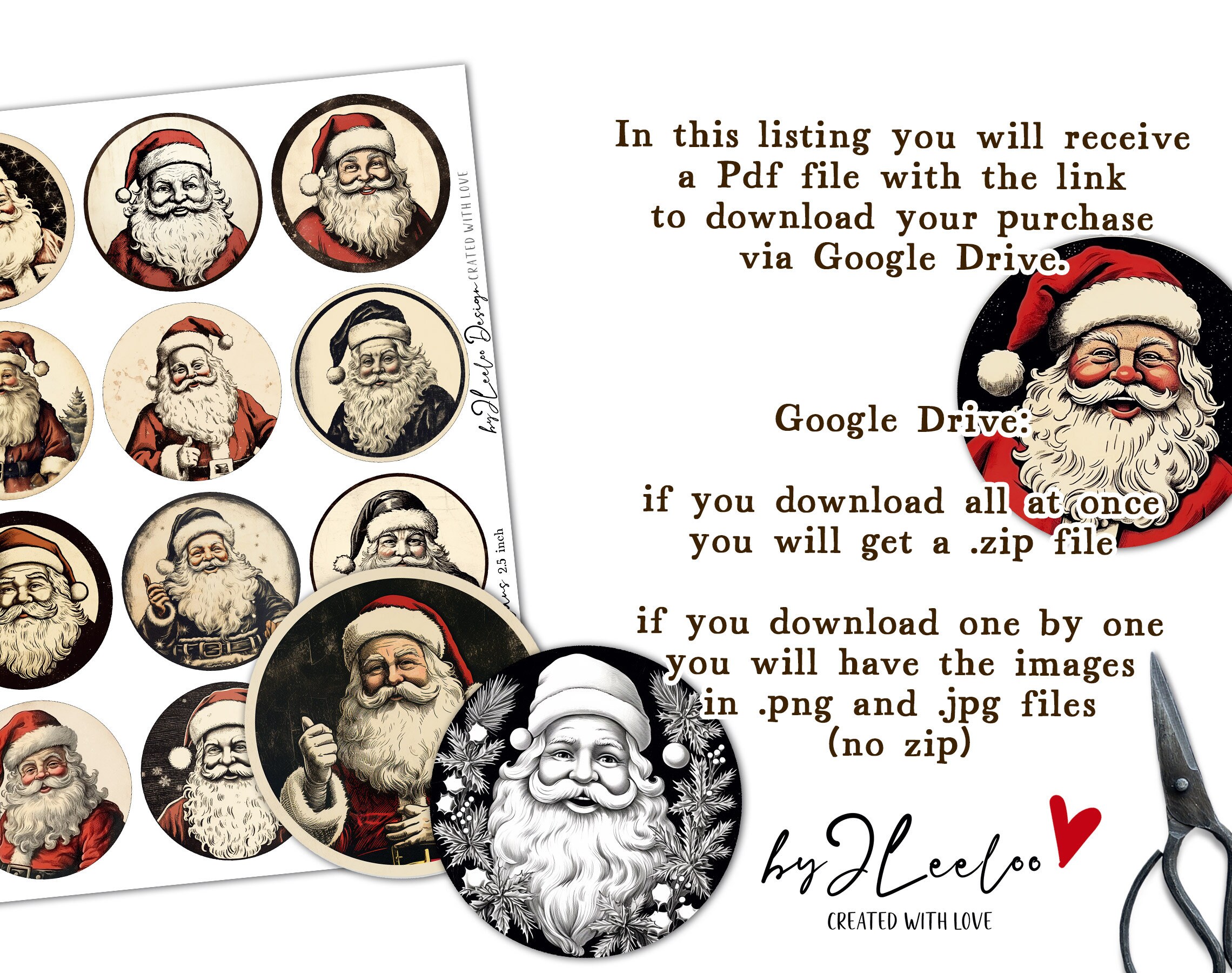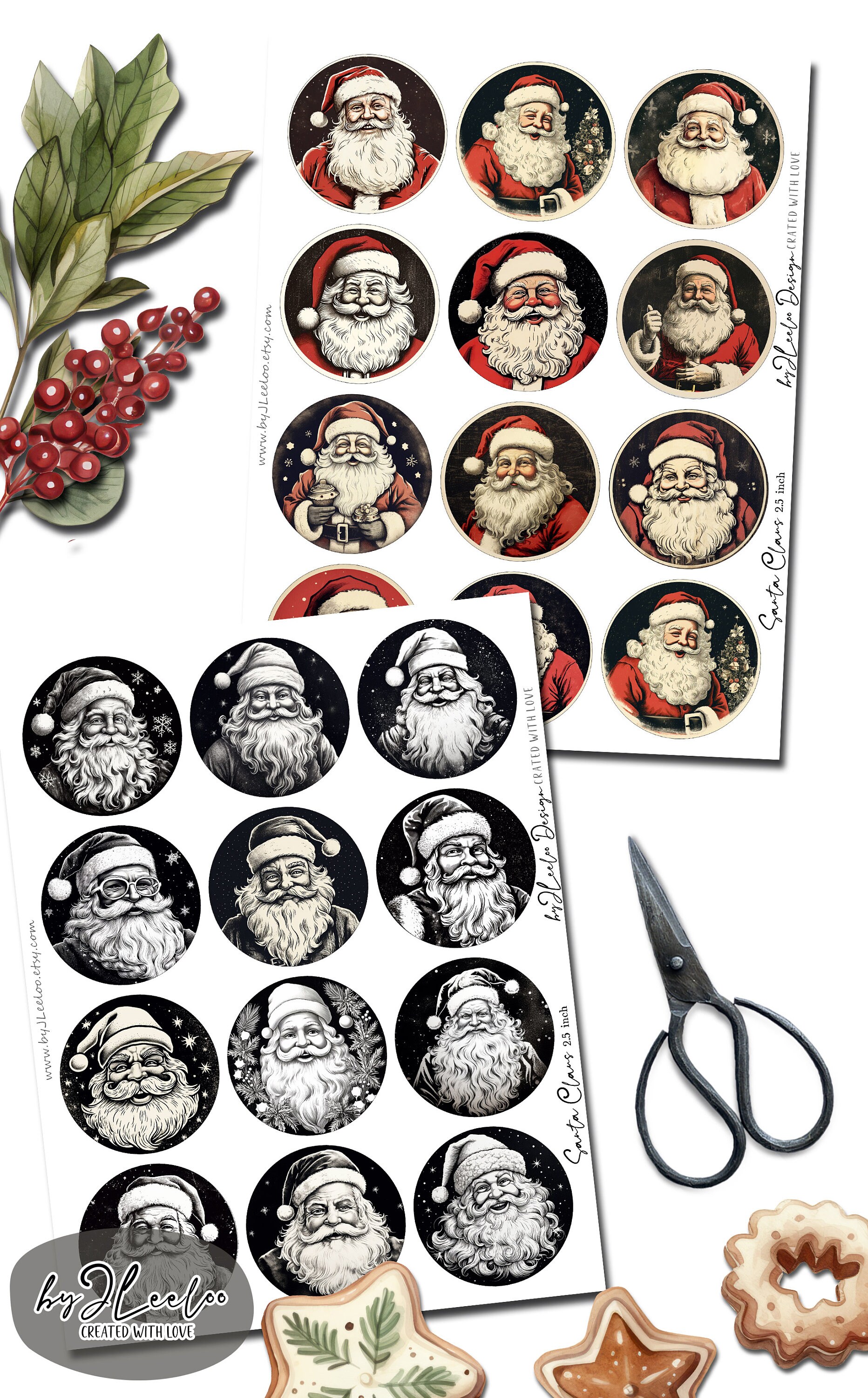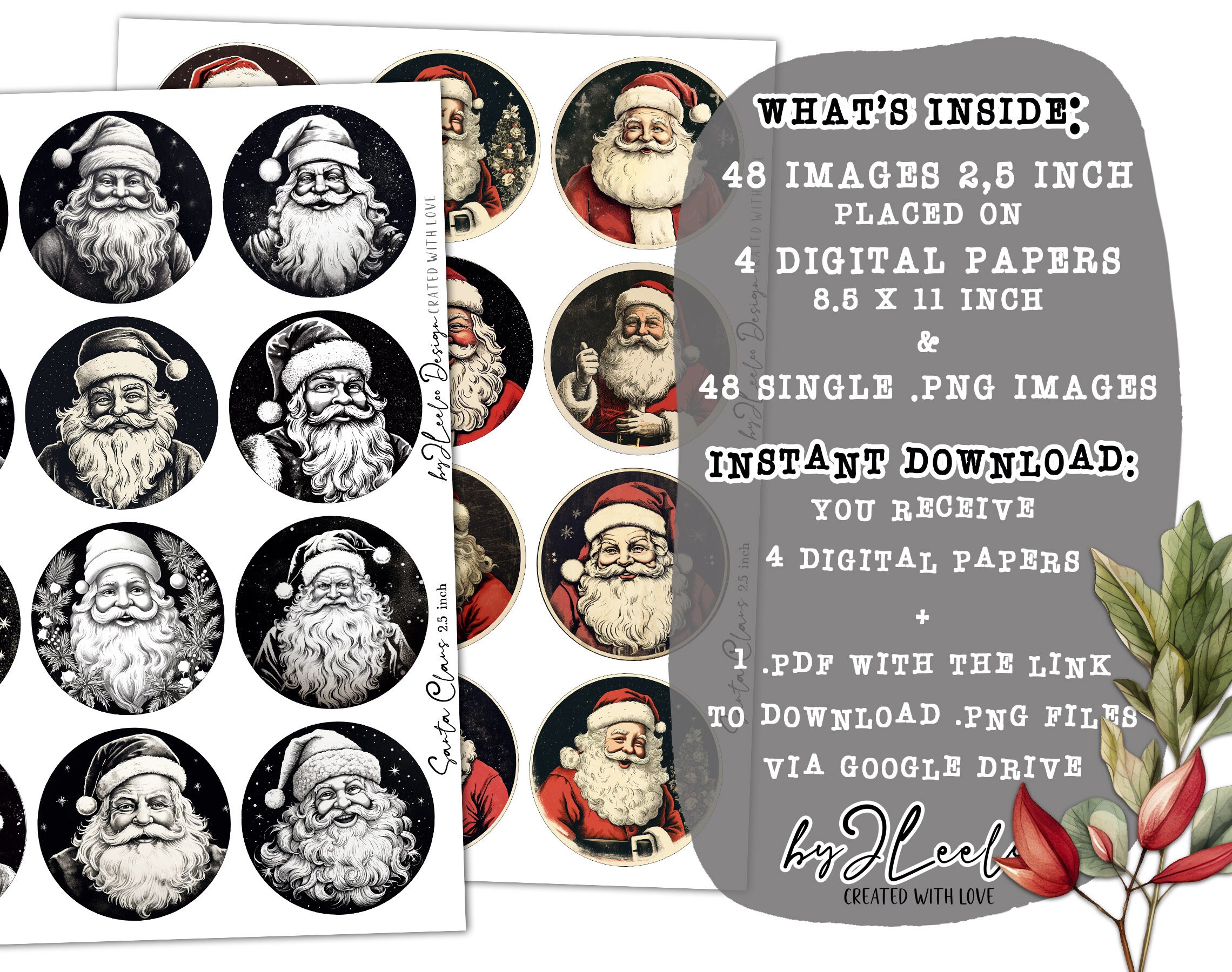 SANTA CLAUS 2.5 inch circle | Christmas vintage supplies | pocket mirrors cupcake topper scrapbook magnets | Junk journal ephemera | tn669