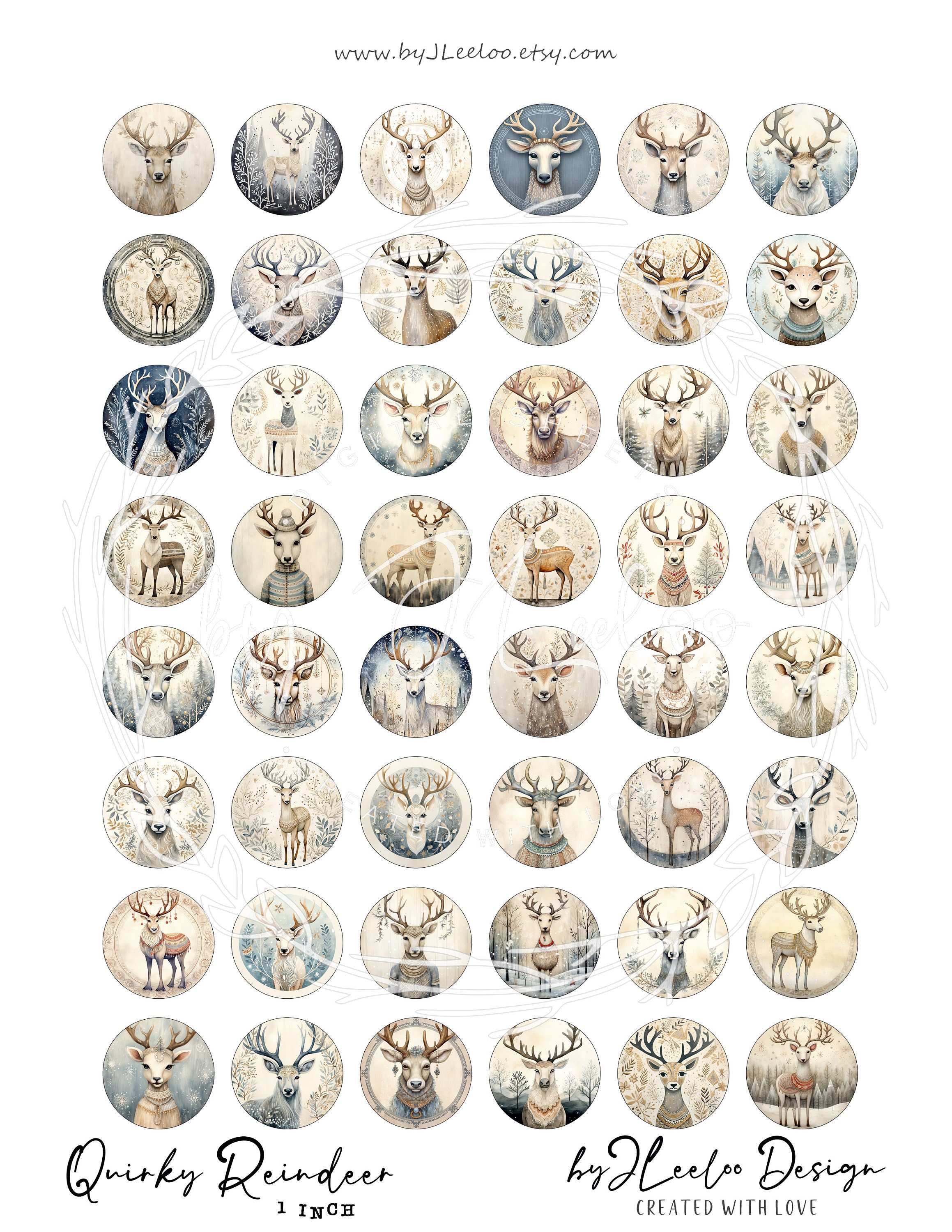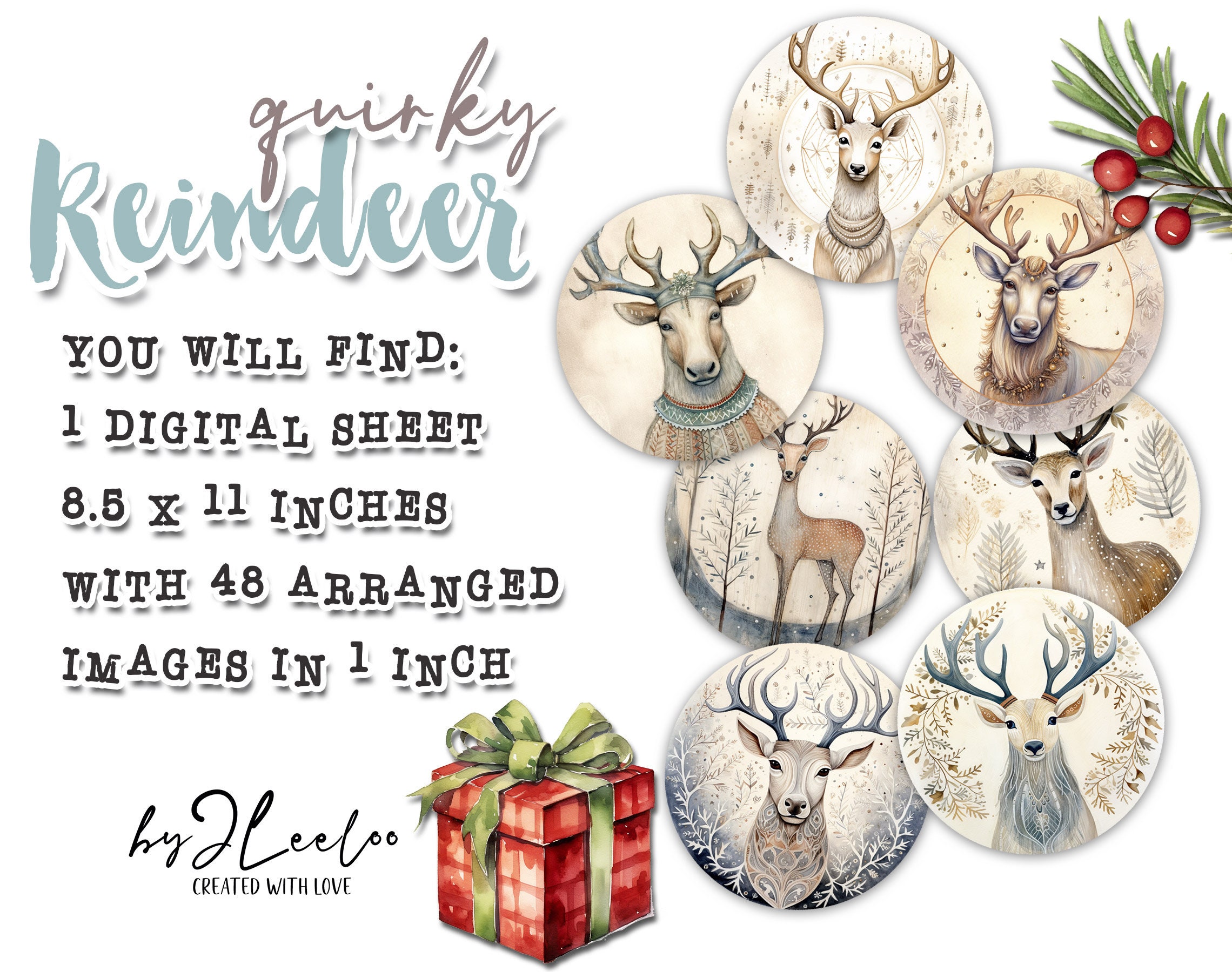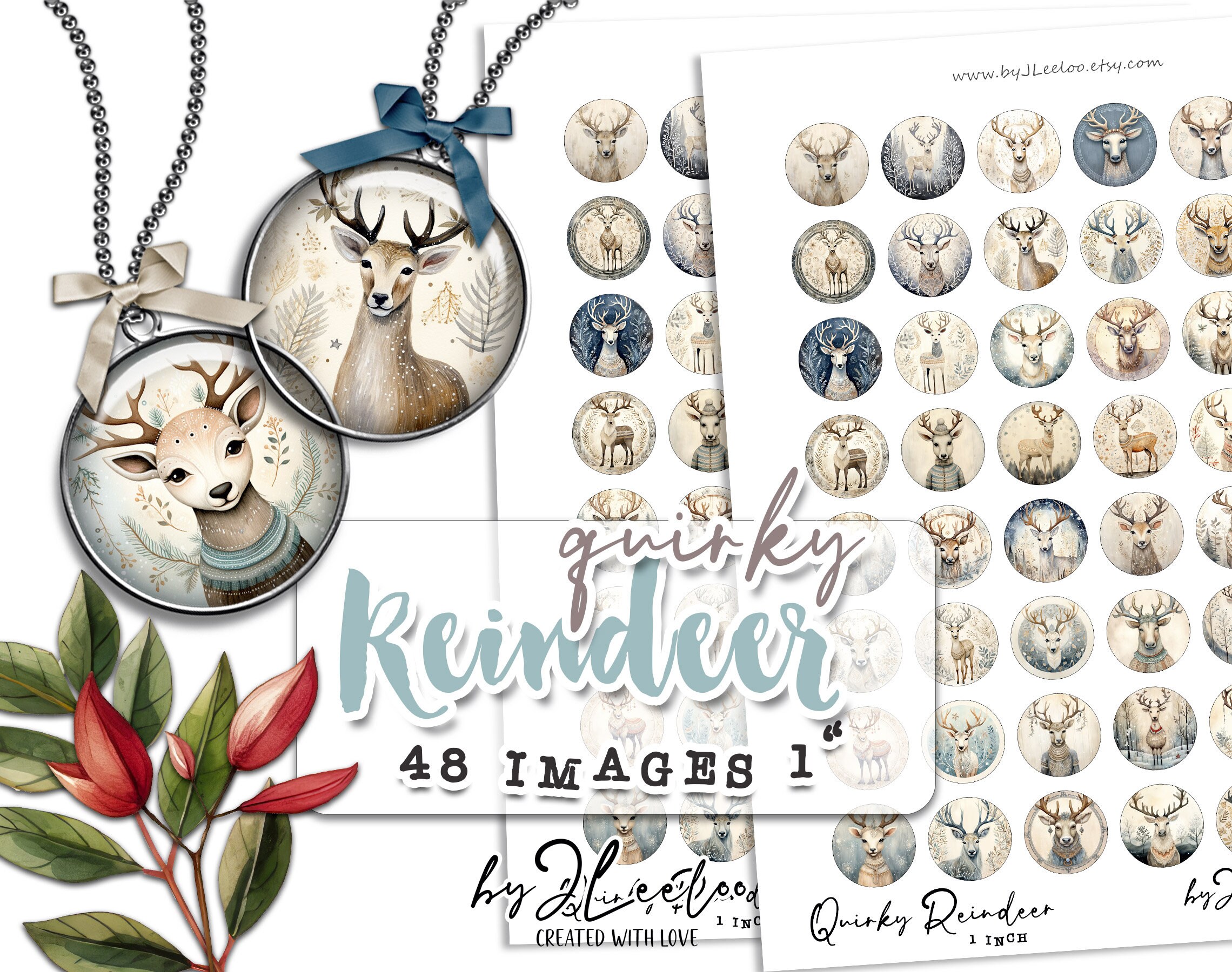 QUIRKY REINDEER 1 inch circle | Christmas scandinavian supplies | pendant jewellery craft projects bottle cap | journal ephemera | tn671