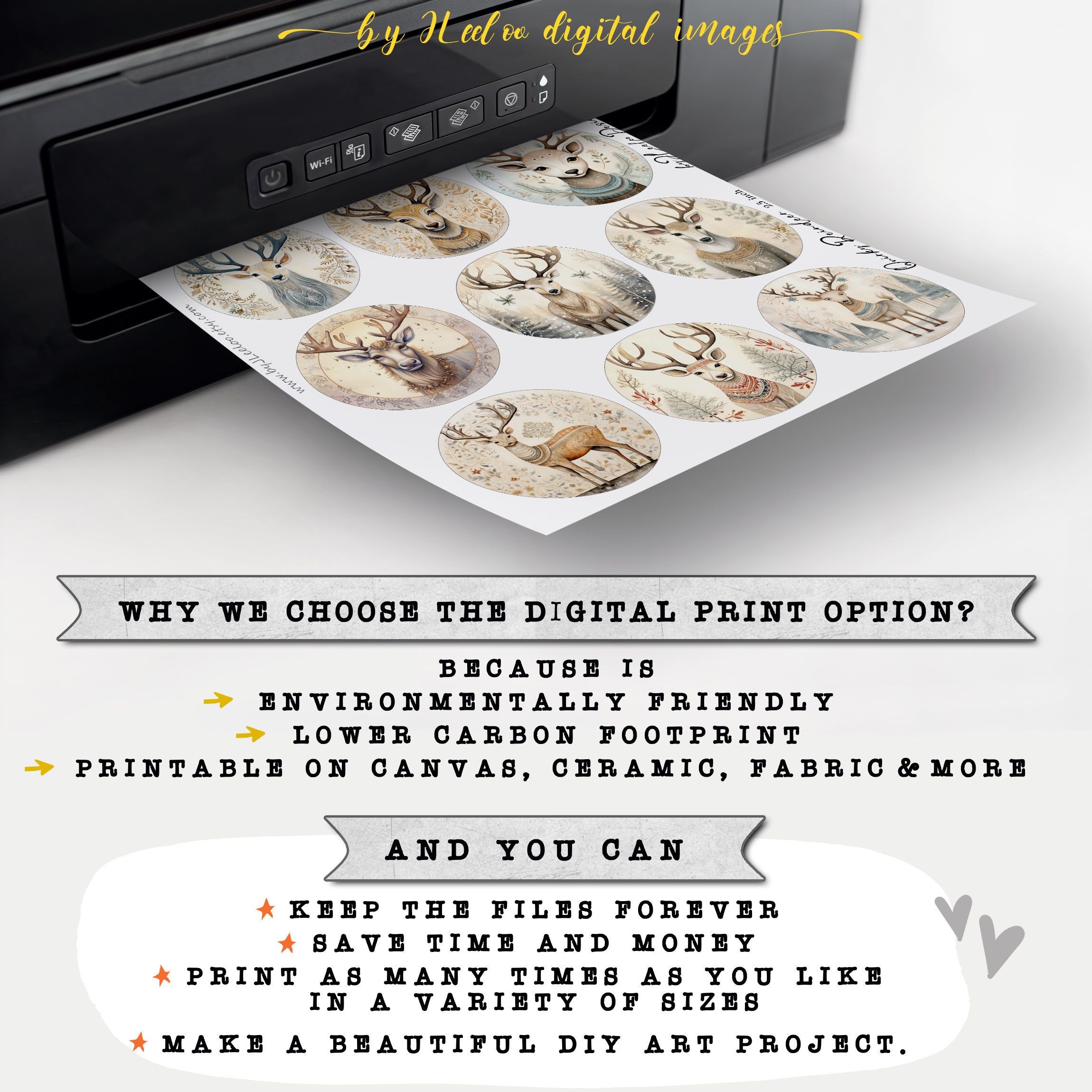 โ 48 charming reindeer images in 1 inch, a harmonious blend of winter magic and coziness, placed in 1 digital paper 8.5 x 11 inch