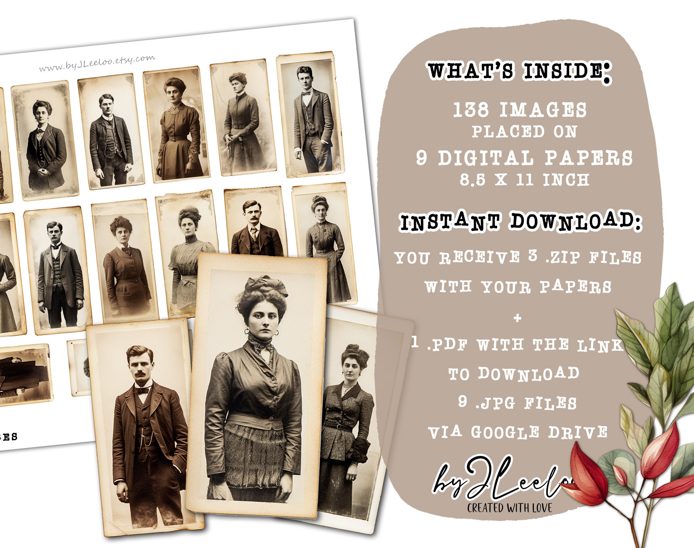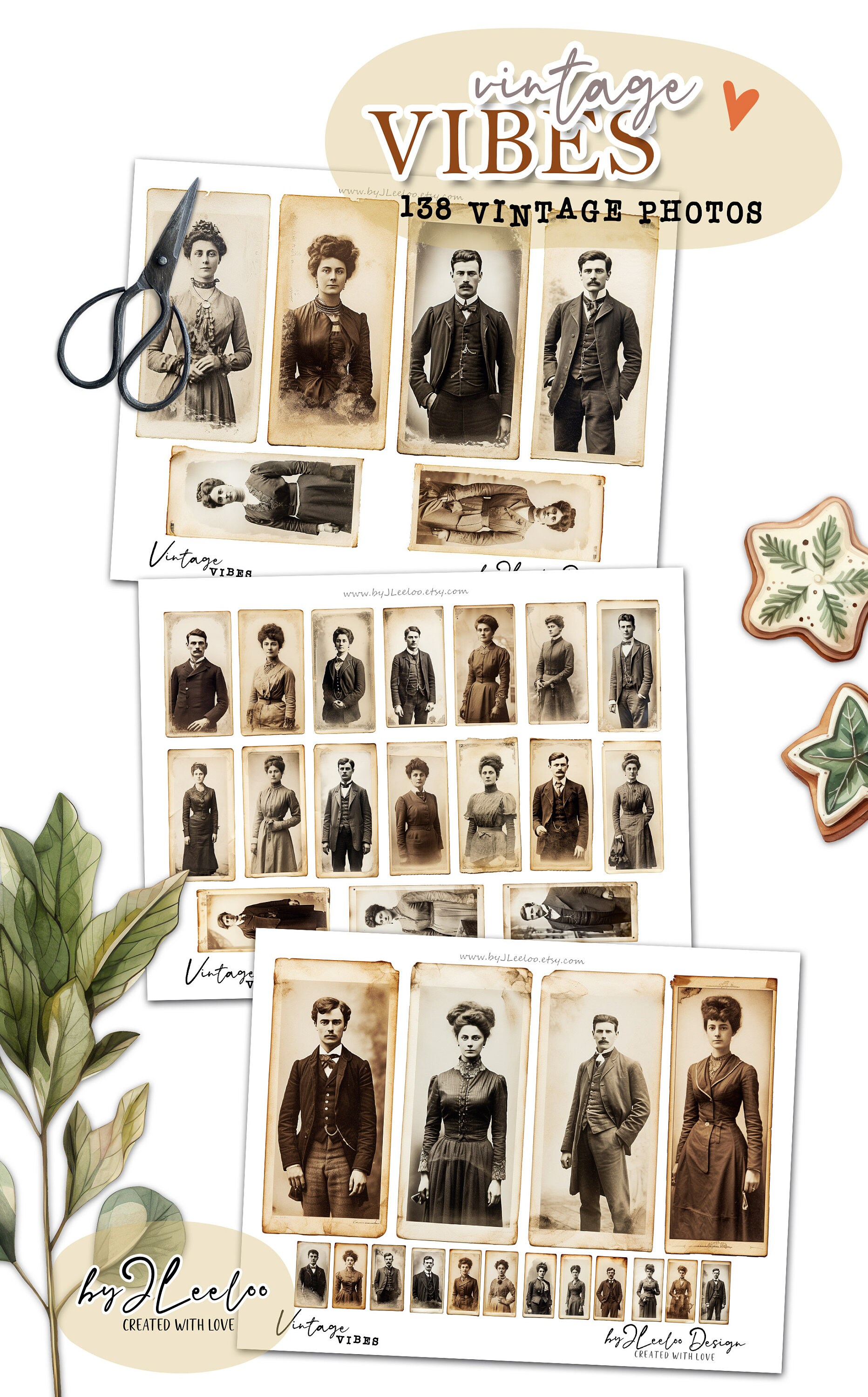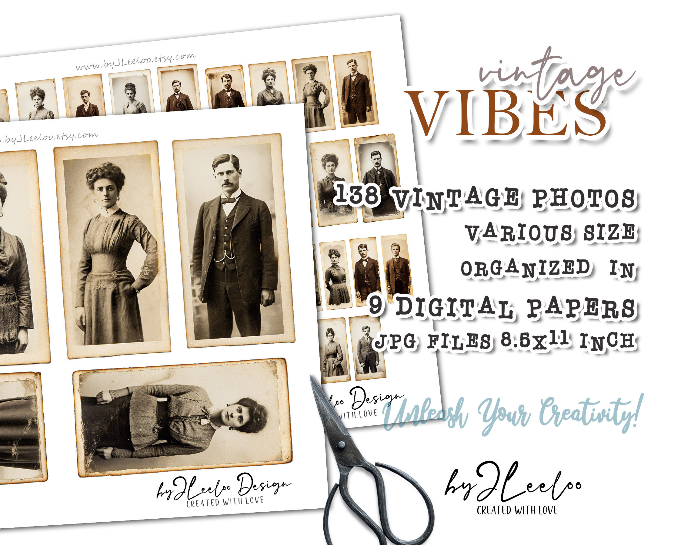 VINTAGE VIBES Collection 138 photos | 1900 style scrapbook junk journal digital printable cards supplies | old cards Ephemera Bundle | pp649