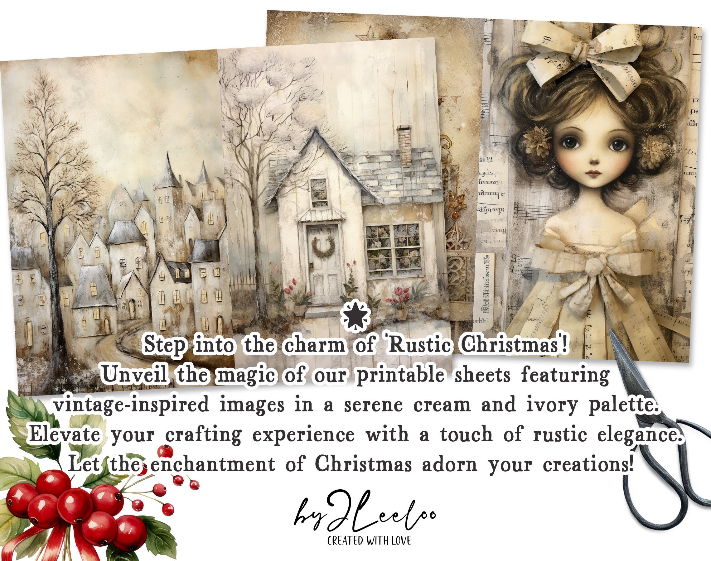 "Step into the charm of 'Rustic Christmas'! Unveil the magic of our printable sheets featuring vintage-inspired images in a serene cream and ivory palette. Elevate your crafting experience with a touch of rustic elegance. Let the enchantment of Christmas adorn your creations! ๐๐"