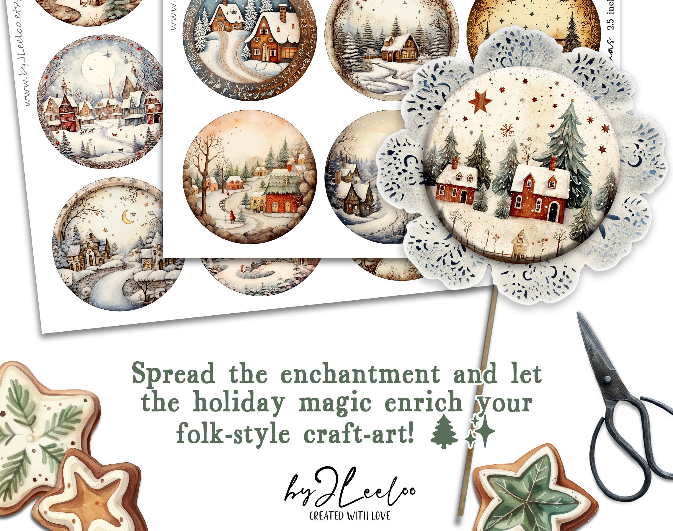 ๐ฒ Whimsical Winter Circles for Your Festive Creations! Immerse your projects in the enchanting beauty of folk-style Christmas landscapes. Each round illustration captures the magic, turning your creations into holiday wonders. Explore the charm of winter with our delightful images. Let the festive spirit enhance your craft! ๐