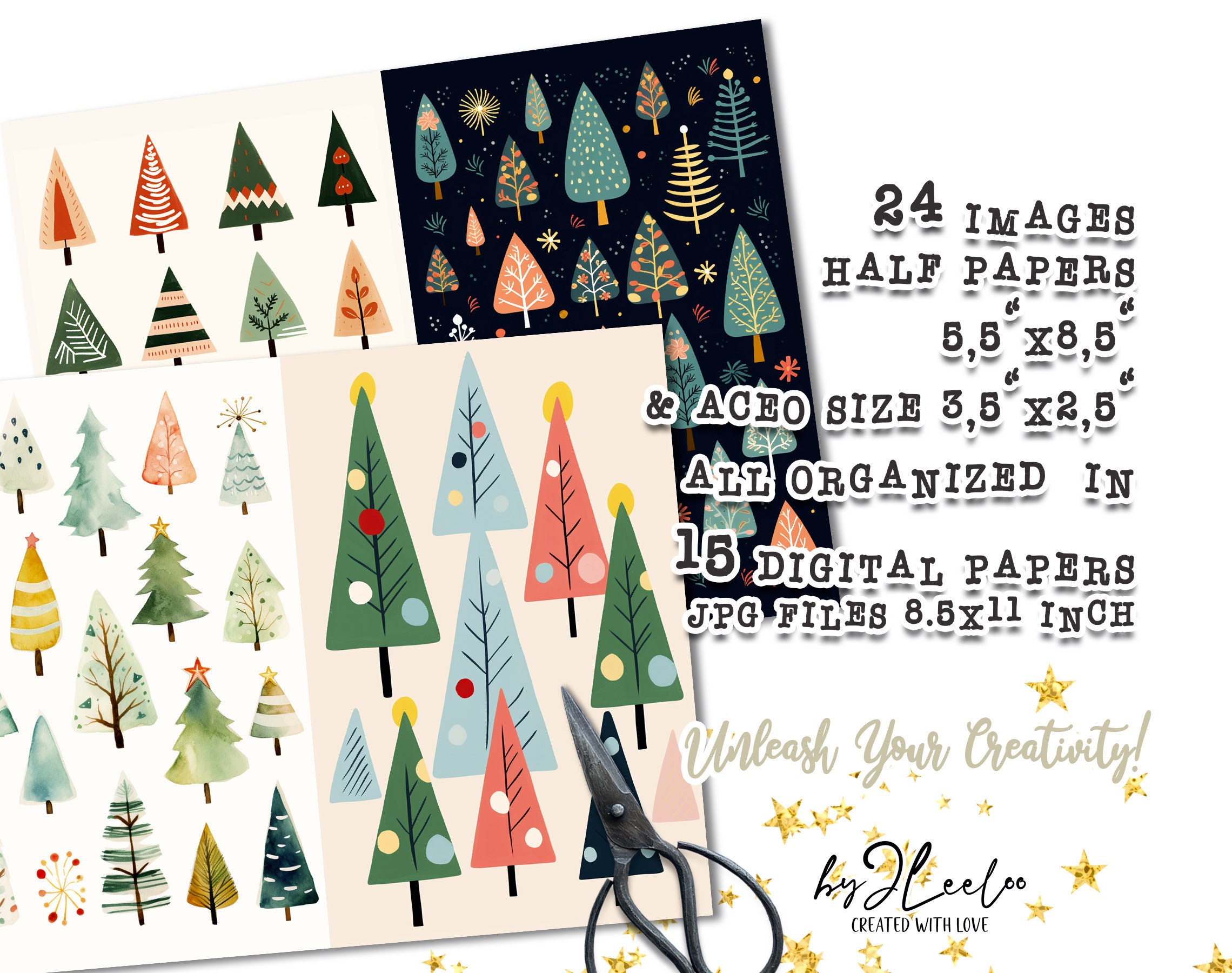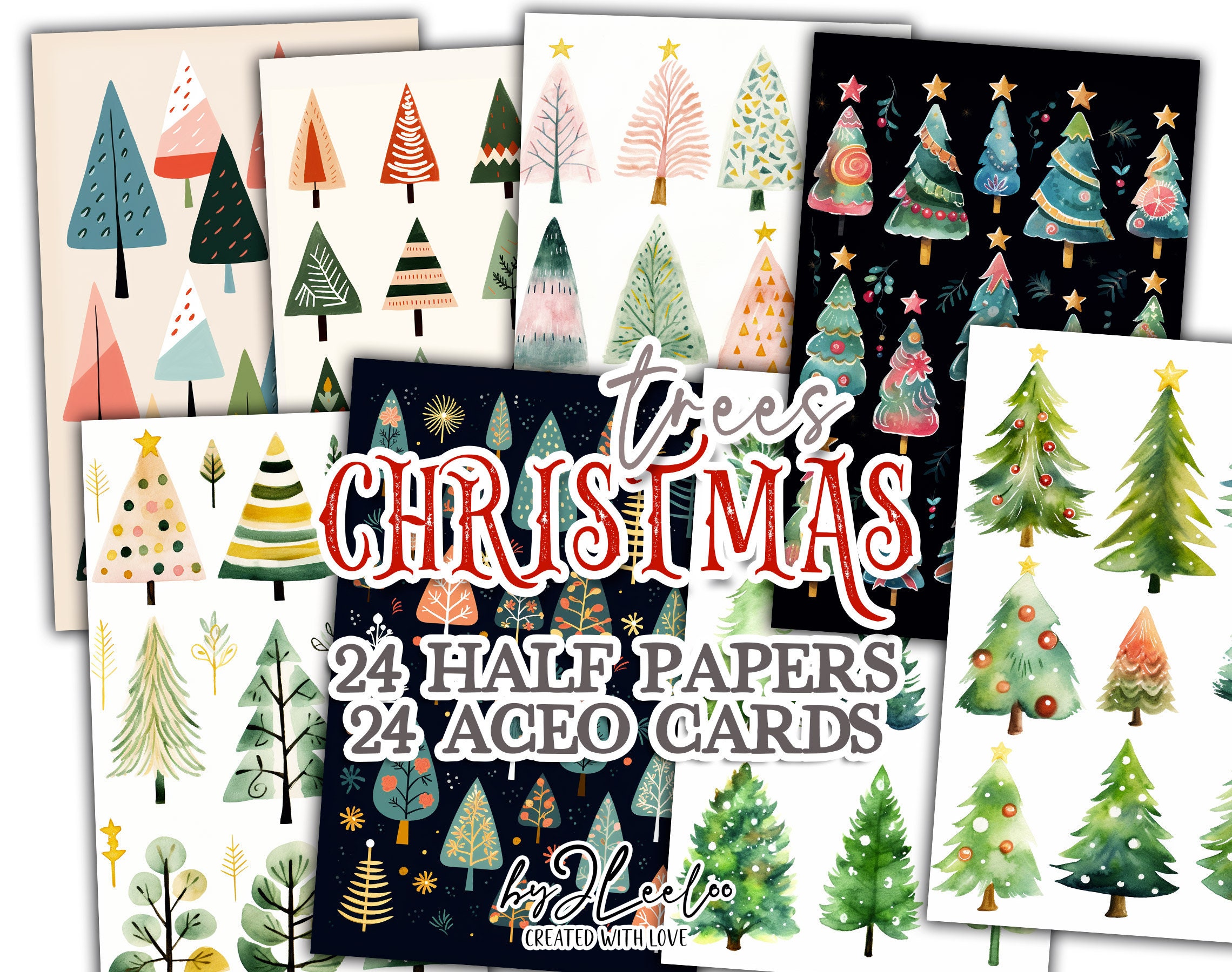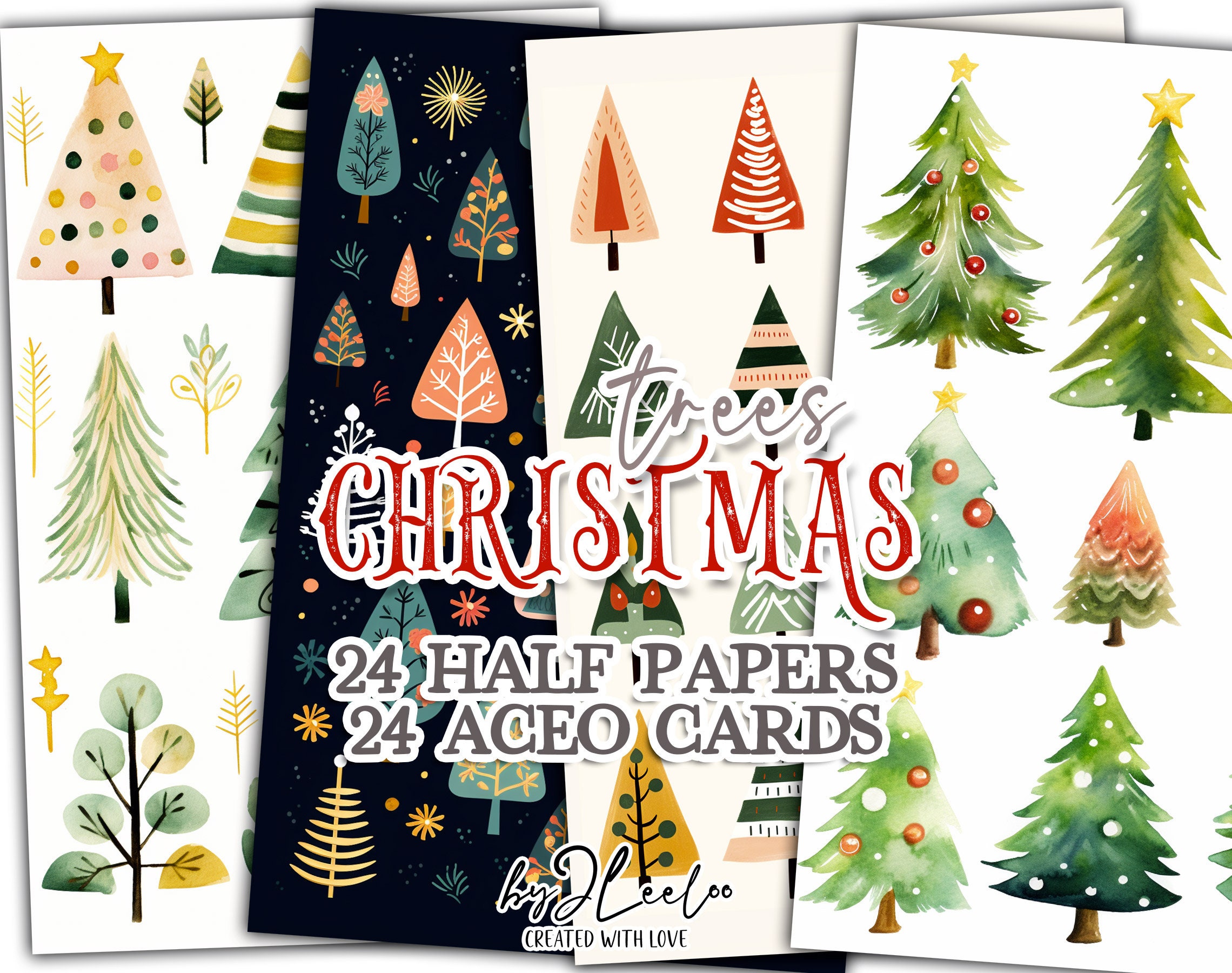 CHRISTMAS TREES folk half naive pages printable | junk journal Mixed Media | card making Holidays supplies card making stationery | pp659