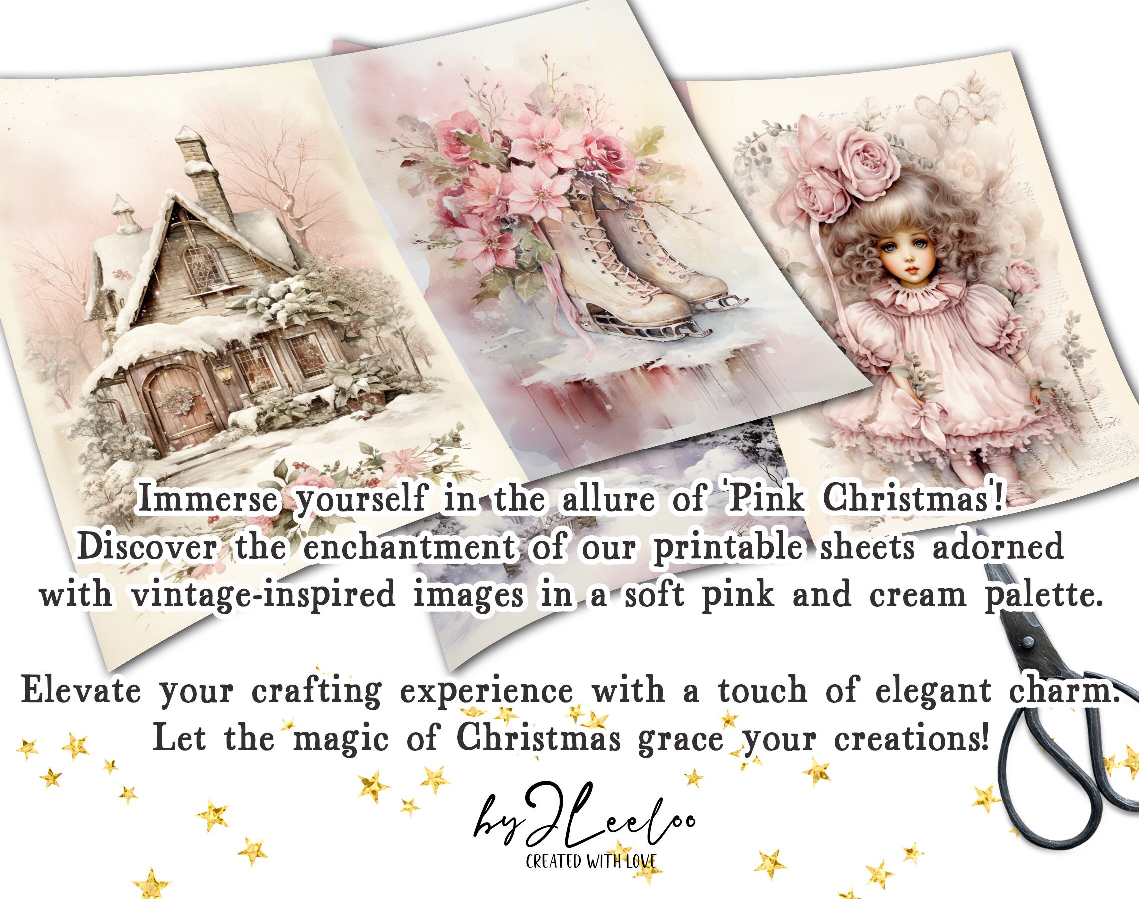 ๐ "Immerse yourself in the allure of 'Pink Christmas'! Discover the enchantment of our printable sheets adorned with vintage-inspired images in a soft pink and cream palette. Elevate your crafting experience with a touch of elegant charm. Let the magic of Christmas grace your creations! โจ๐"