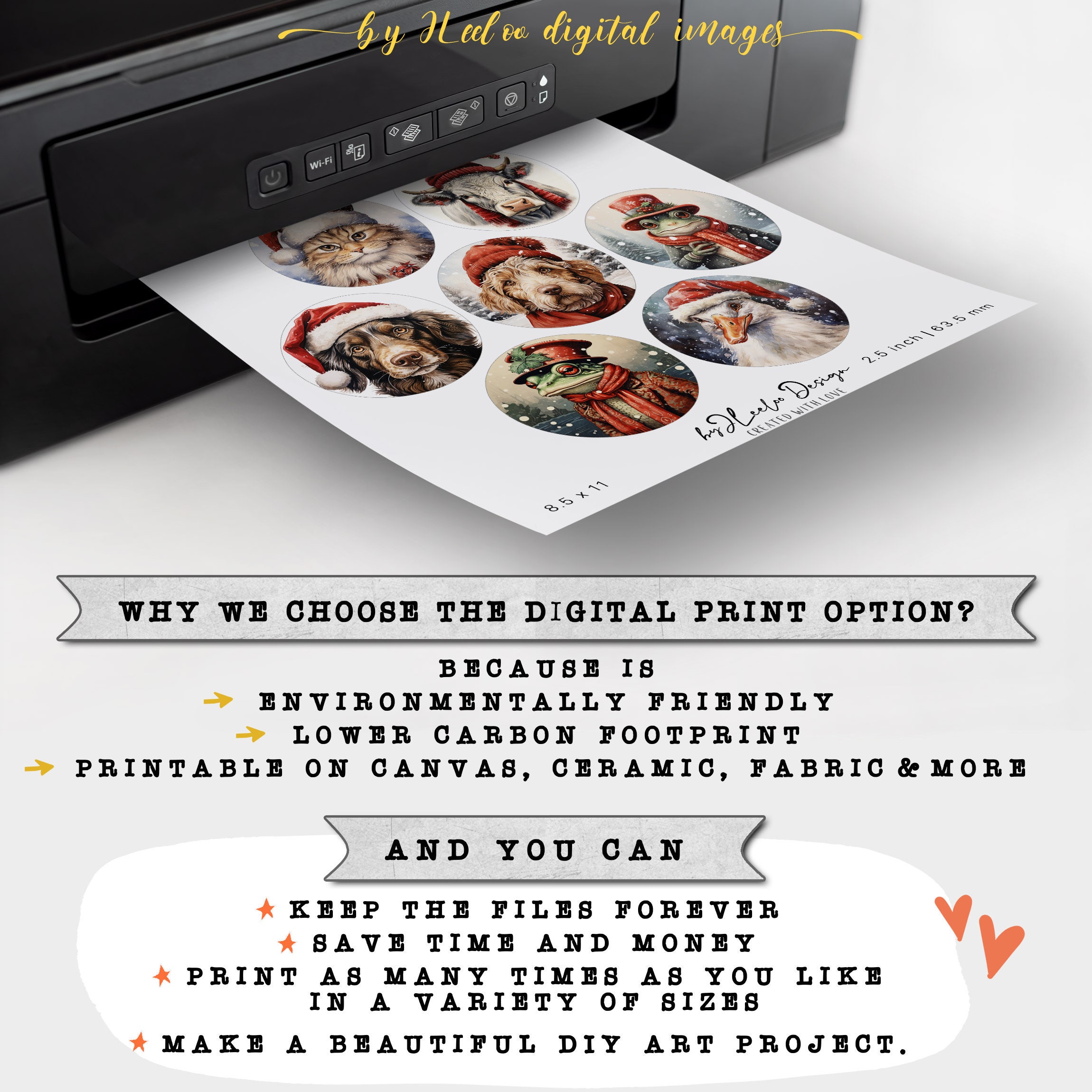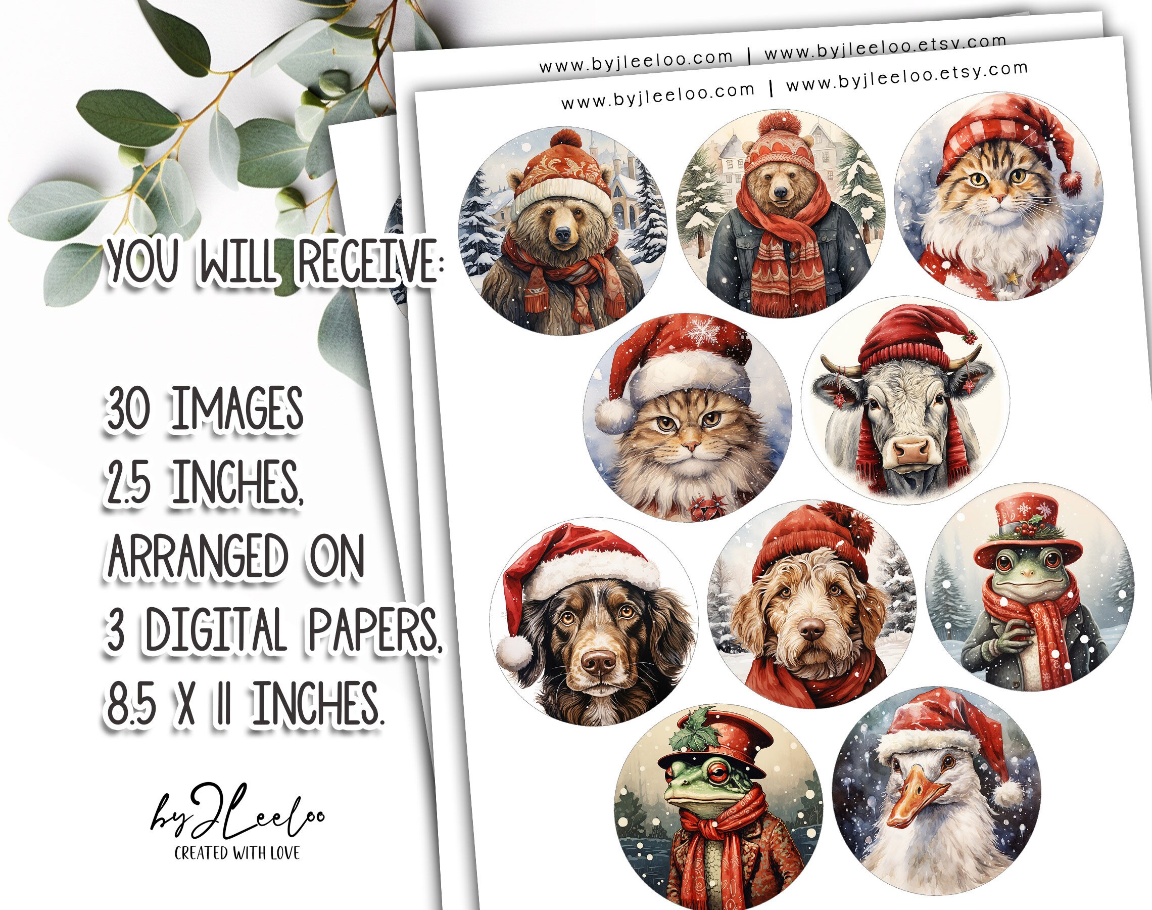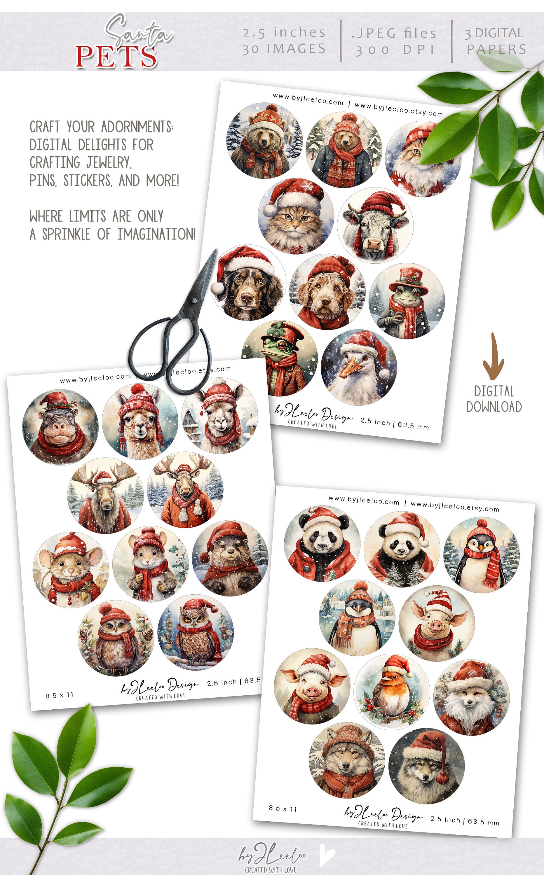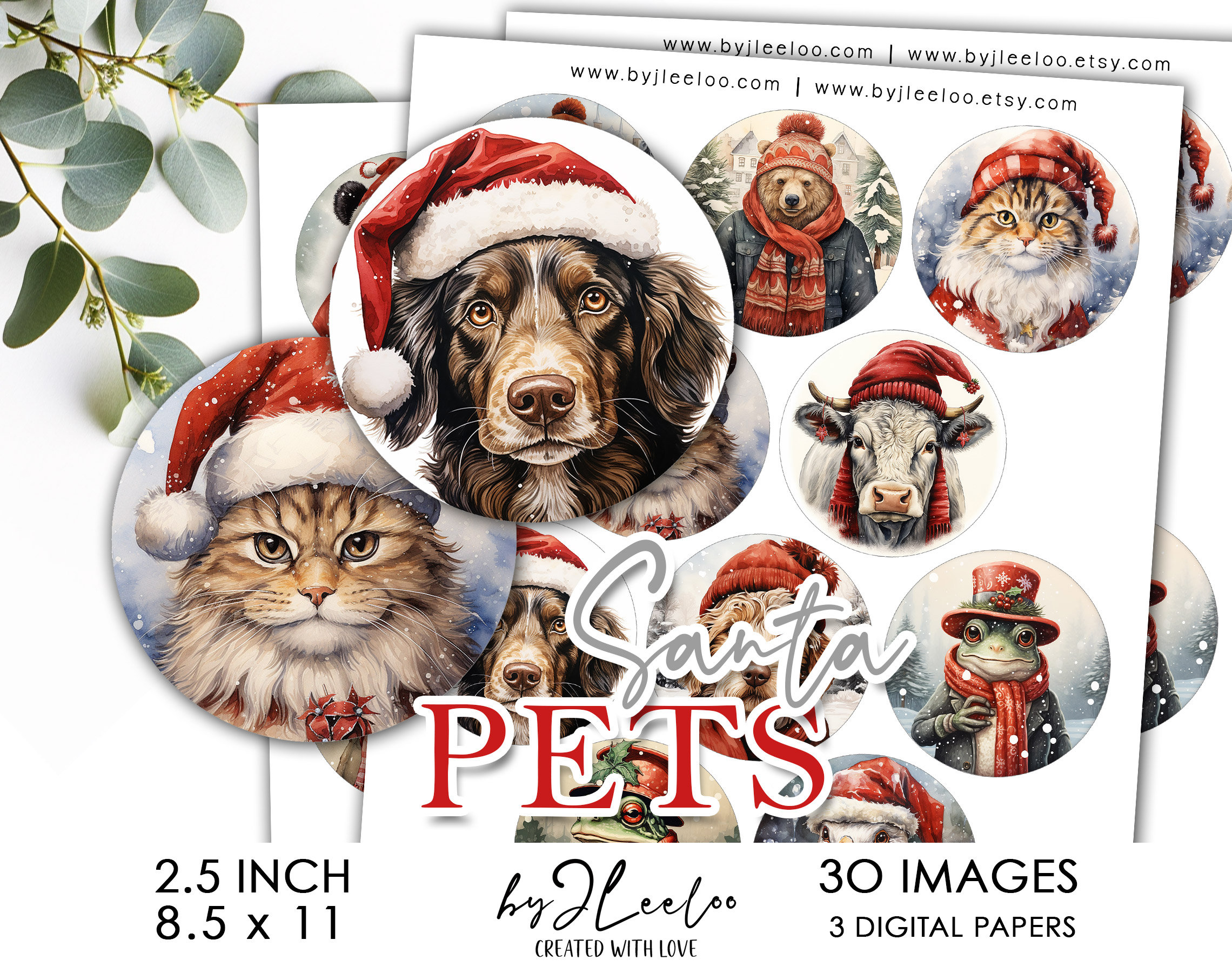 SANTA PETS 2.5 inch printable Christmas holidays | supplies round pendants, bezel trays, glass cabochon mountings, cameo settings | tn683