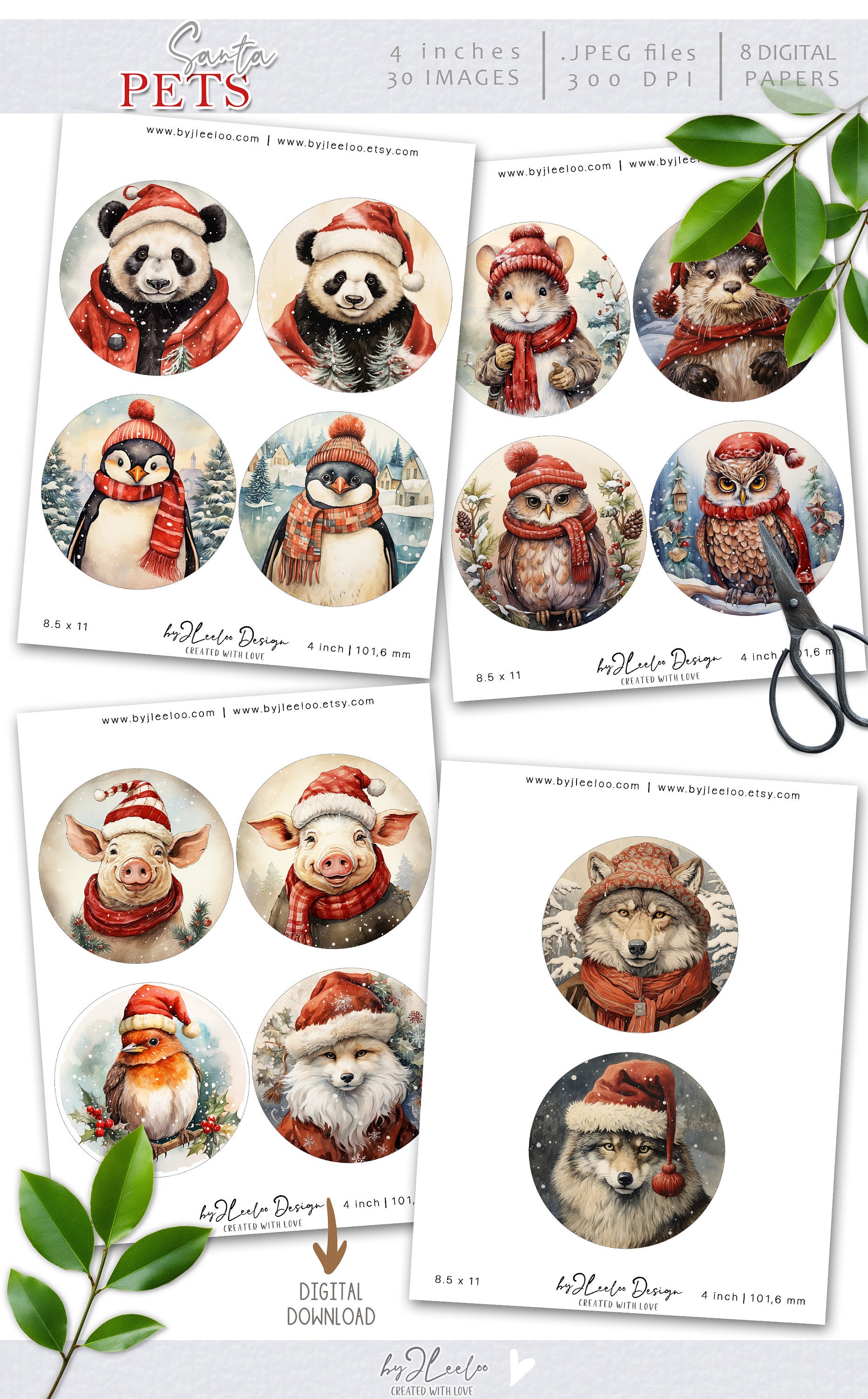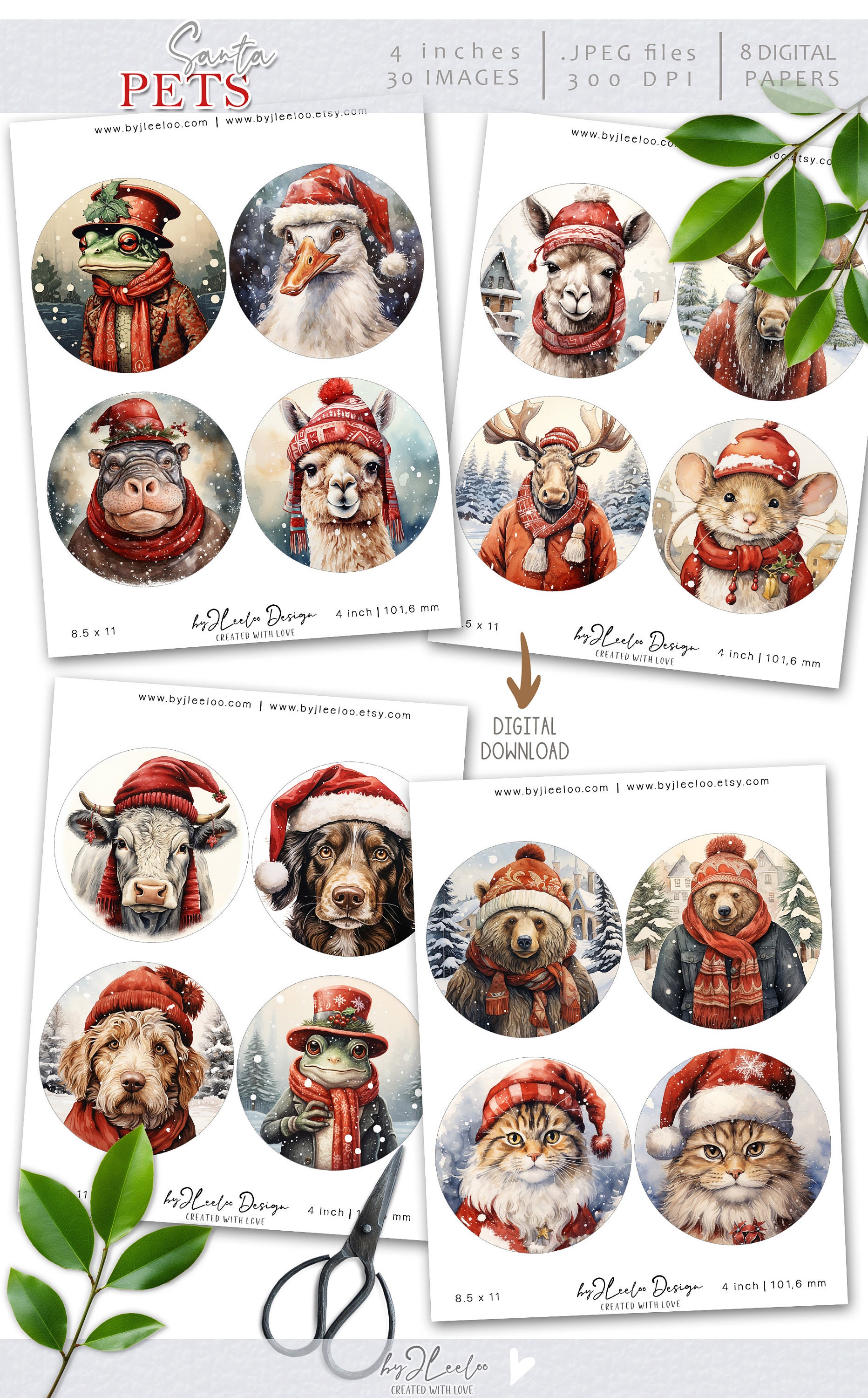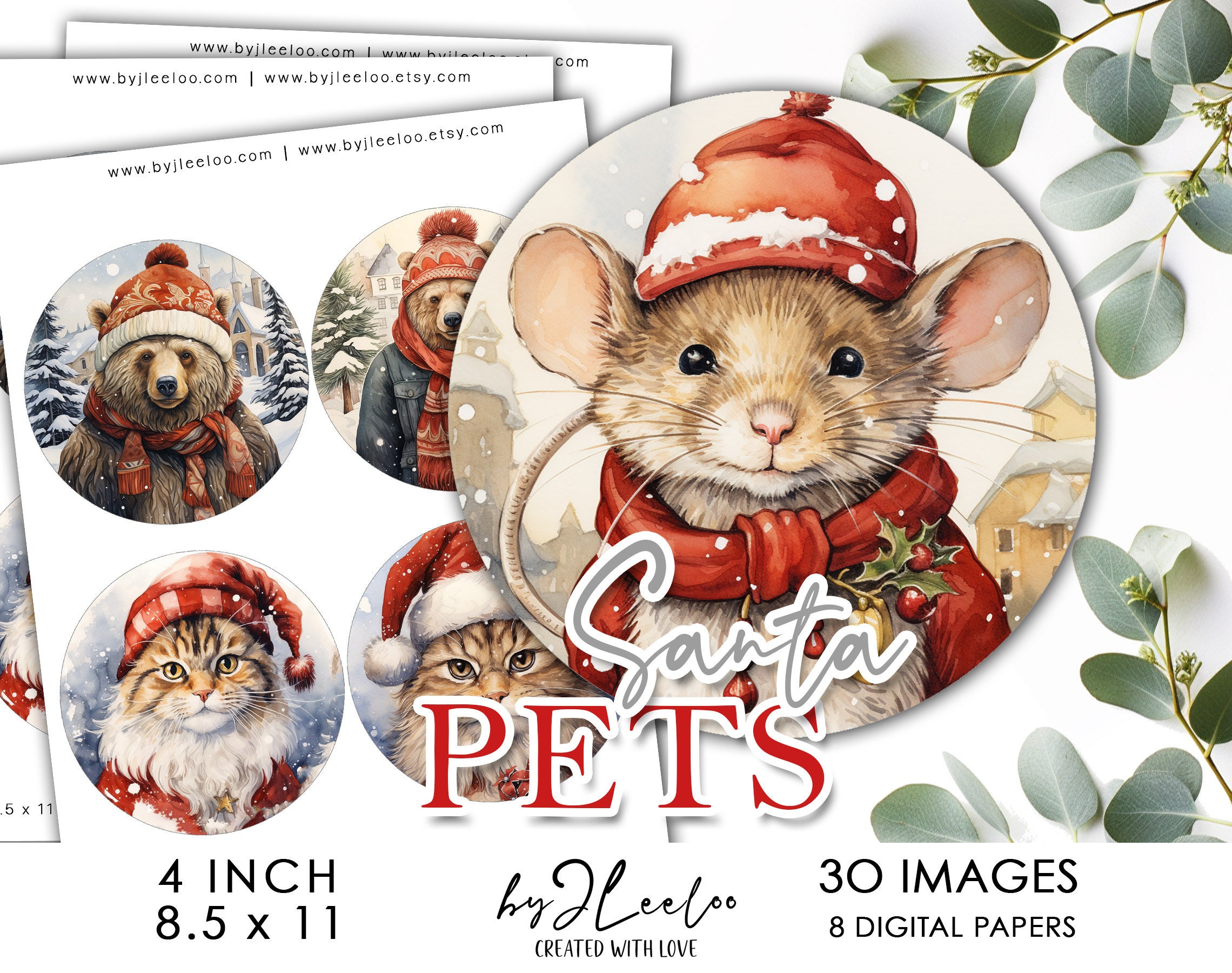 SANTA PETS 4 inch circle printable | round supplies for coaster pendant mirror magnet and craft instant download diy | Circle Labels | tn685