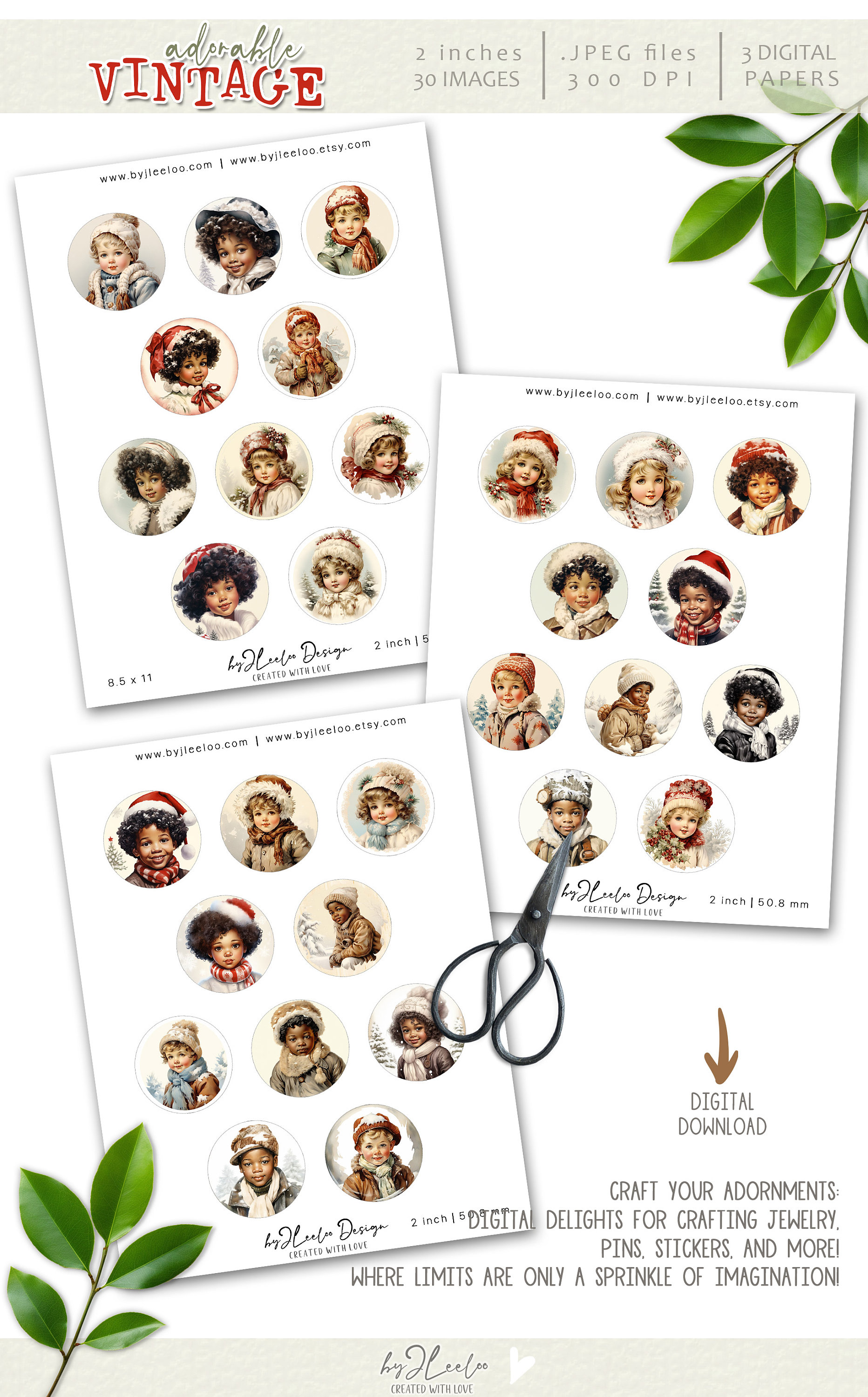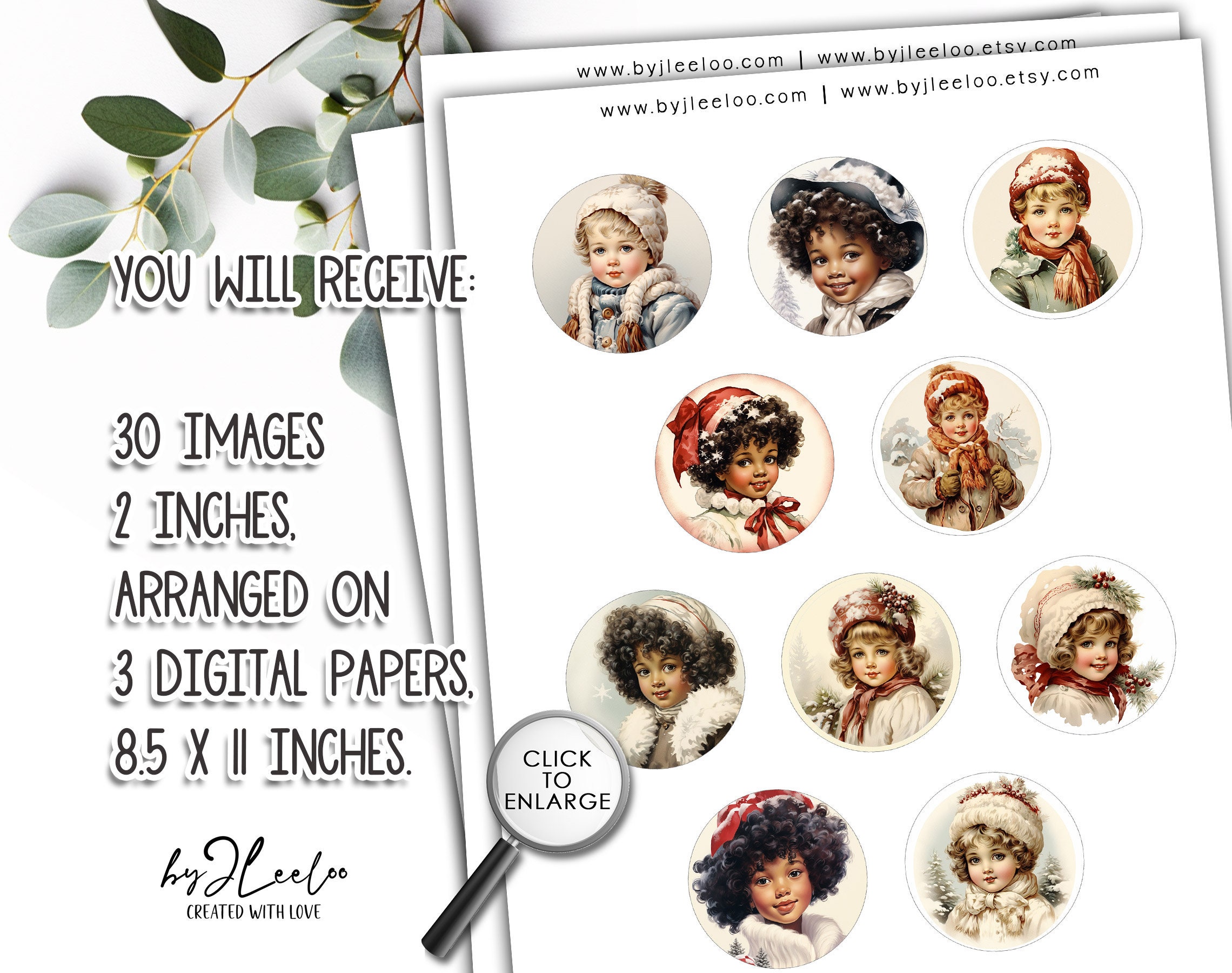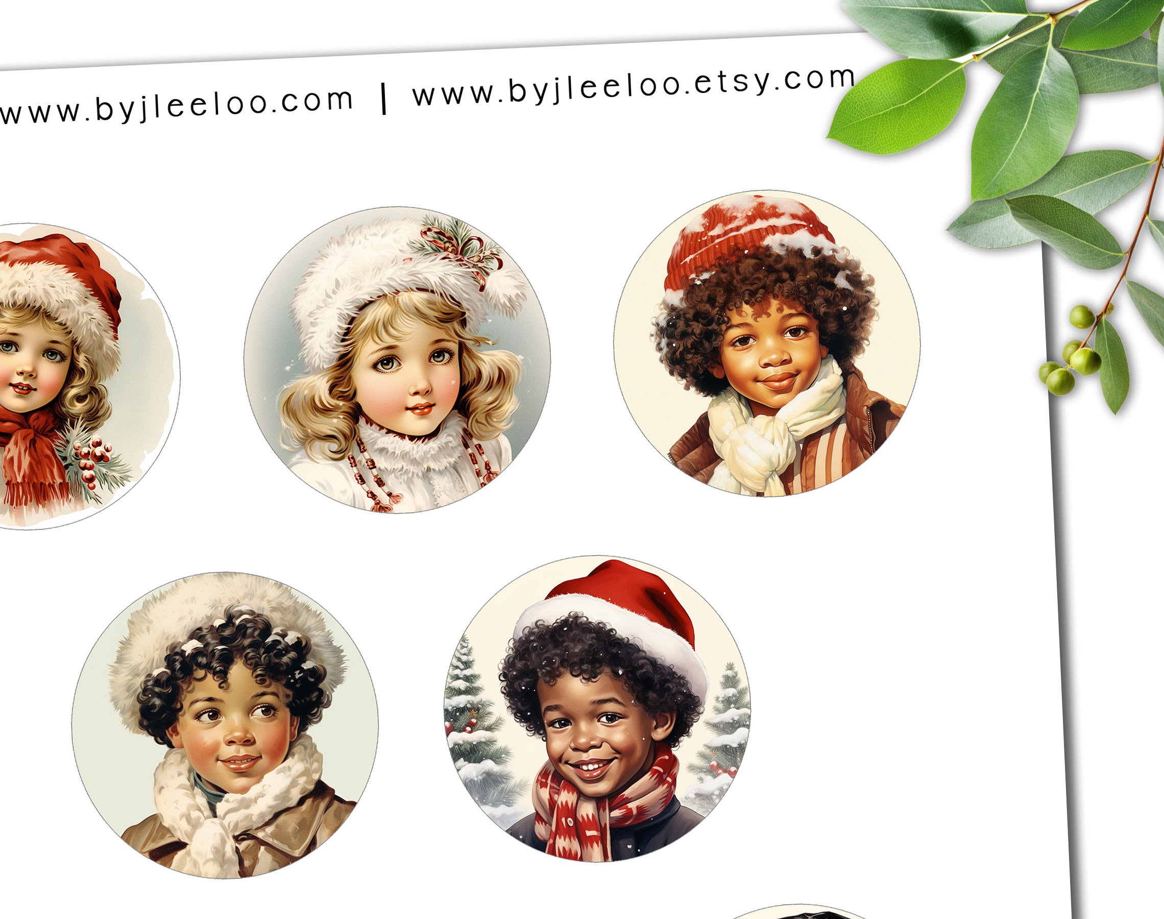 โพโจ 30 Delightful Round Illustrations: enchanting vintage-style images of children with Christmas details!