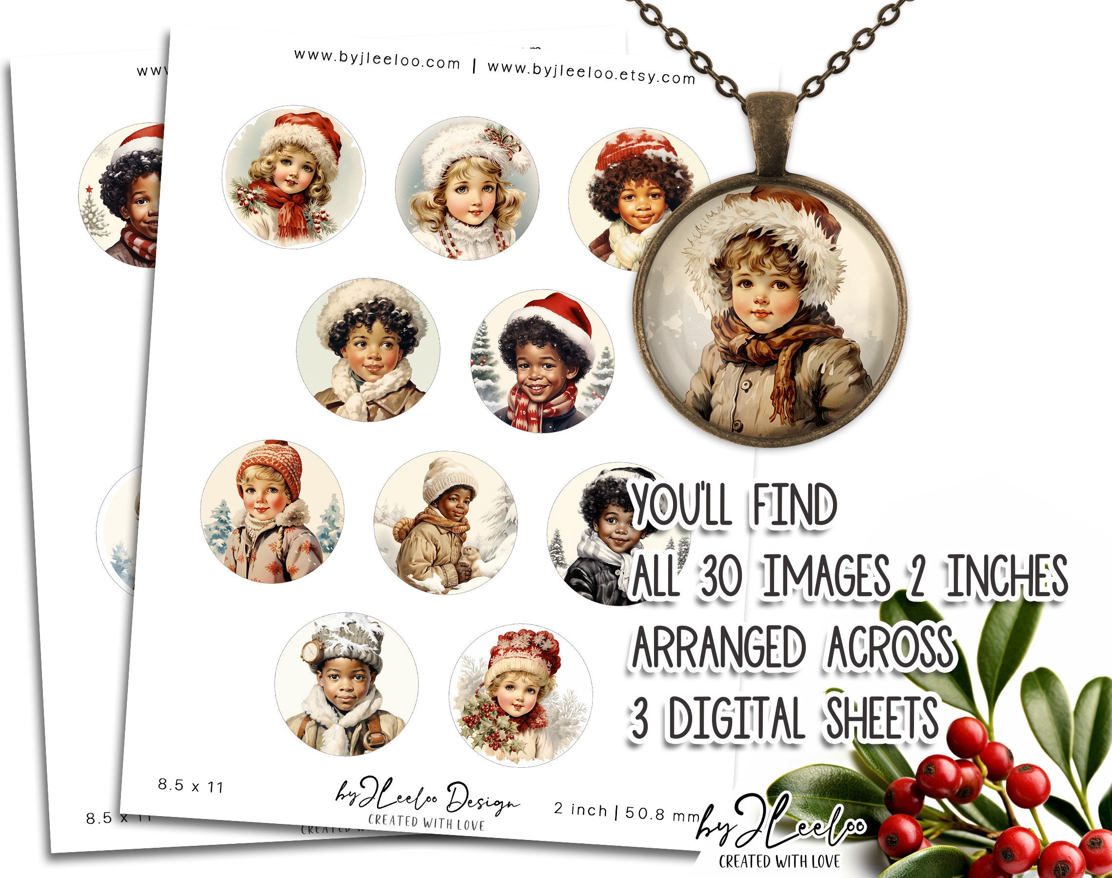 ADORABLE VINTAGE 2 inch printable christmas holidays | supplies round pendant, bezel trays, glass cabochon mountings, cameo settings | tn694