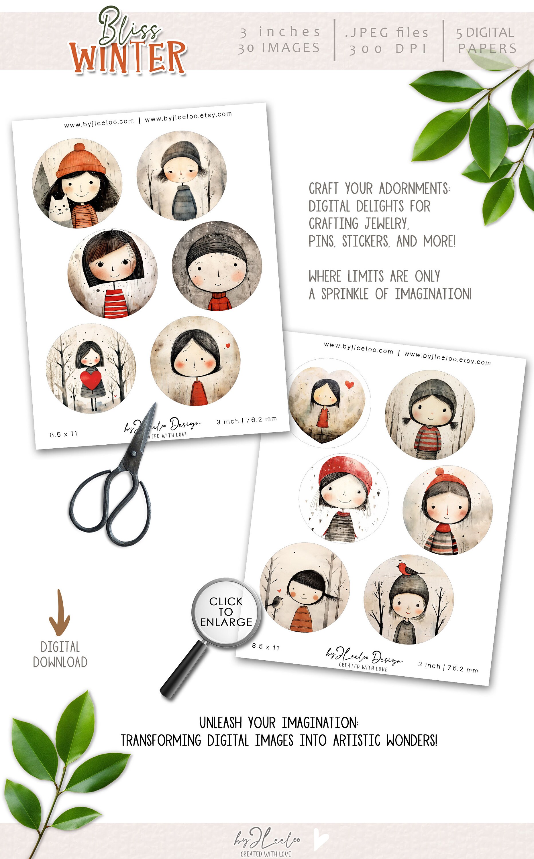 ๐ Welcome to Winter Blissโa collection of delightful circular portraits capturing the festive spirit of Christmas. These charming images, inspired by beloved artists, feature modern sketches and dynamic lines. Perfect for crafting unique jewelry and resin projects, they bring a touch of joy to your creations. Elevate your festive decor with these whimsical illustrations or infuse playfulness into your scrapbooking and journaling. Let Winter Bliss be the heartwarming companion to your creative endeavors, adding a sprinkle of holiday magic to every project. ๐