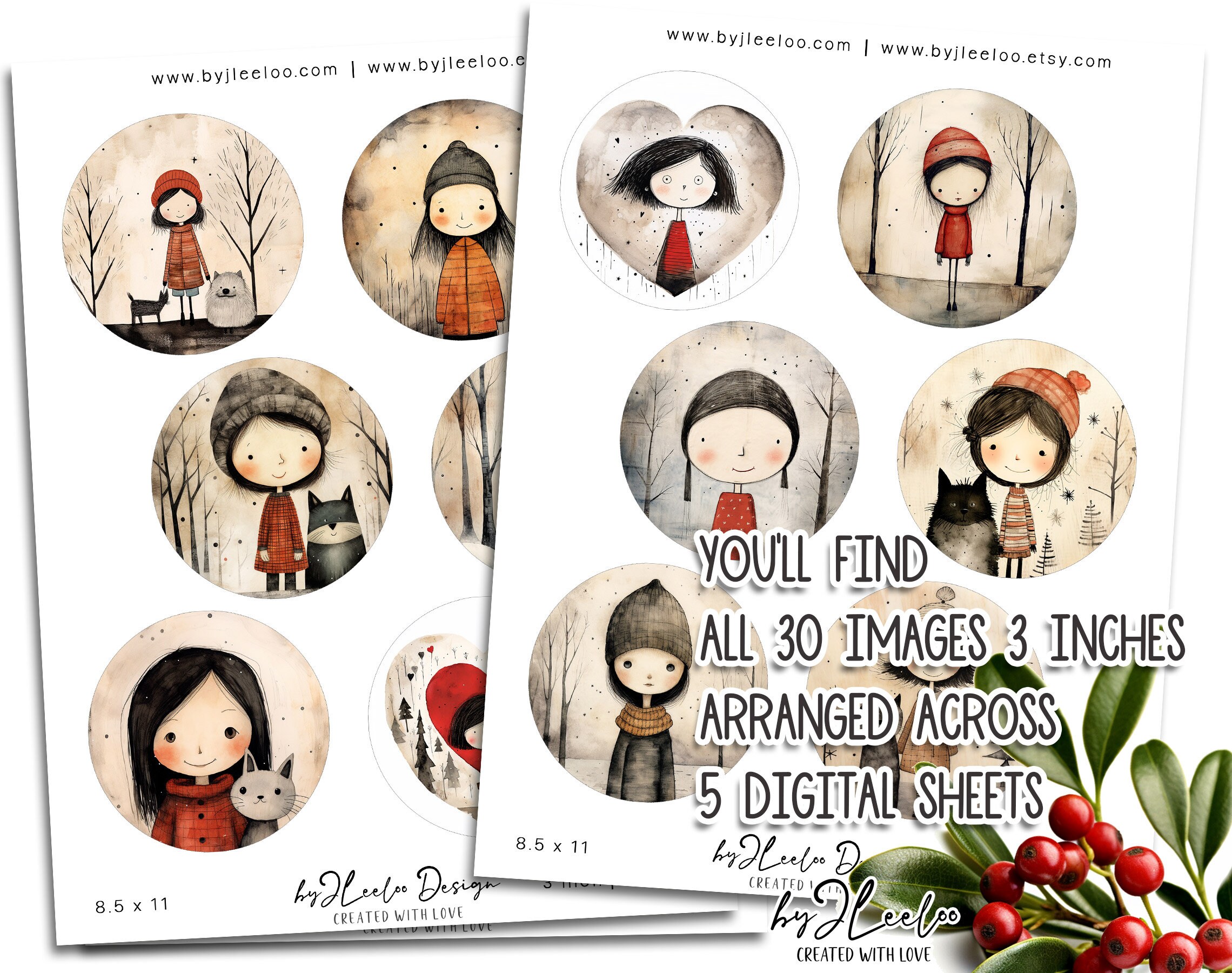 โ๏ธ Whimsical Winter Bliss Collection: Captivating, circular portraits of joyful Christmas girlsโperfect for jewelry, resin crafts, and festive decorations. โ๏ธ