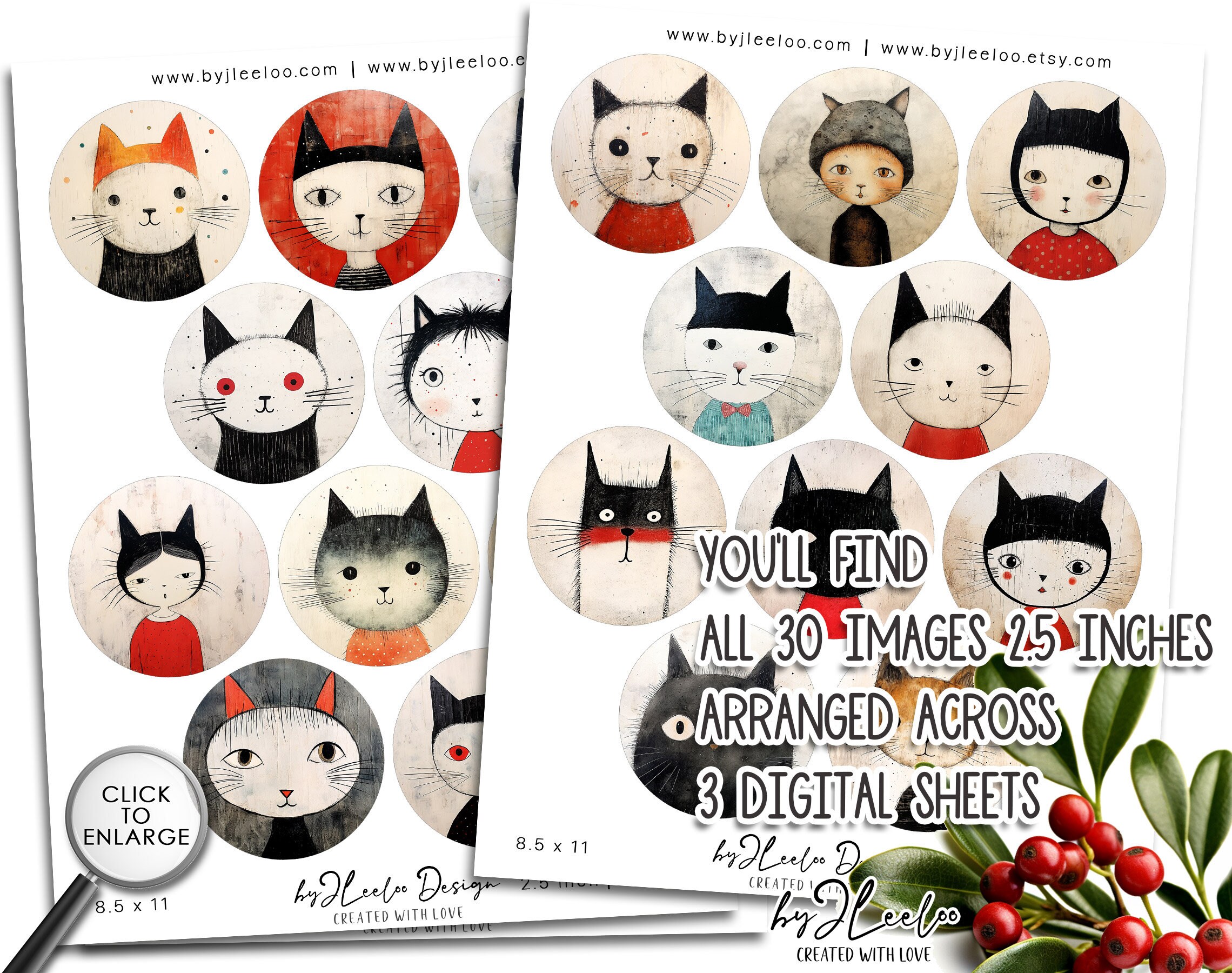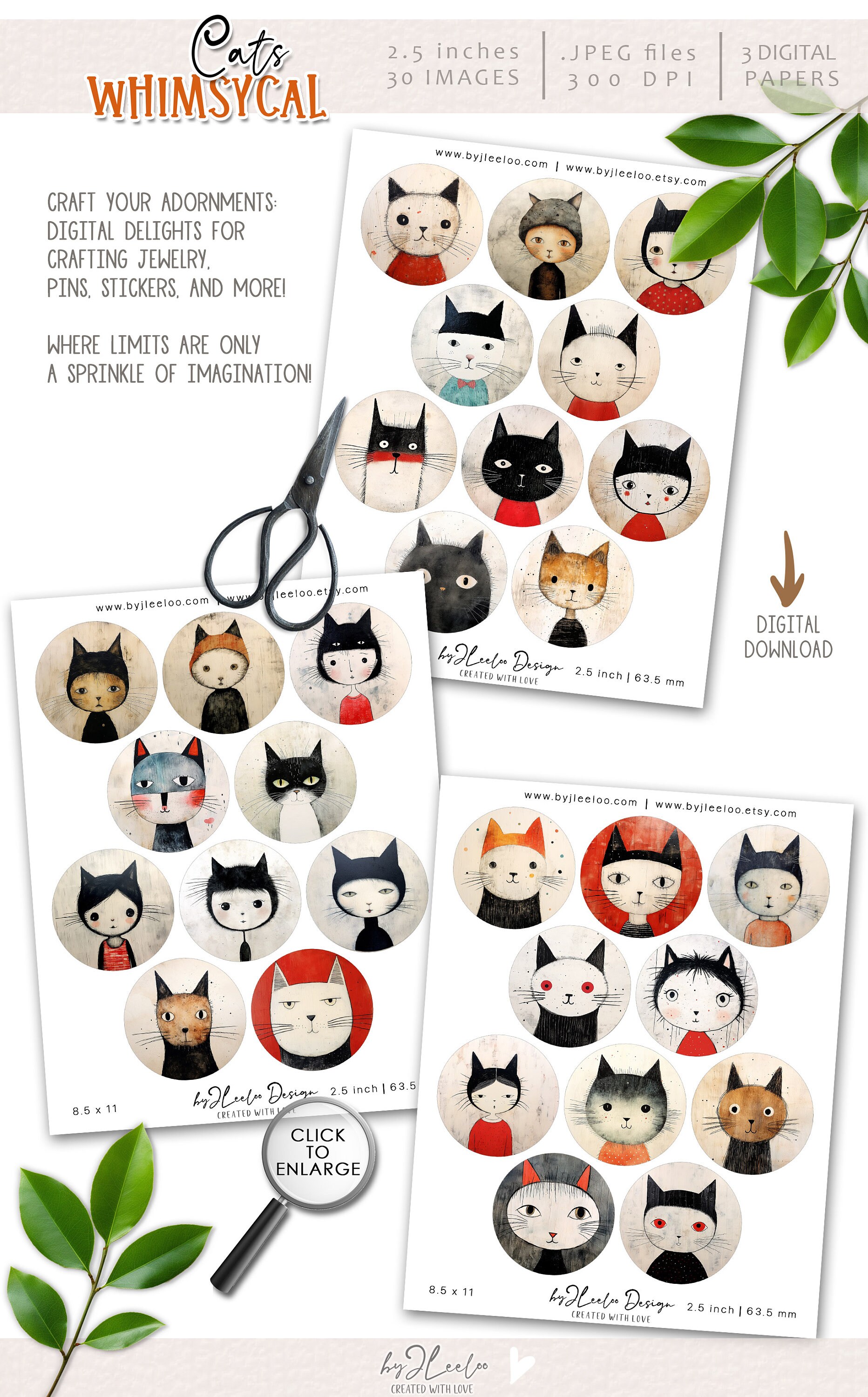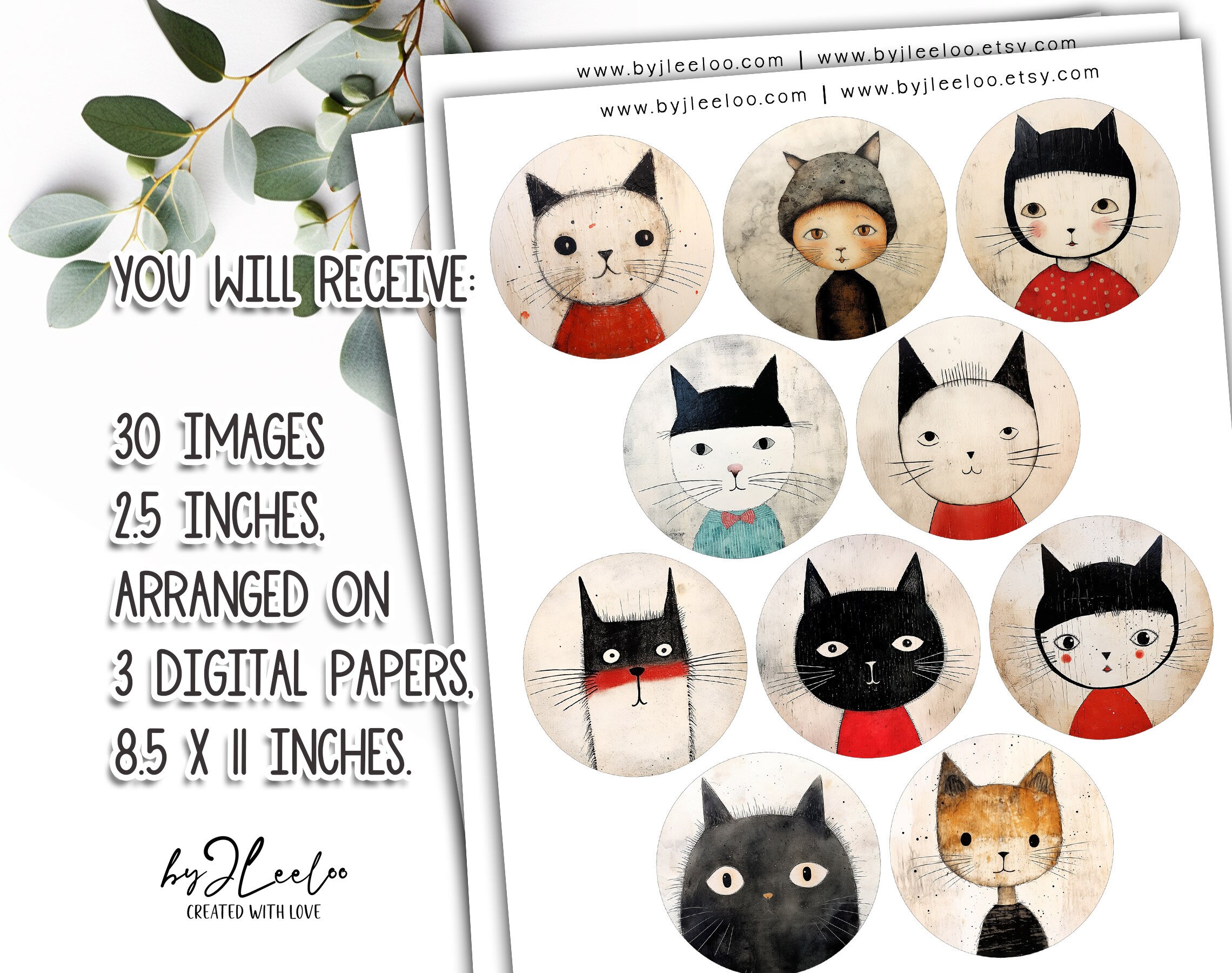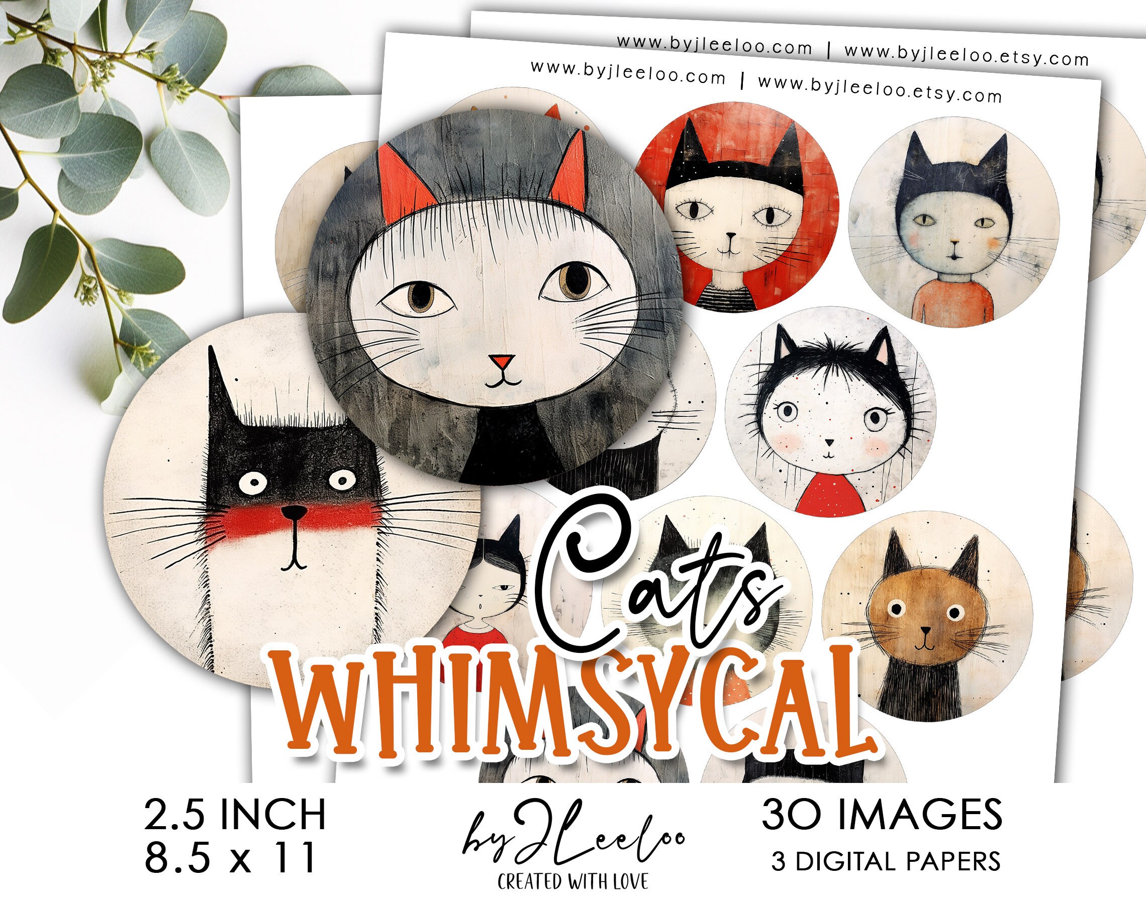 โพ Other sizes of these images here: https://www.etsy.com/shop/byJLeeloo?search_query=whimsical+cats