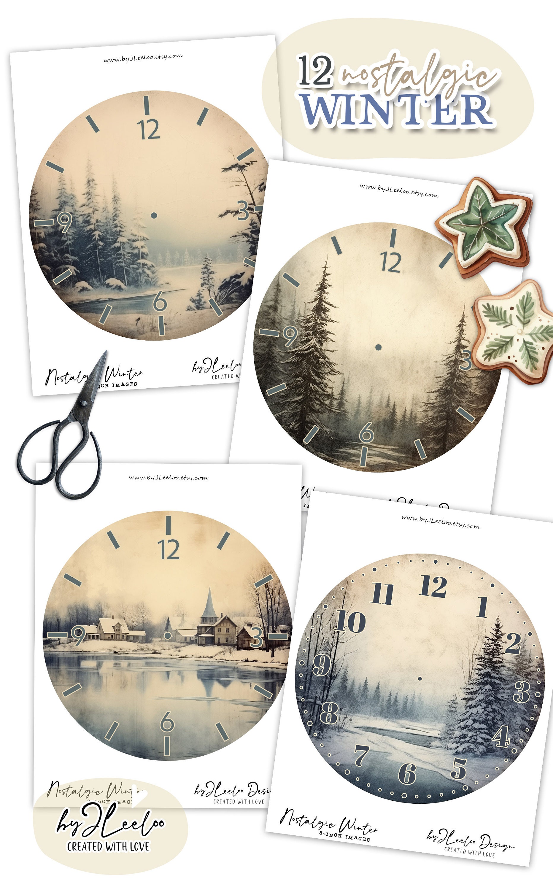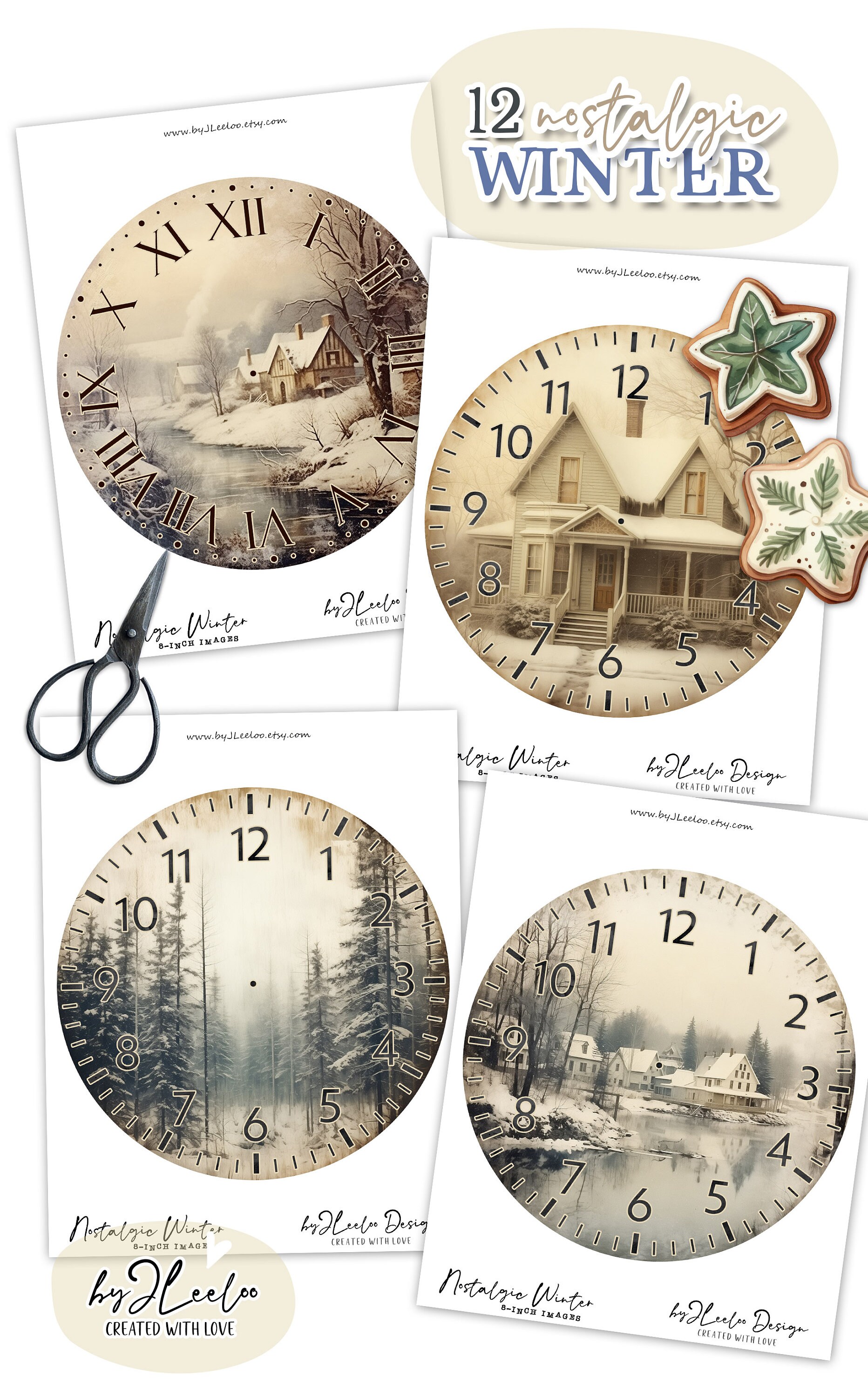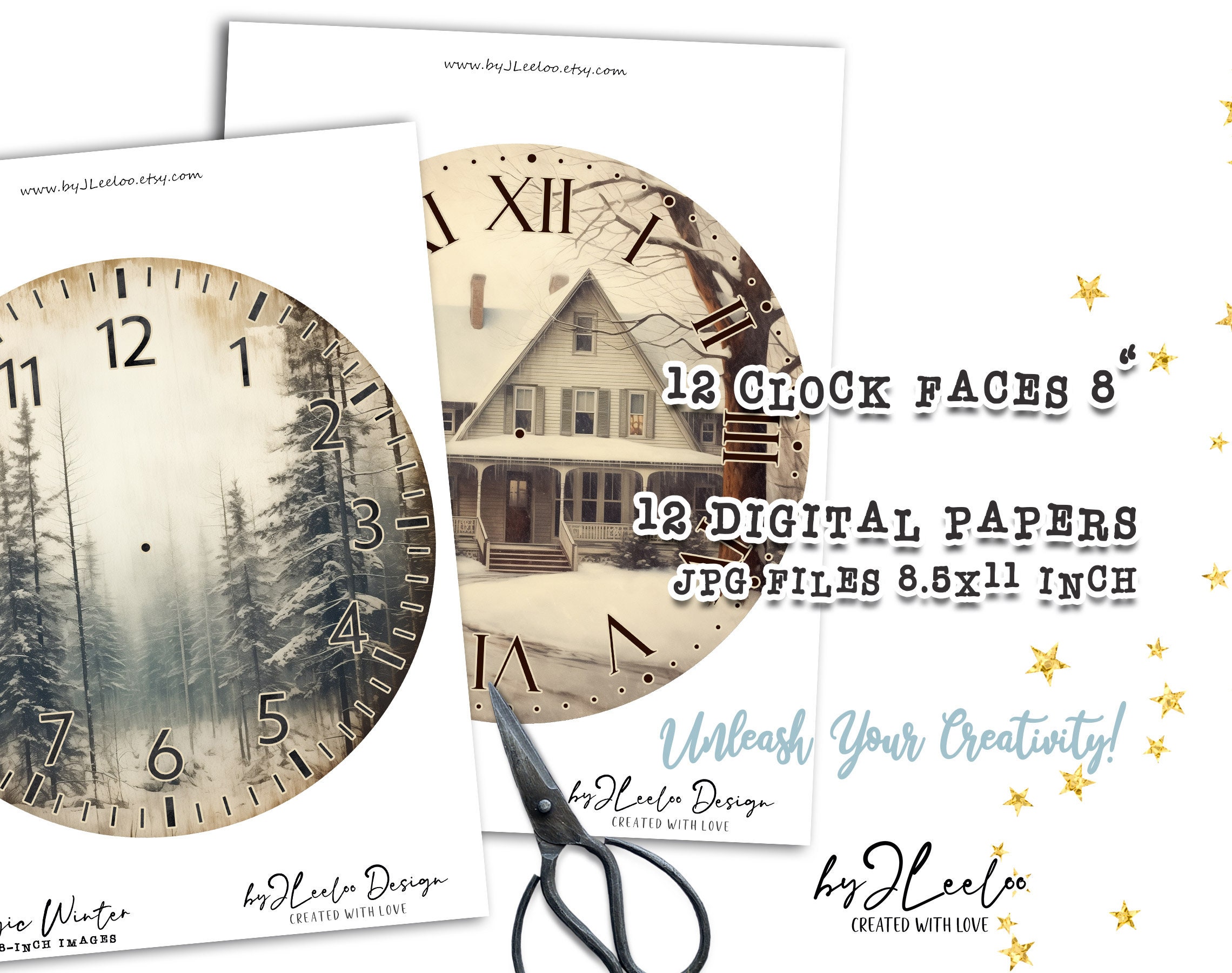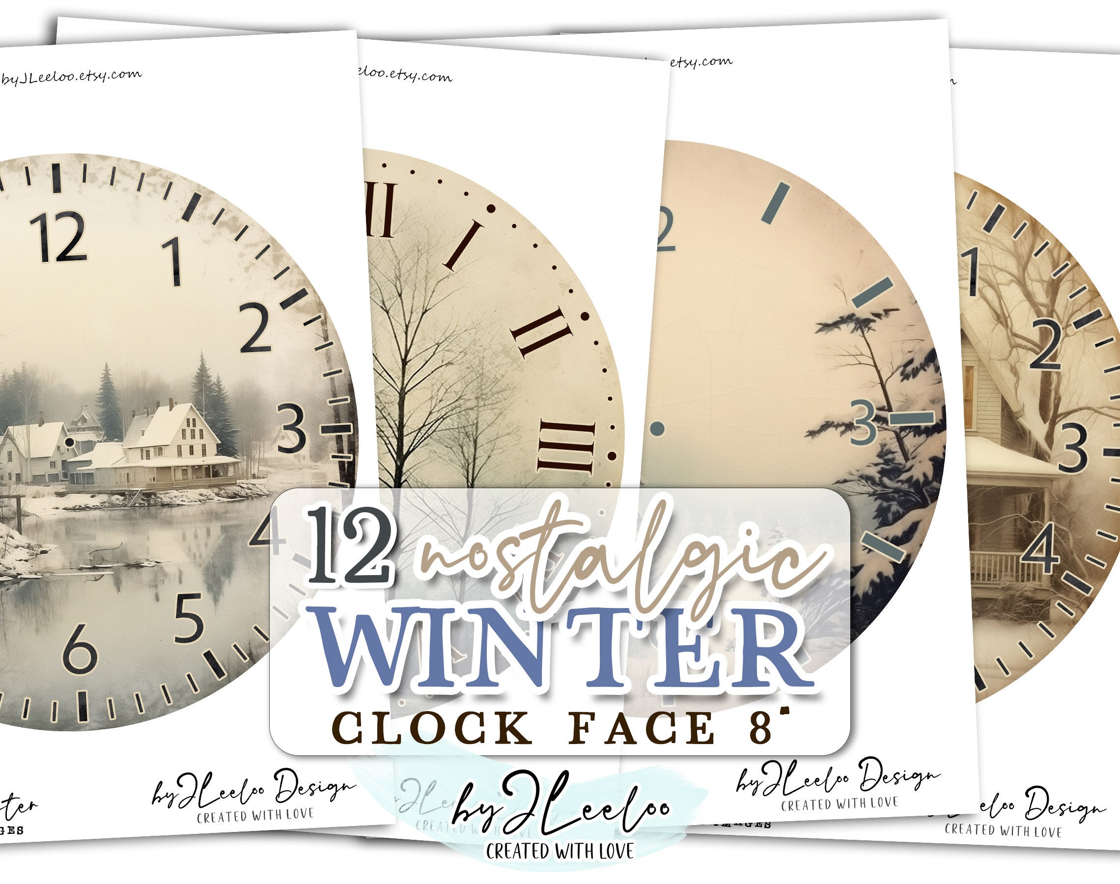 NOSTALGIC WINTER 8 inch circle printable clock face making | vintage home decor DIY project paper crafting, clock background watch | tn584