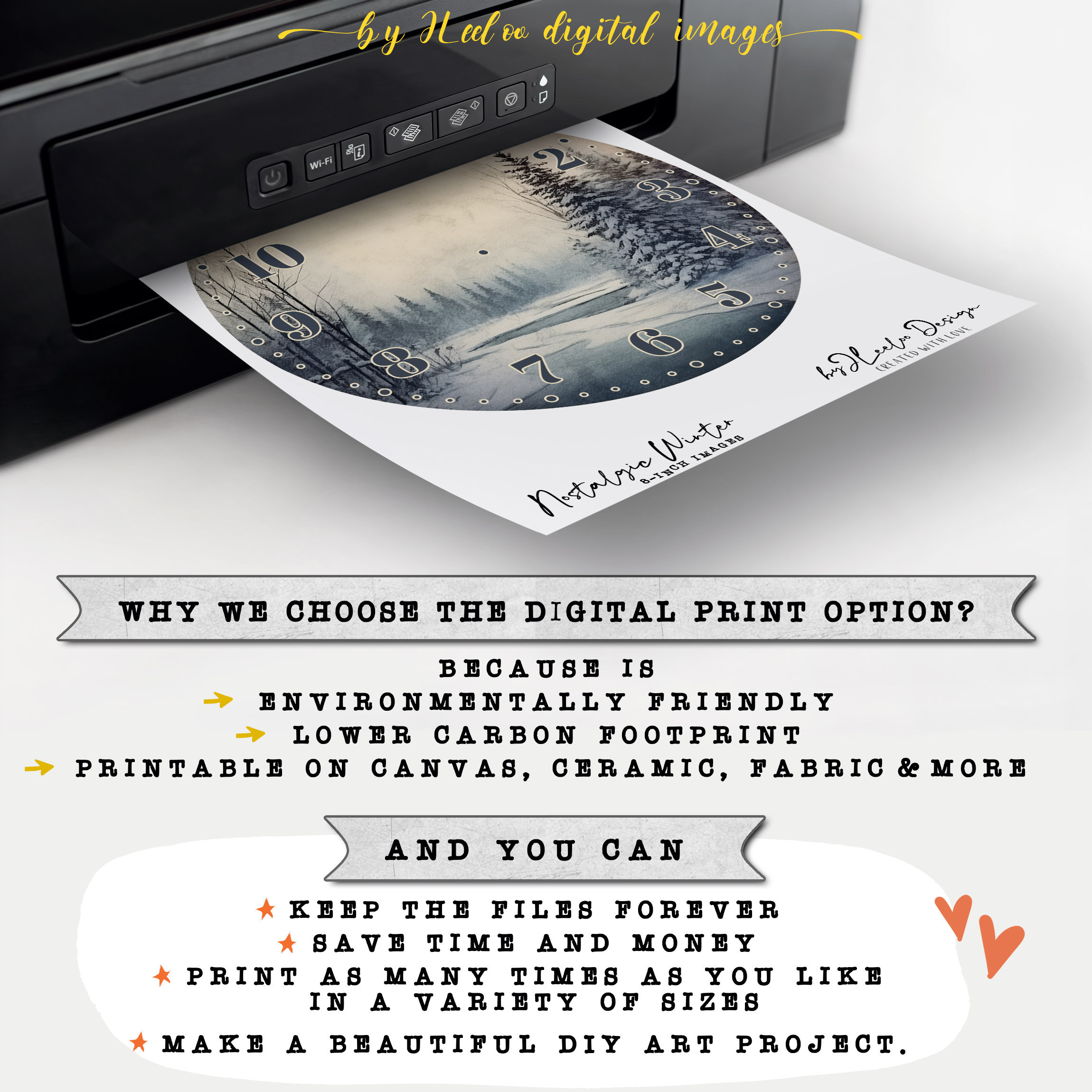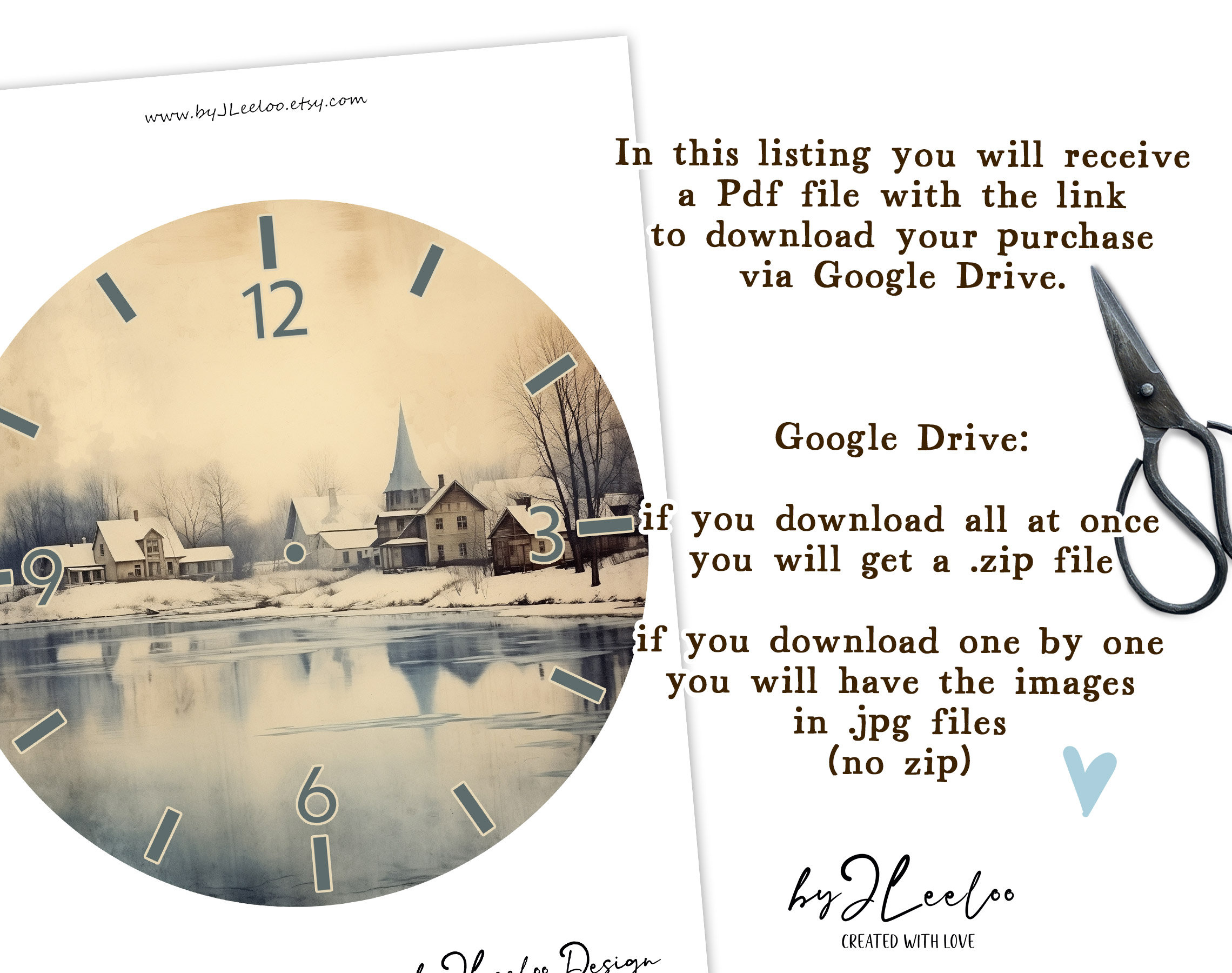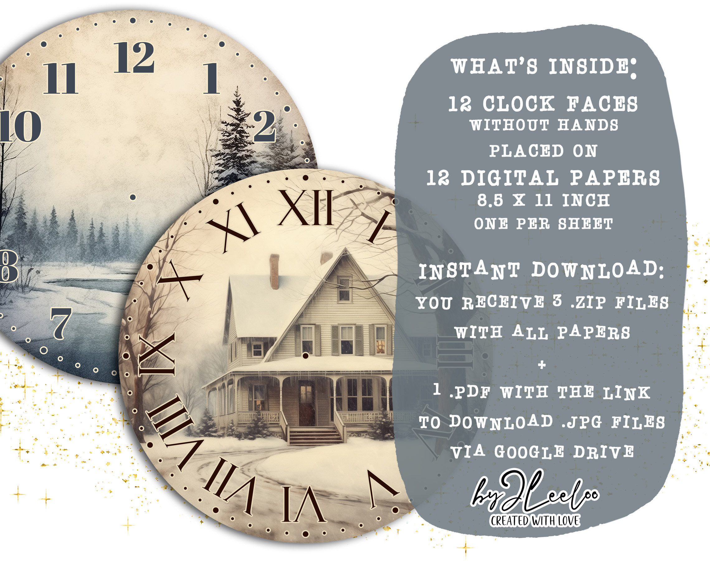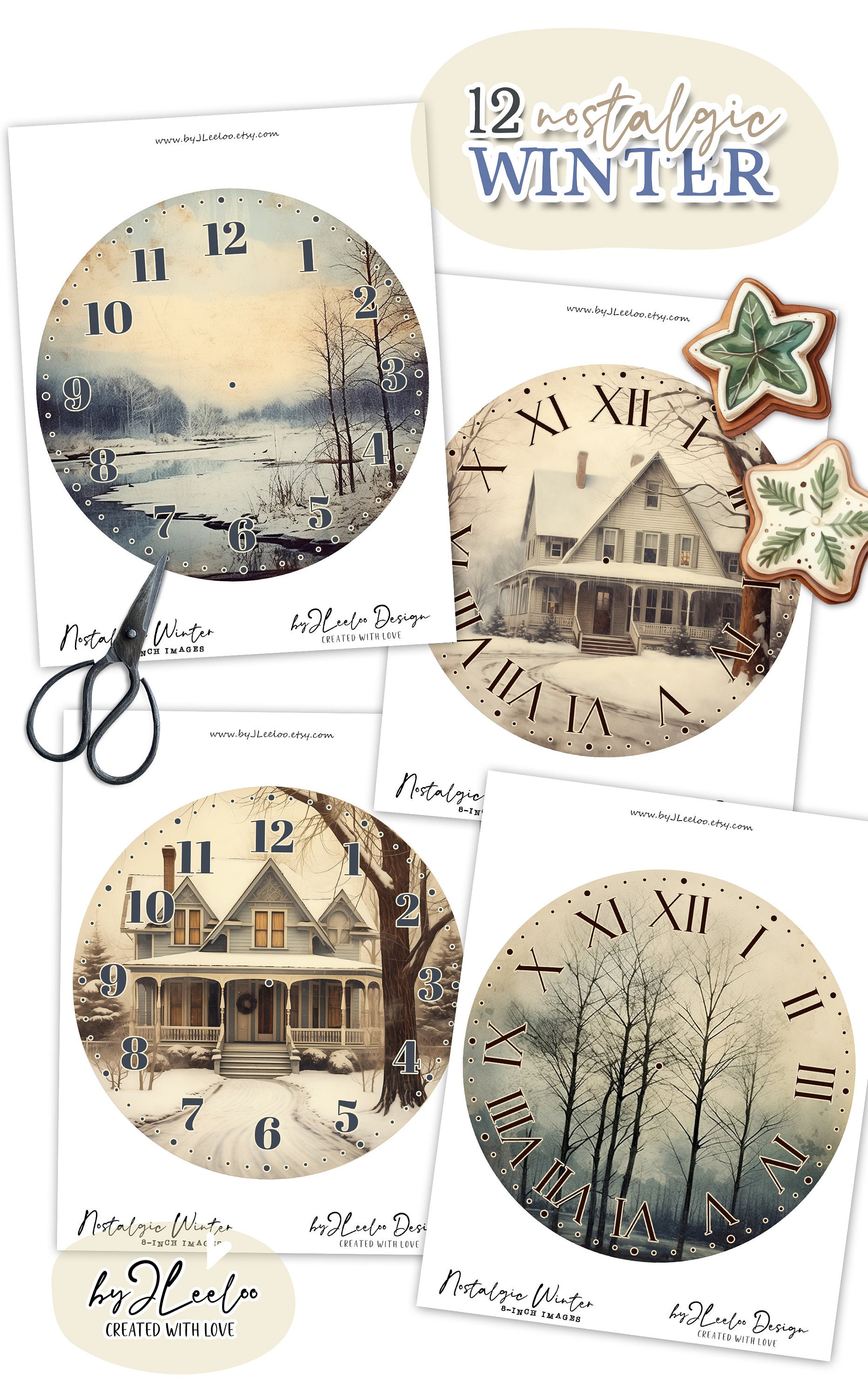 NOSTALGIC WINTER 8 inch circle printable clock face making | vintage home decor DIY project paper crafting, clock background watch | tn584