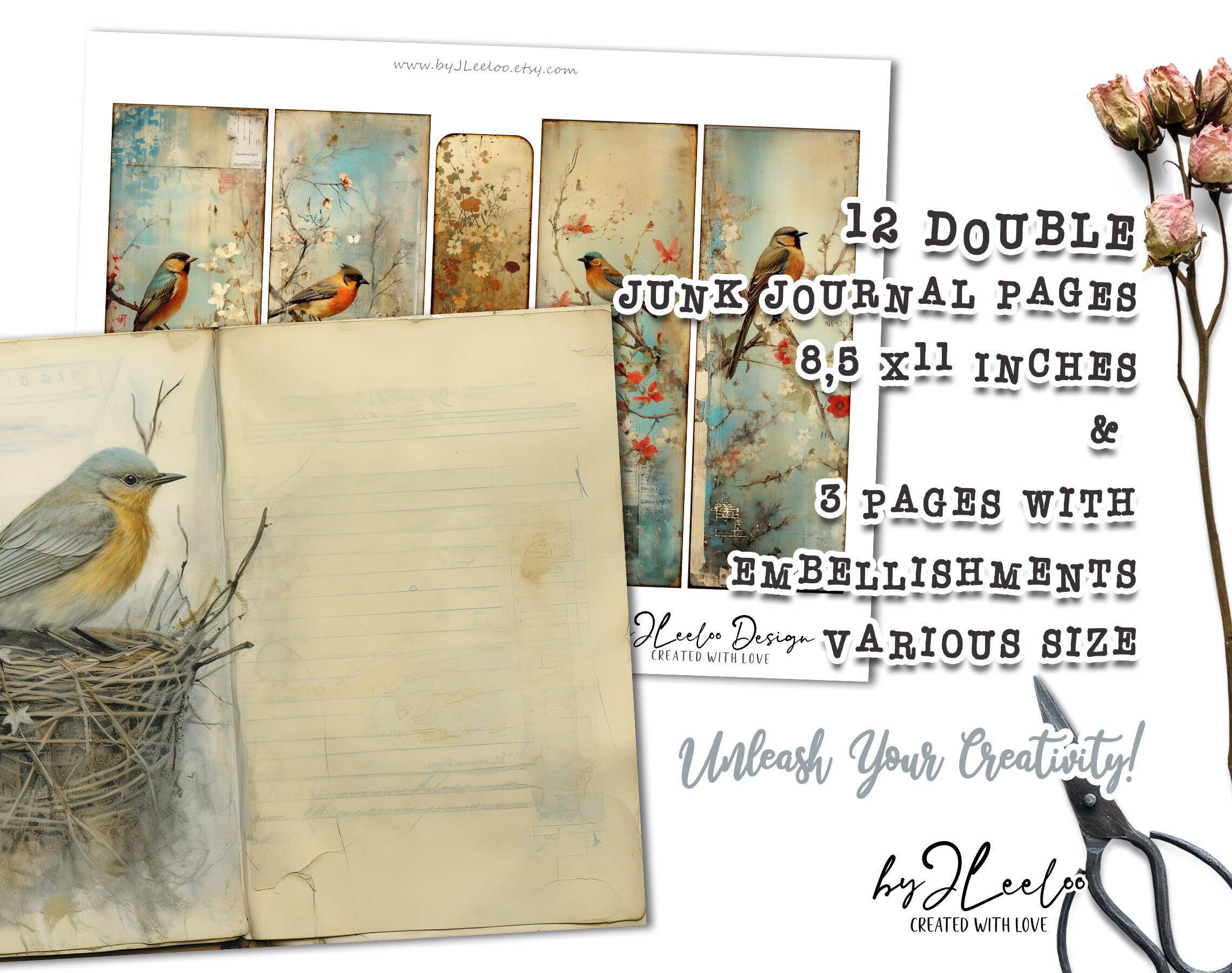 12 junk journal pages | double pages in 8,5 x 11 inch paper