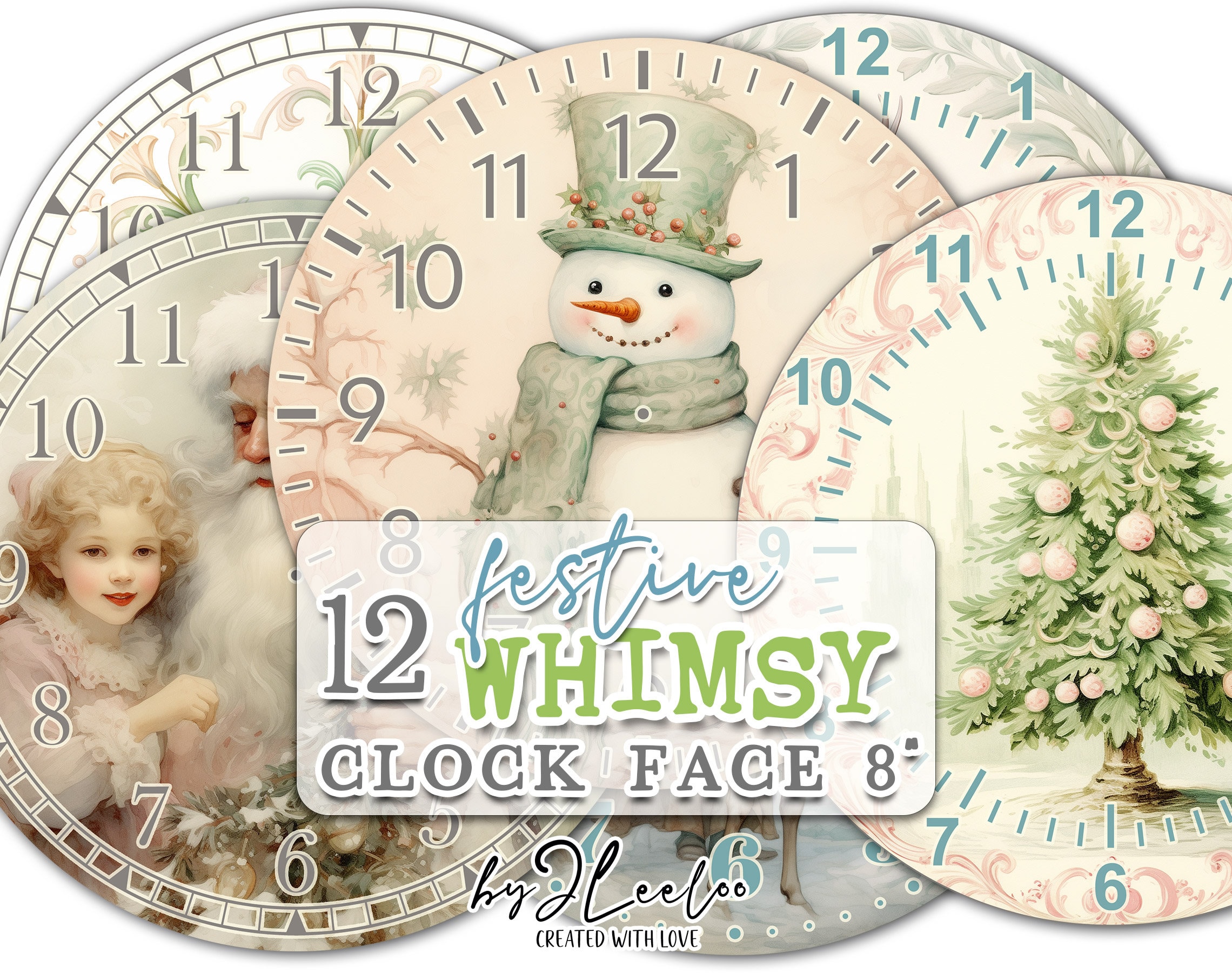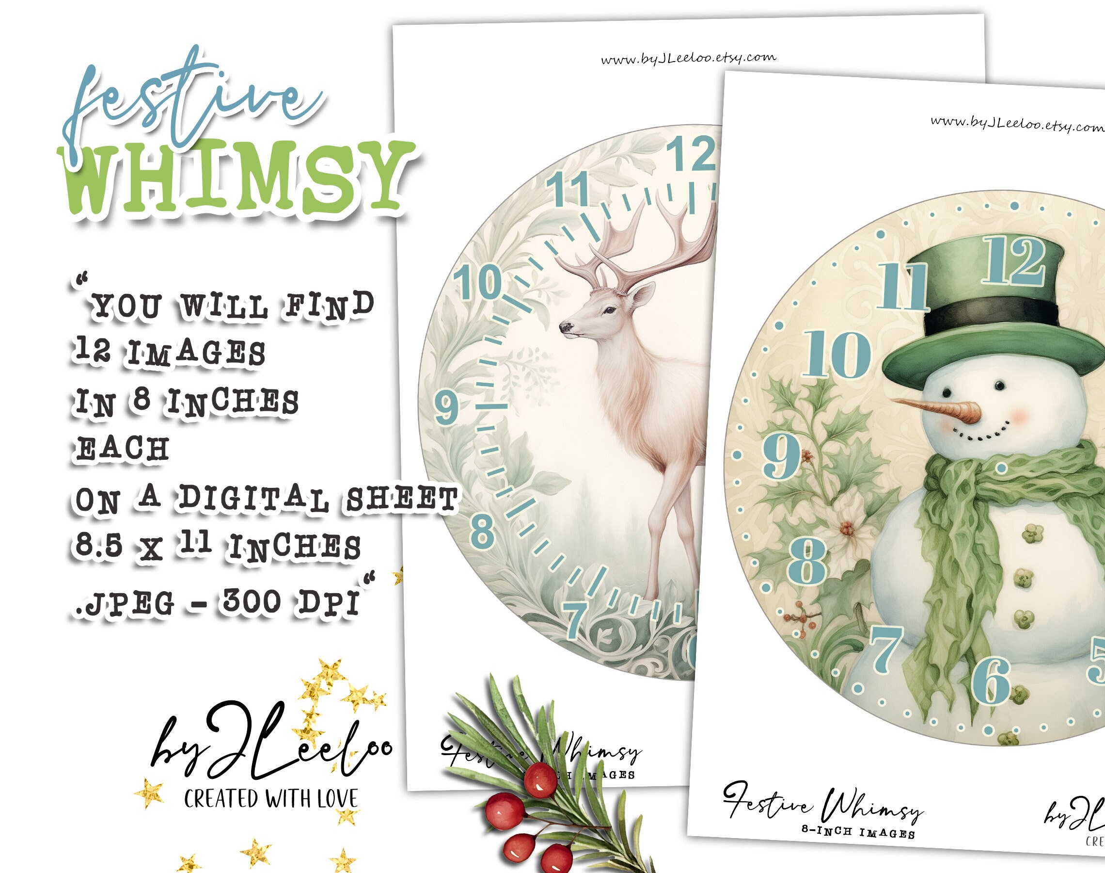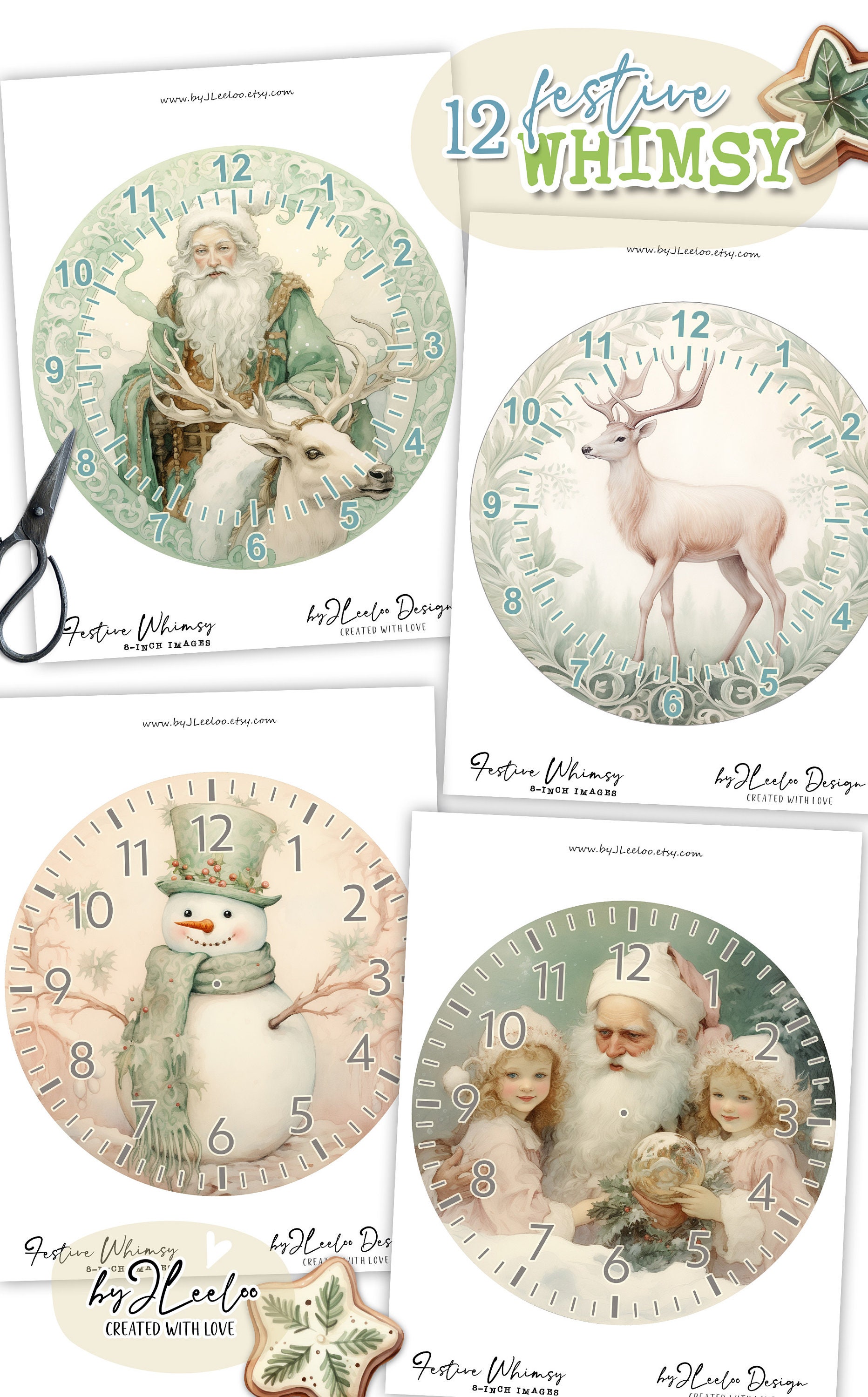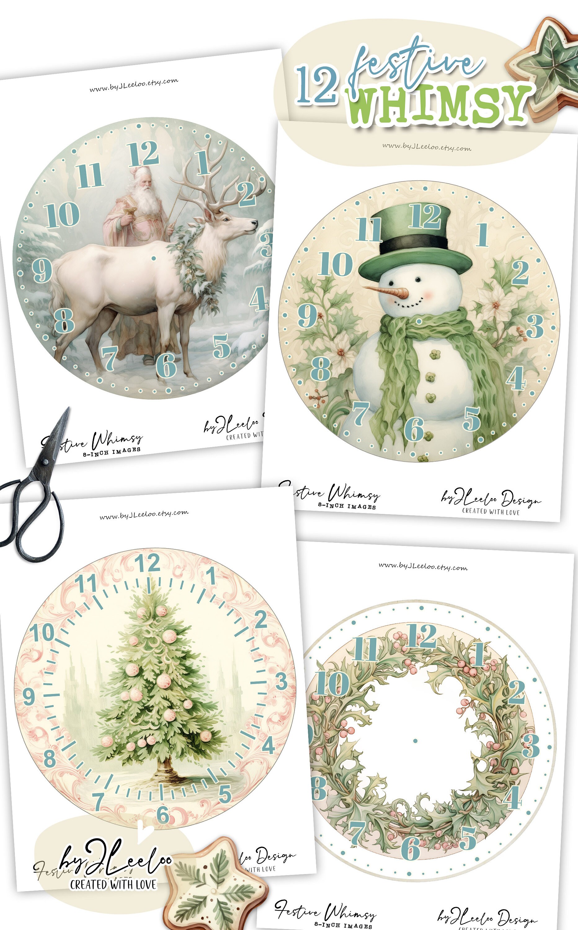 FESTIVE WHIMSY 8 inch circle printable clock face Christmas making | clock watch vintage home decor DIY project paper crafting | tn677