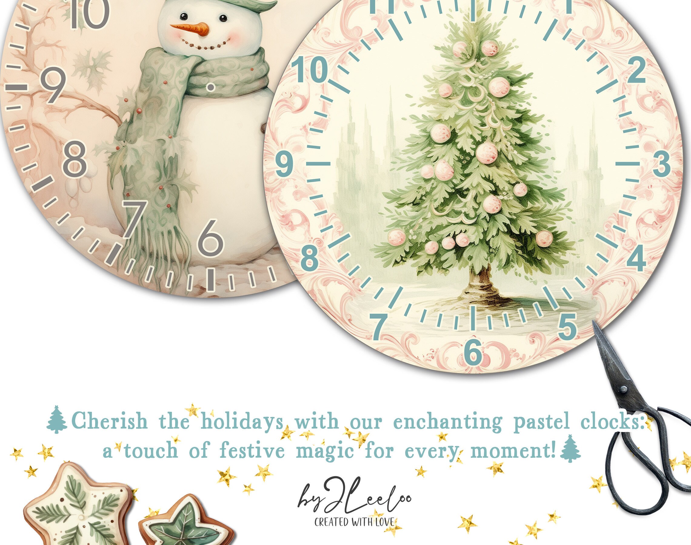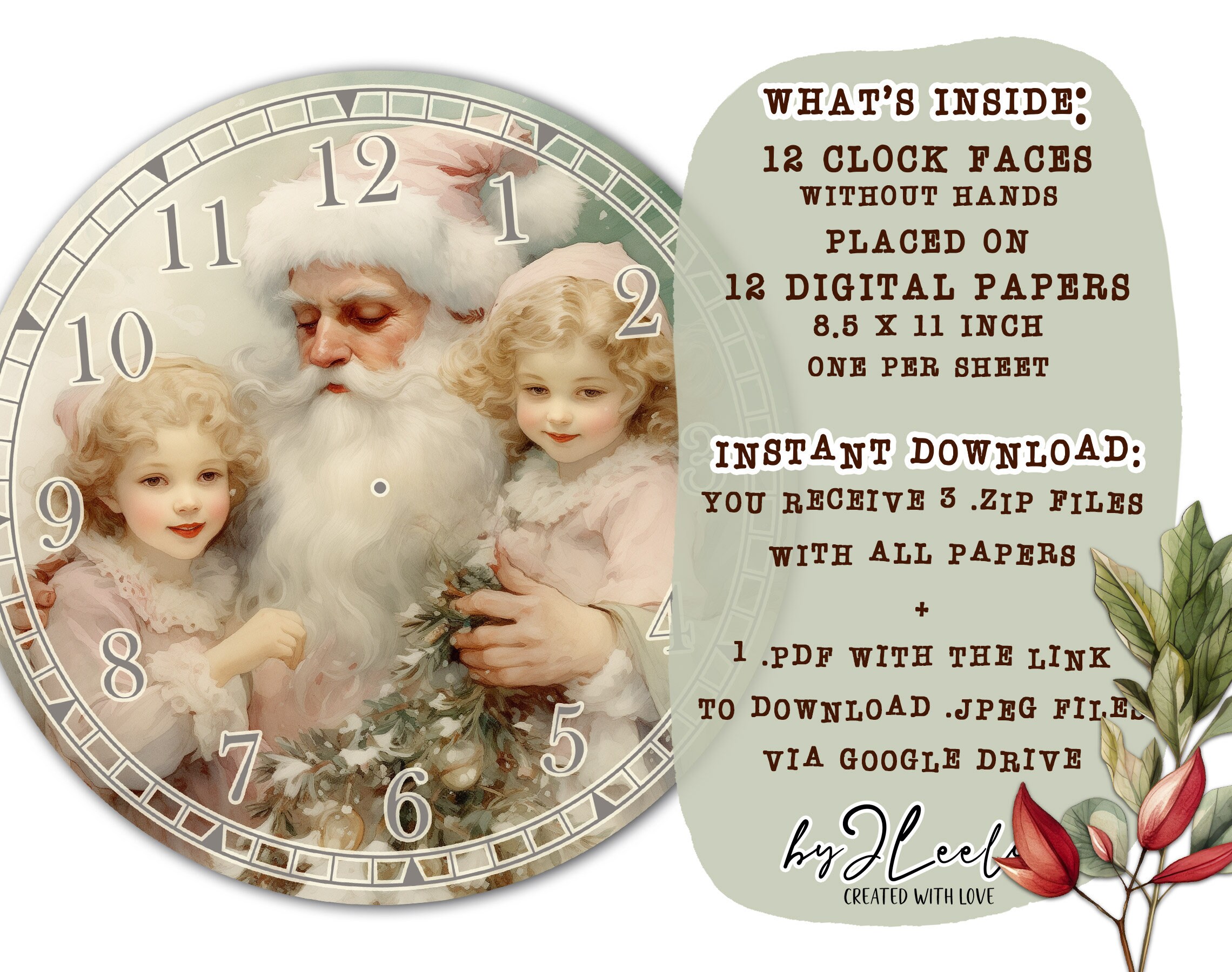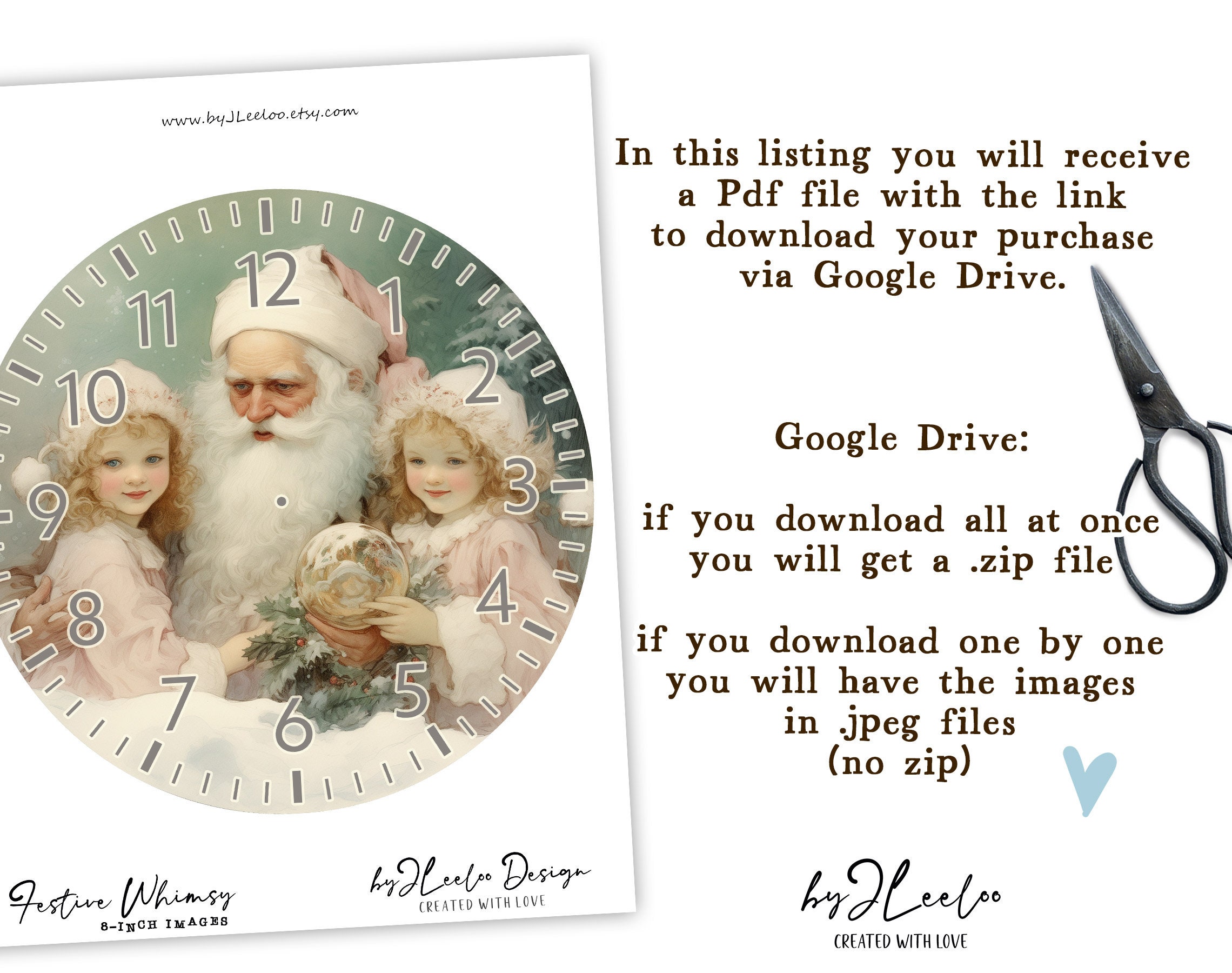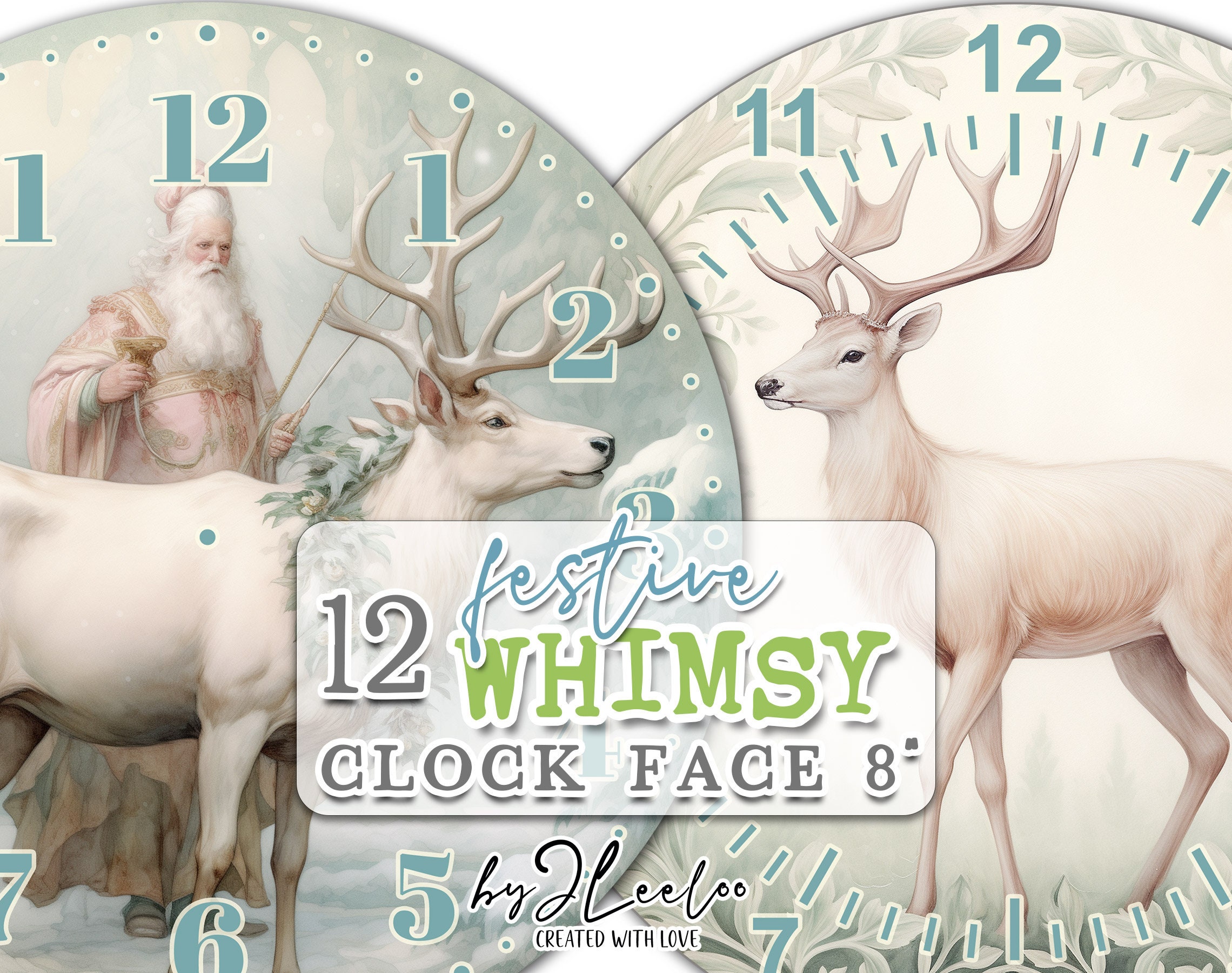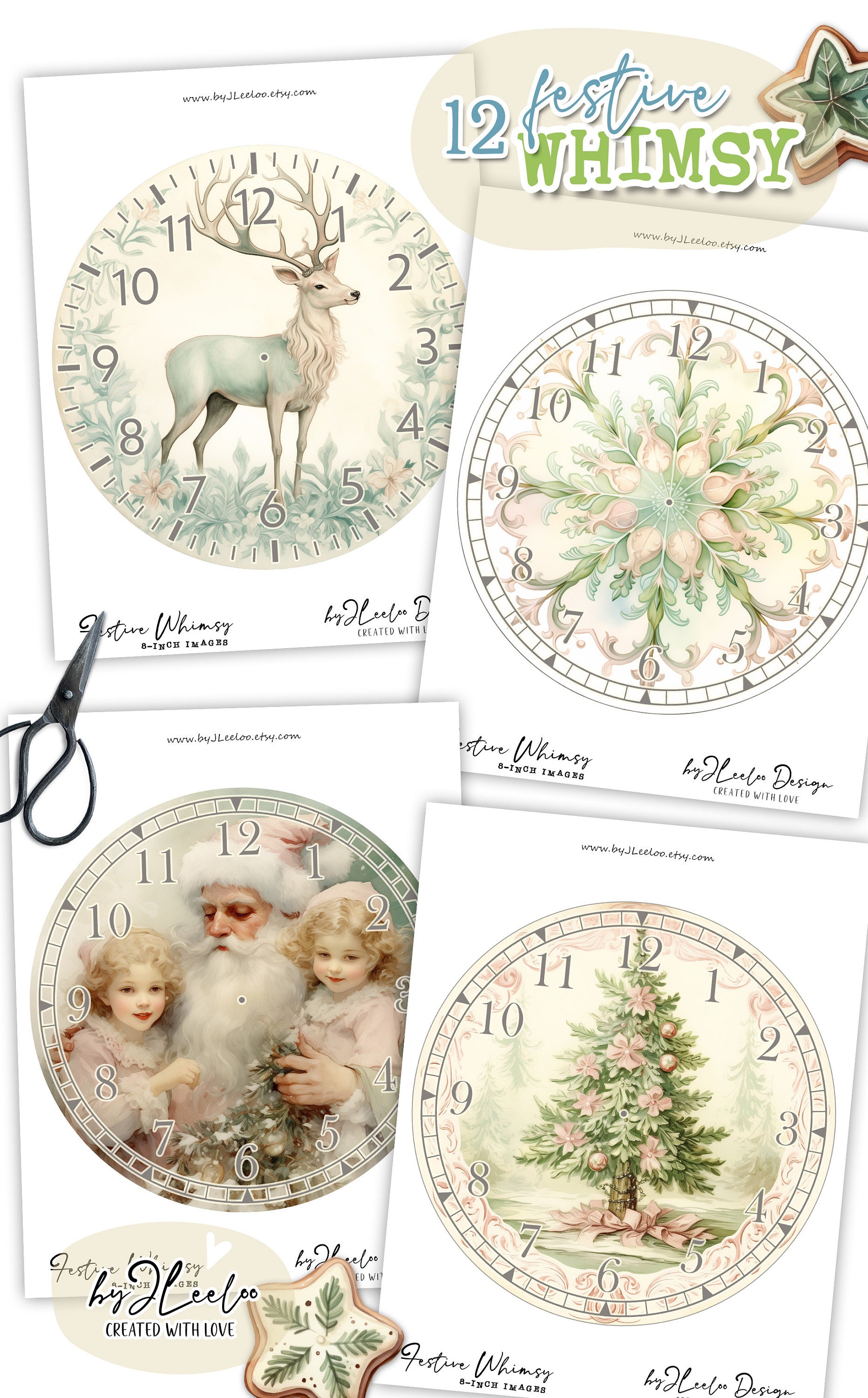 FESTIVE WHIMSY 8 inch circle printable clock face Christmas making | clock watch vintage home decor DIY project paper crafting | tn677