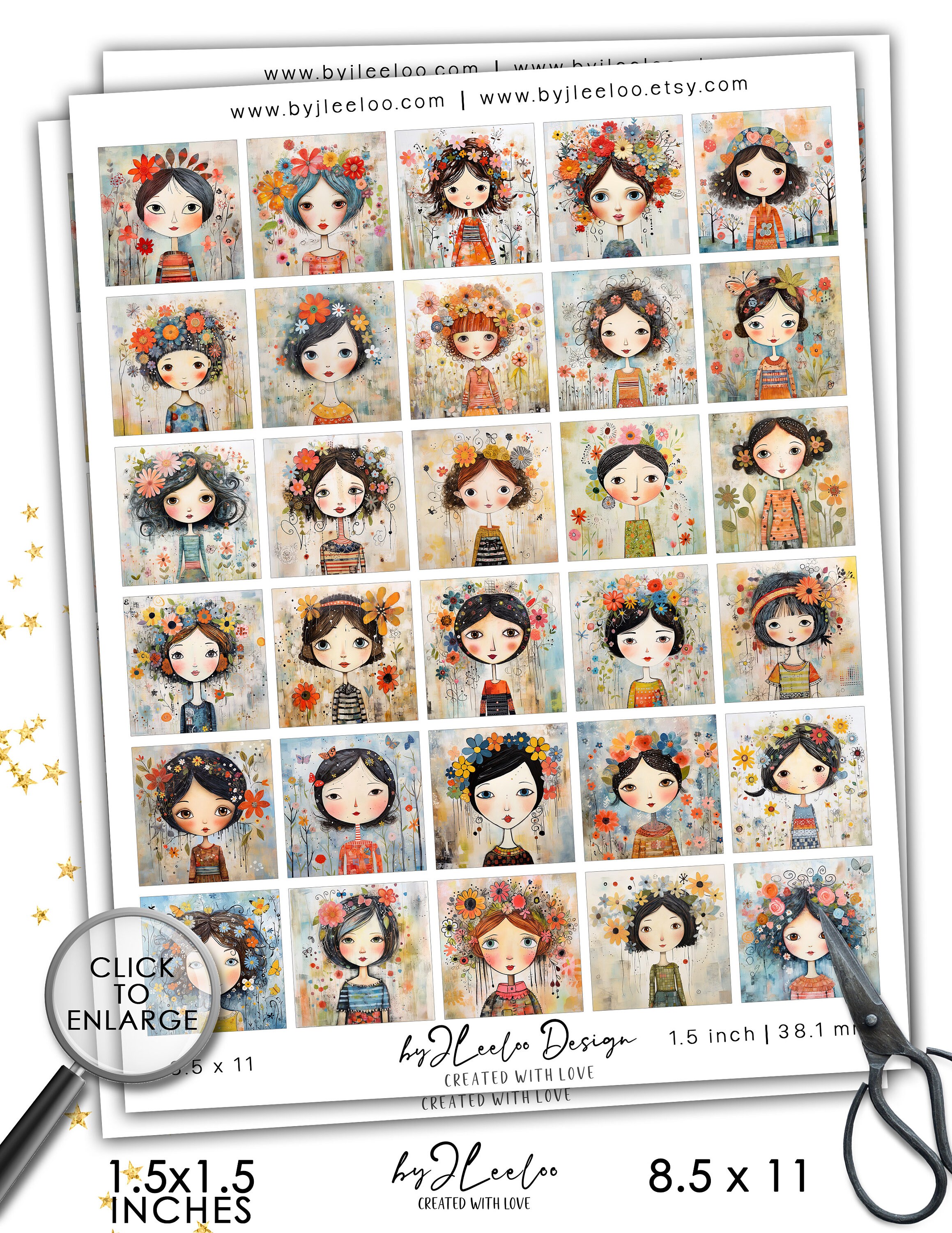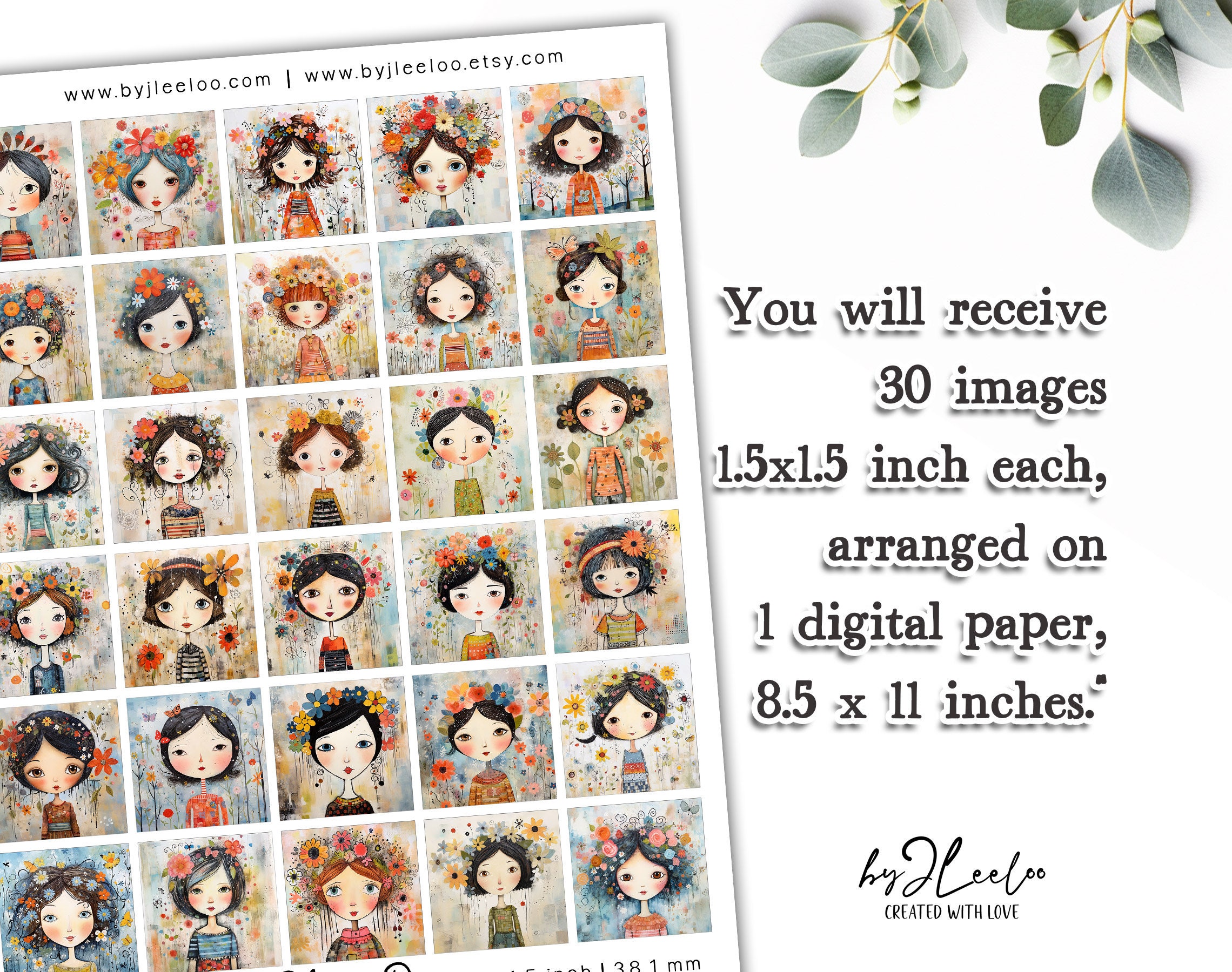 The sheet measures 8.5 x 11 inches and contains 30 charming illustrations of springtime girls. ๐ฆโจ