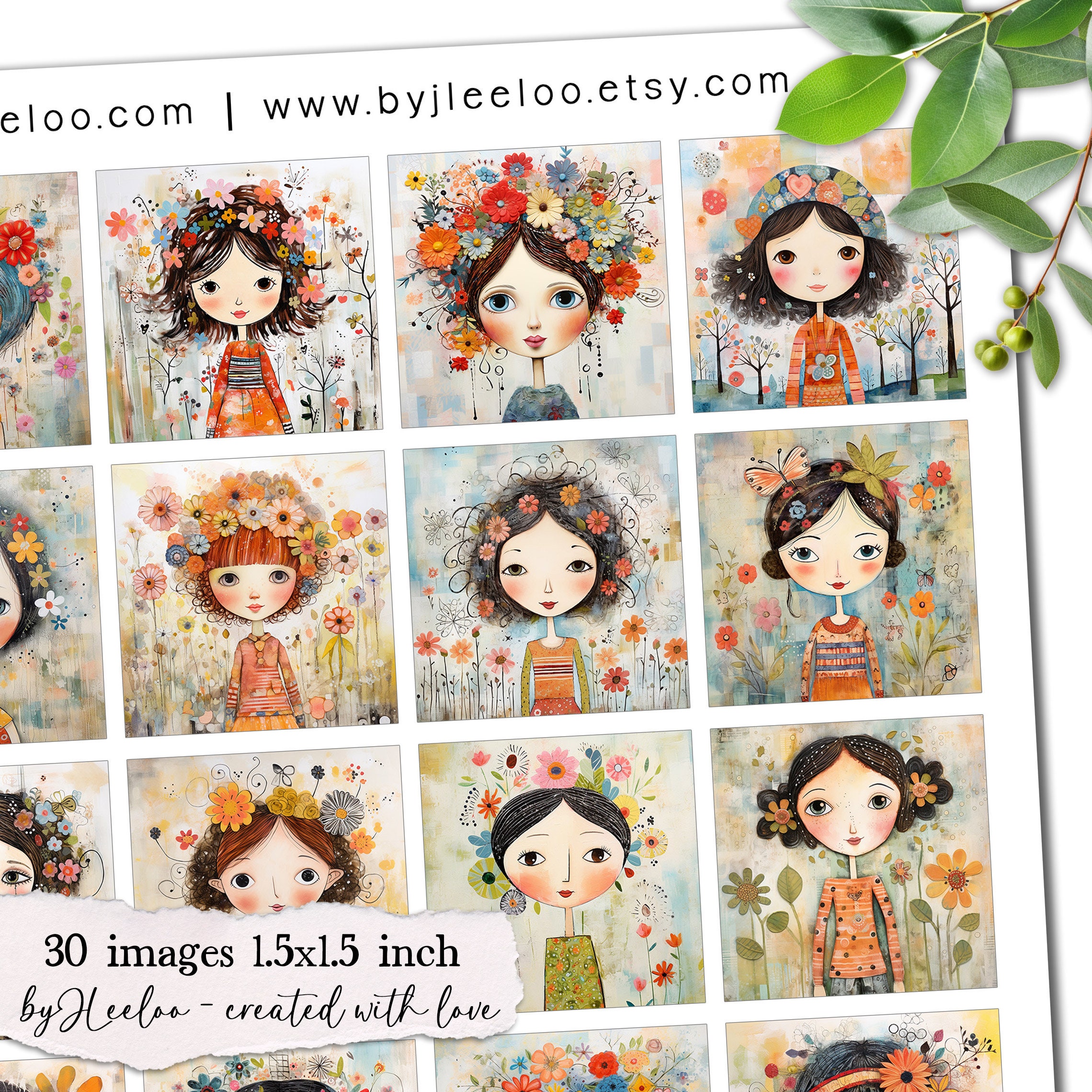 ๐ Charming folk illustrations for pendants, journals, scrapbooking, and pins โ adorable springtime girls in naive art style!