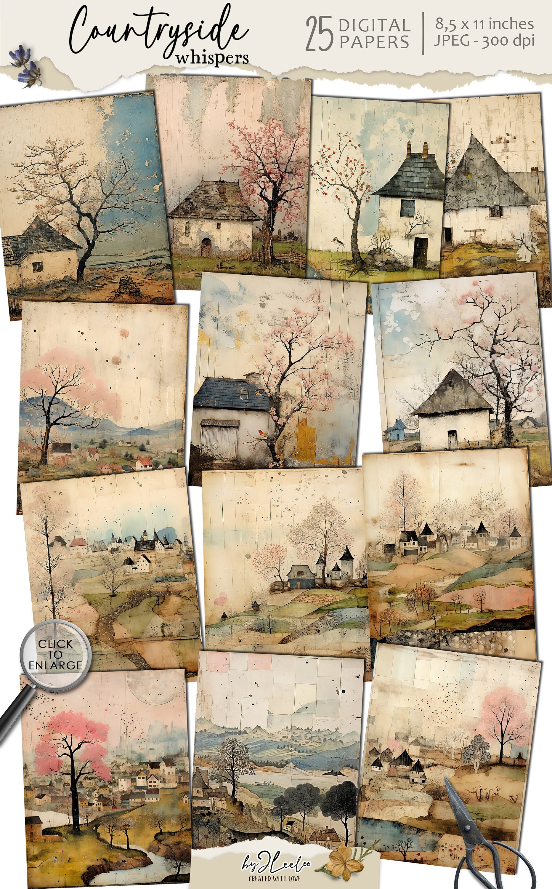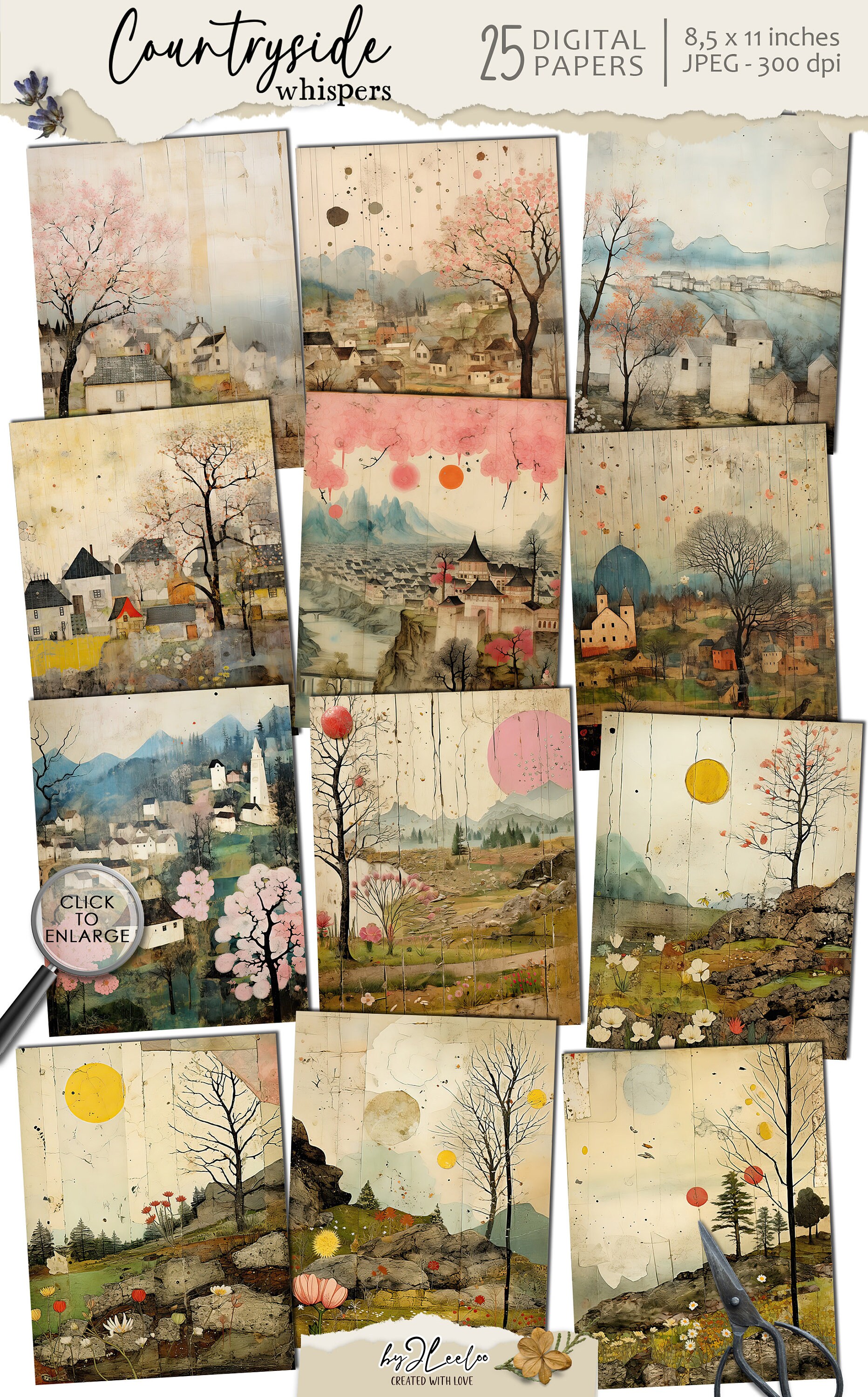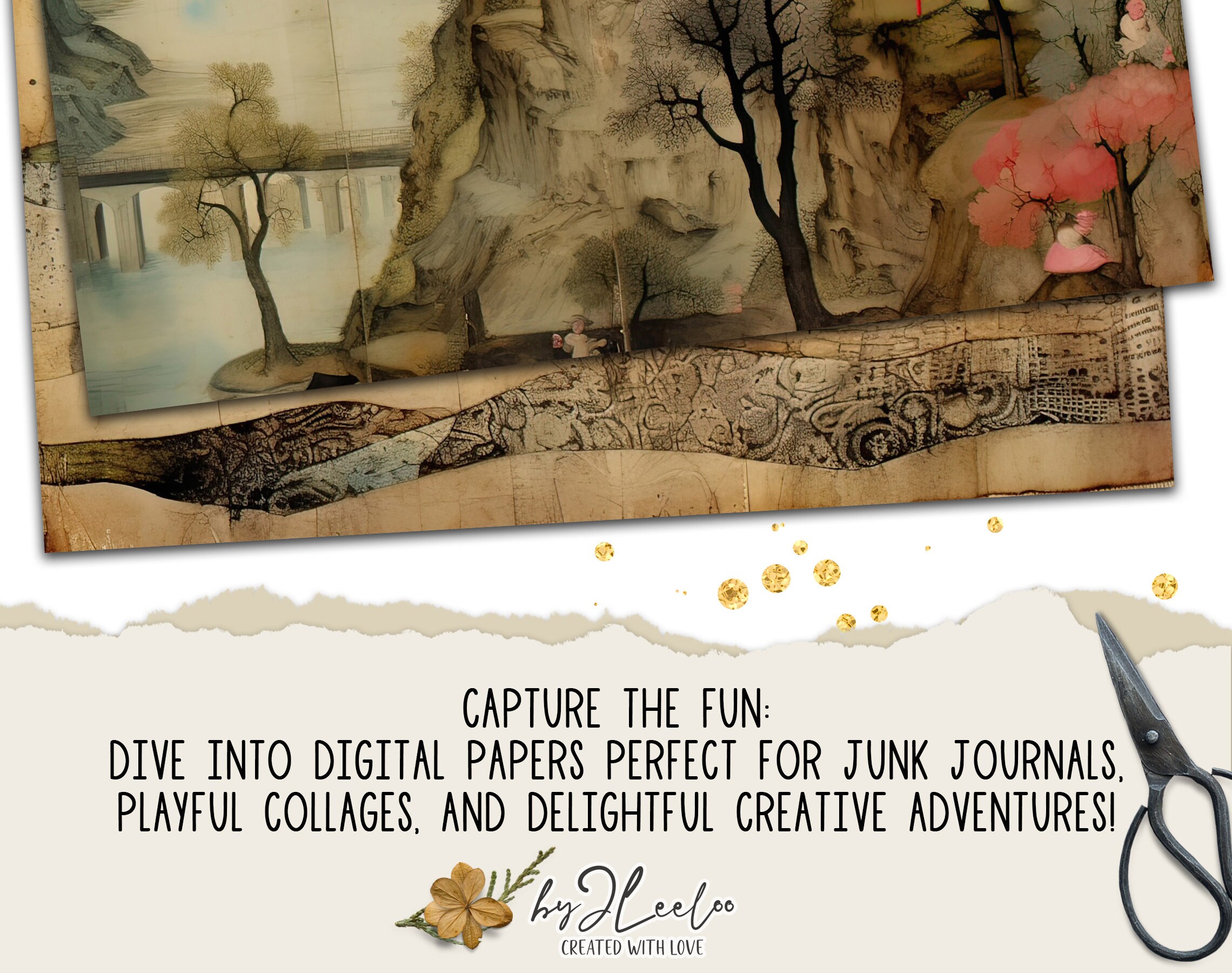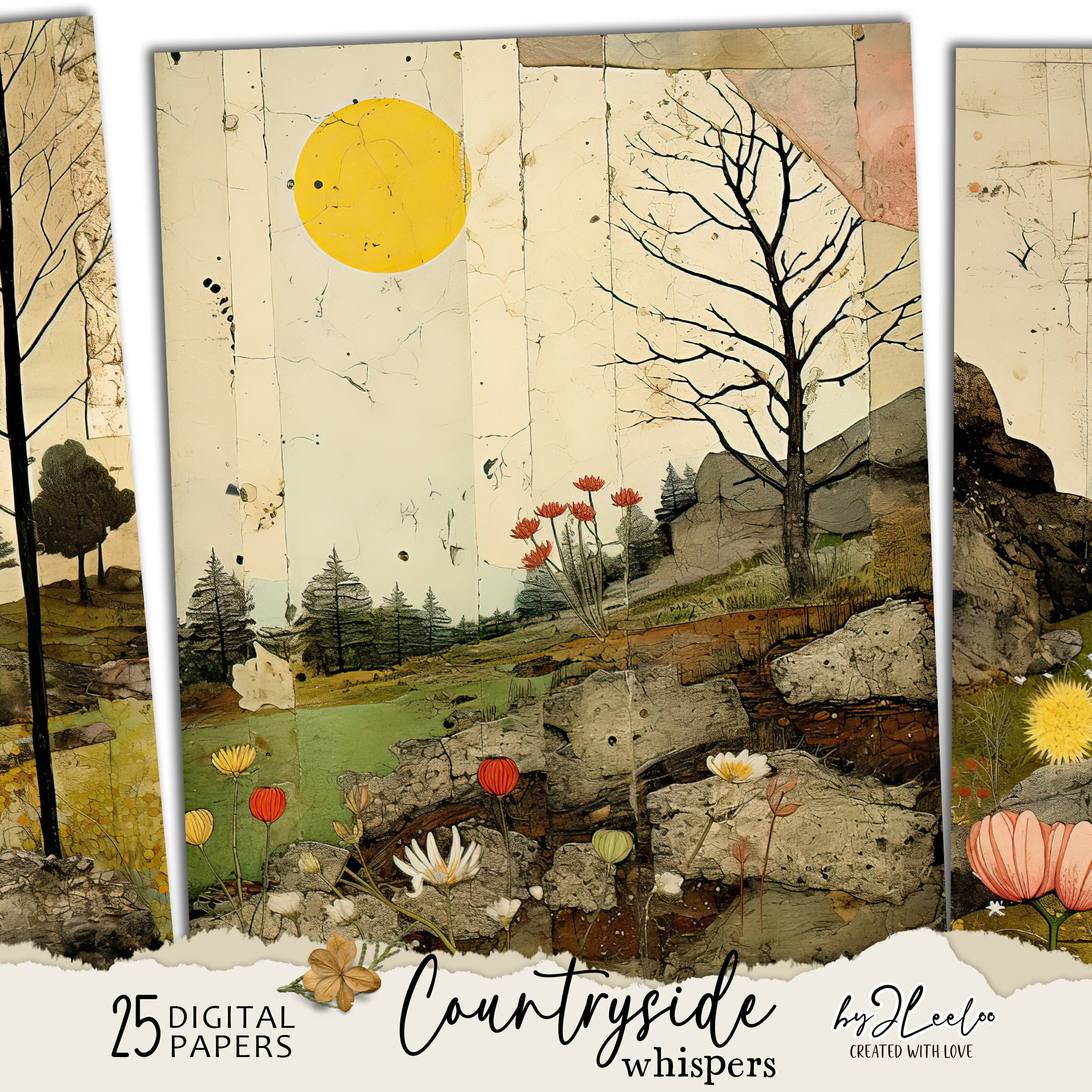 COUNTRYSIDE WHISPERS vintage papers | Landscape Junk Journal pages background Distressed grunge card making collage digital ephemera | pp688