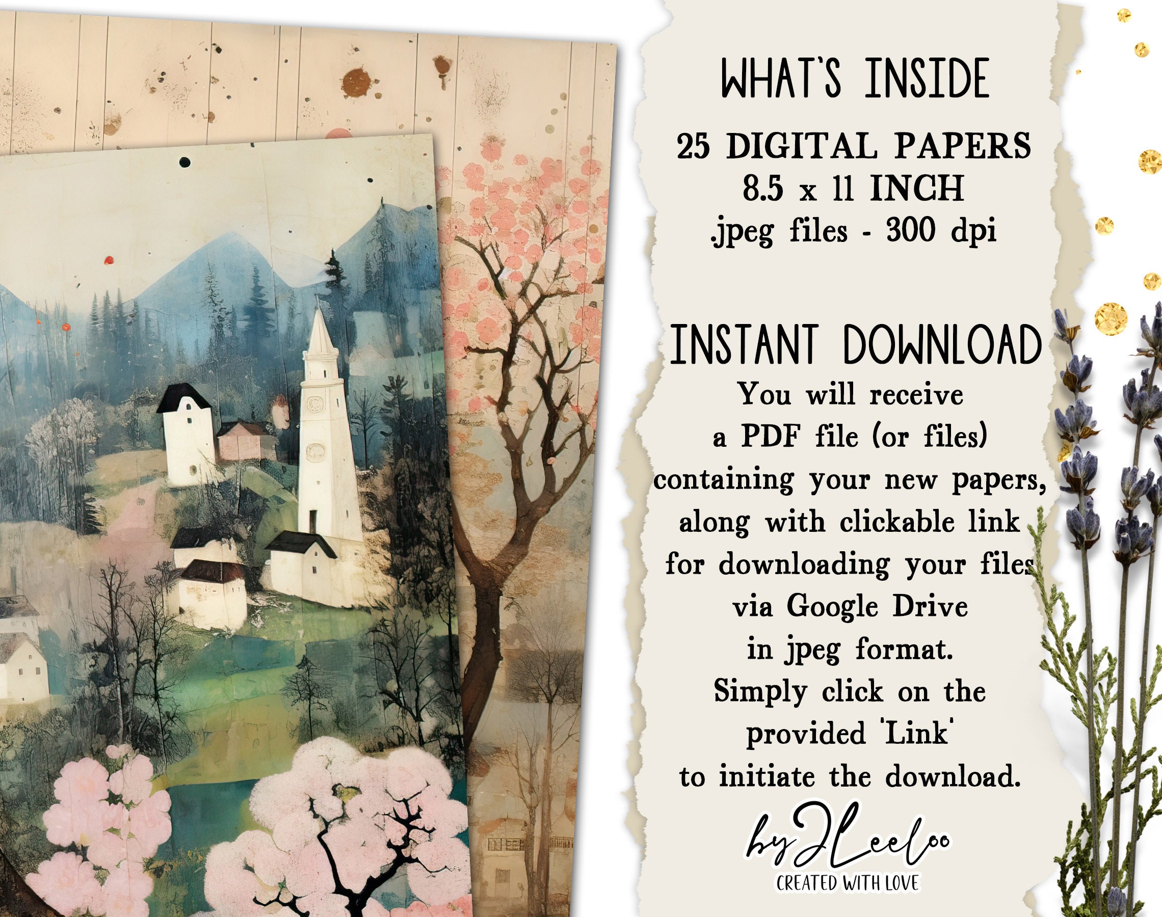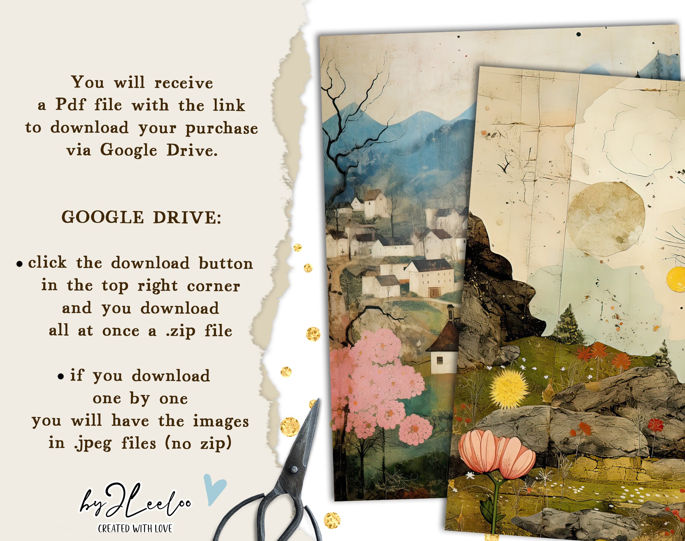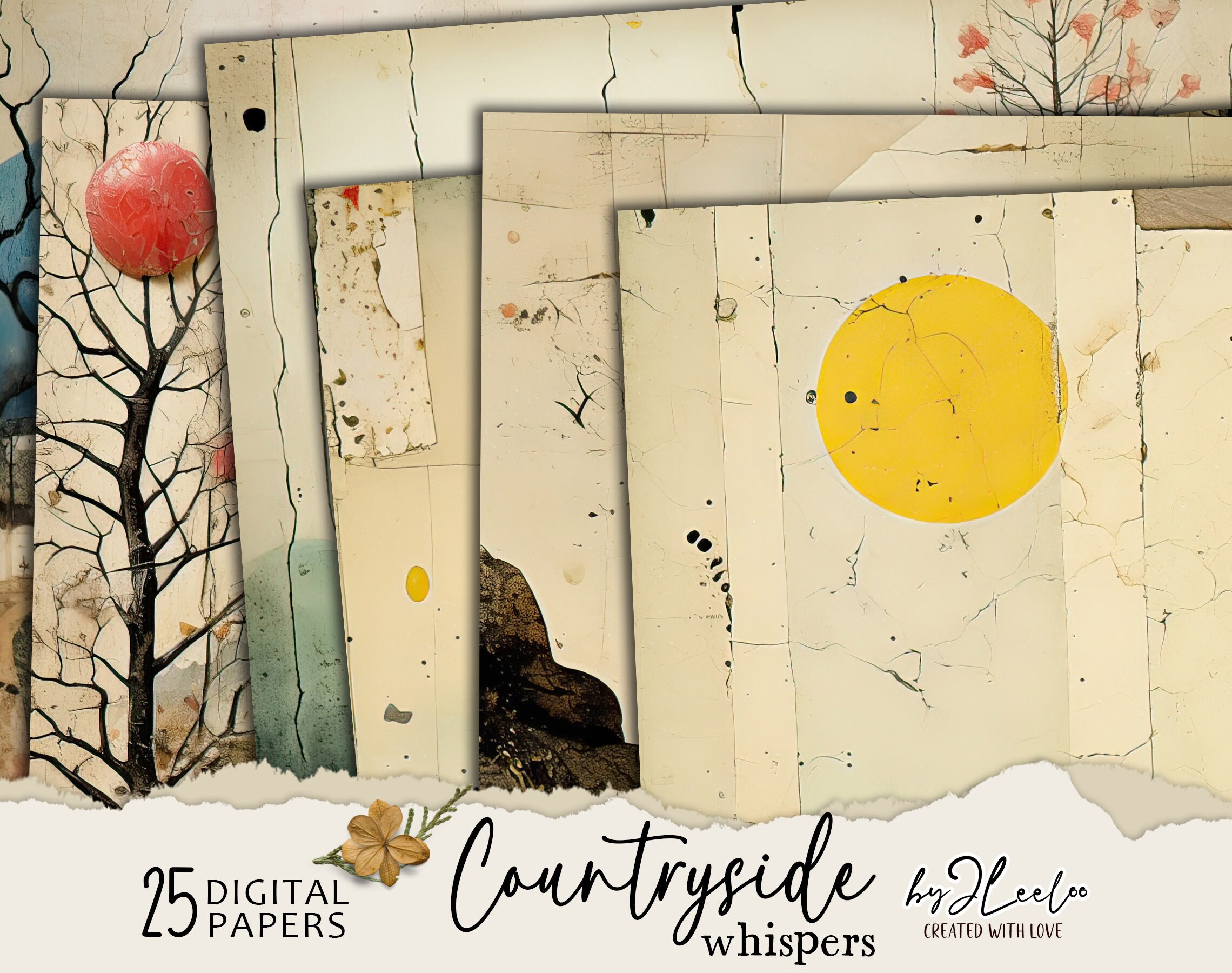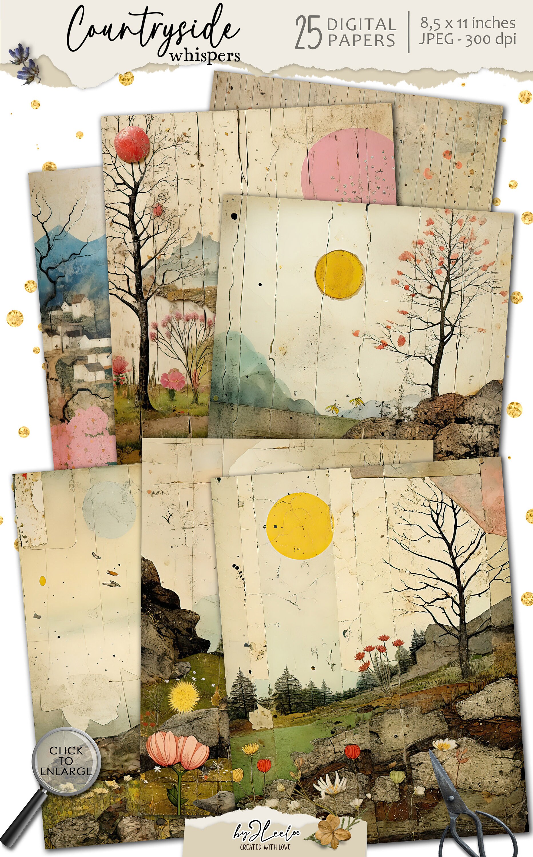 COUNTRYSIDE WHISPERS vintage papers | Landscape Junk Journal pages background Distressed grunge card making collage digital ephemera | pp688