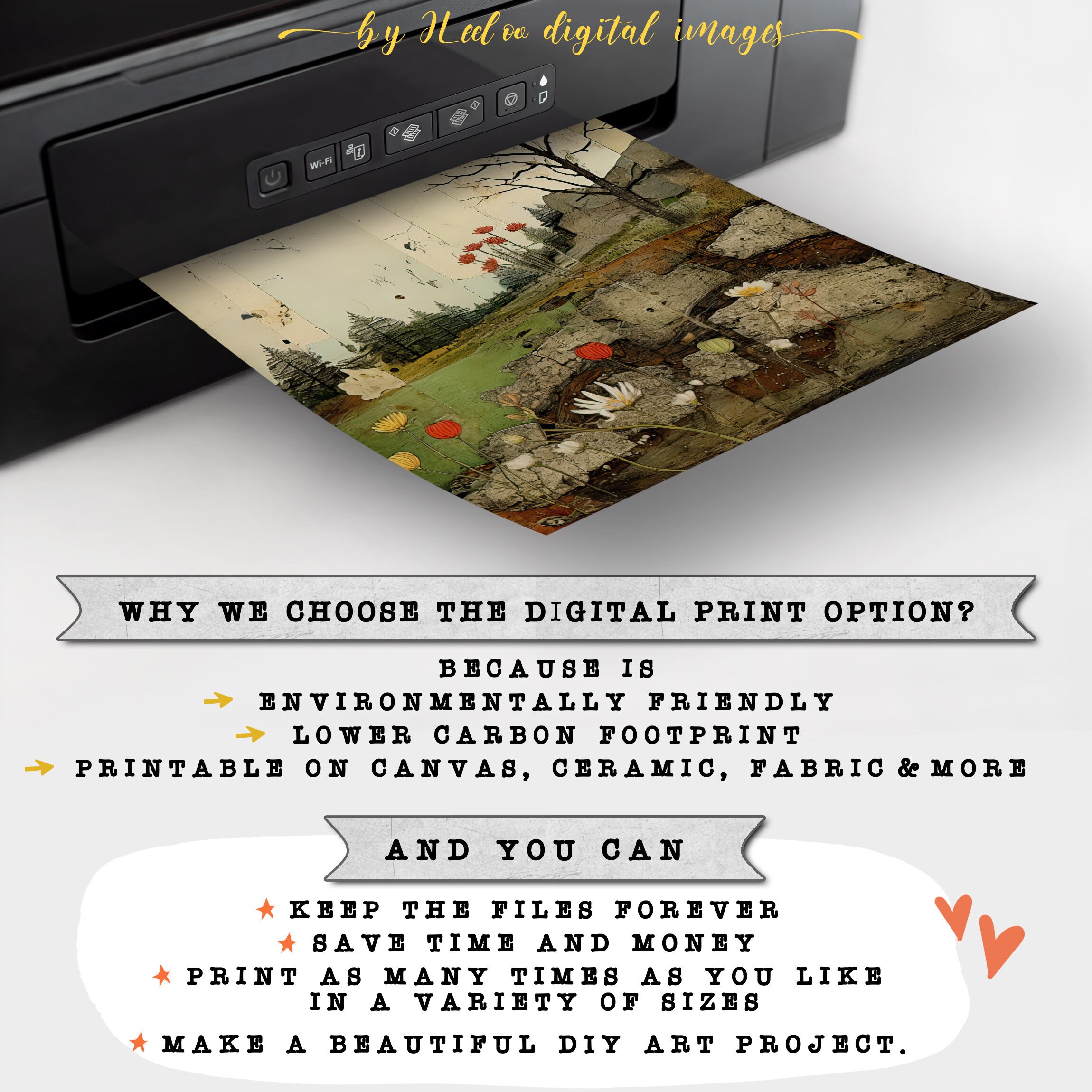 Lose yourself in the vintage allure of "Countryside Whispers" where spring unfolds in muted hues, revealing a collage of worn textures that tell a story of bygone romance