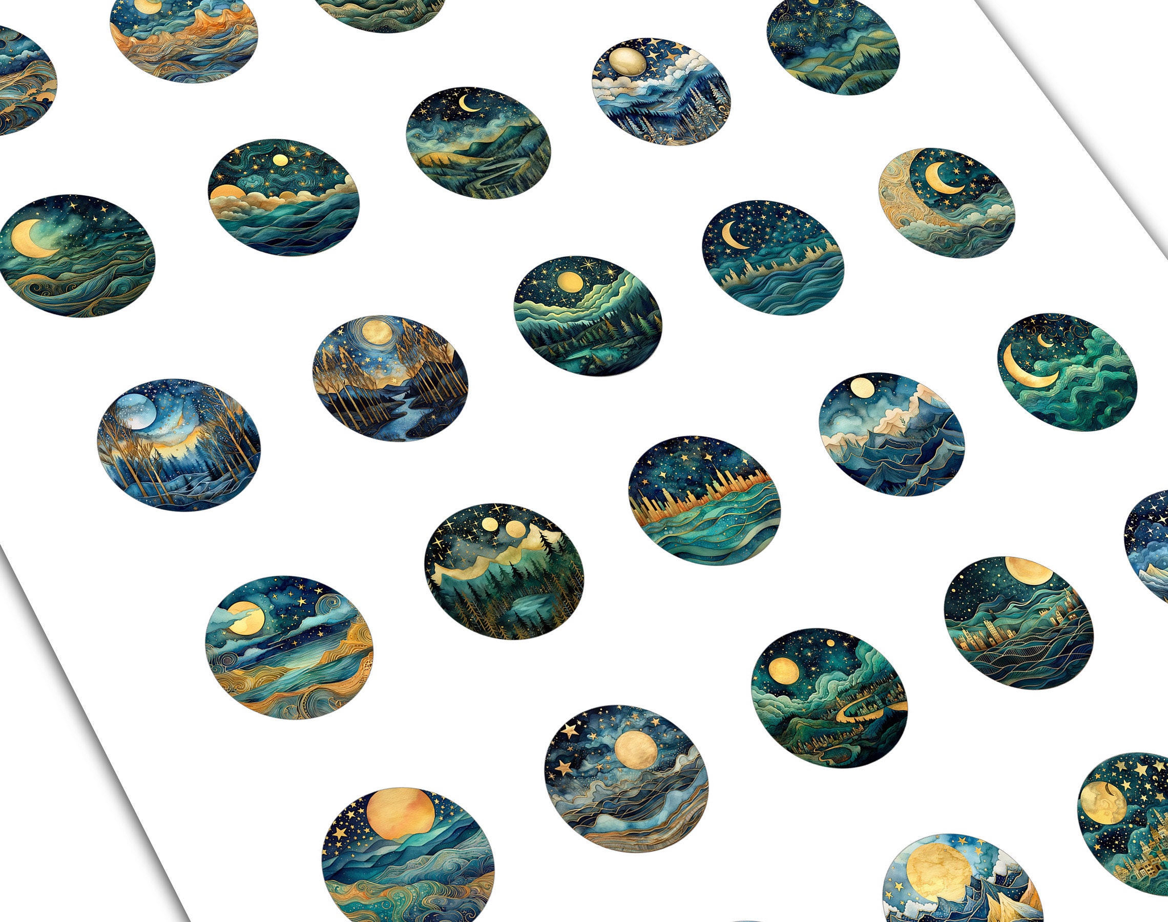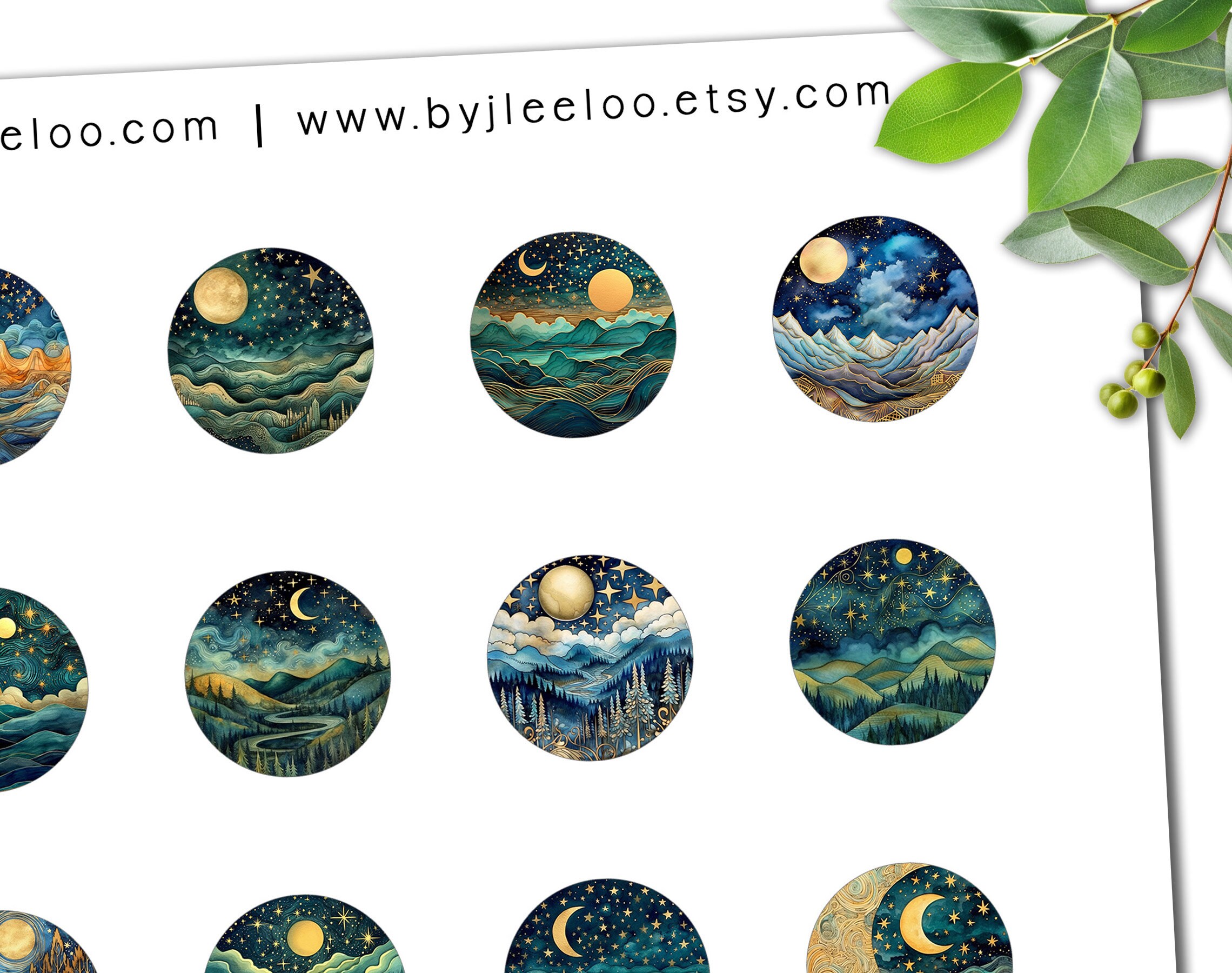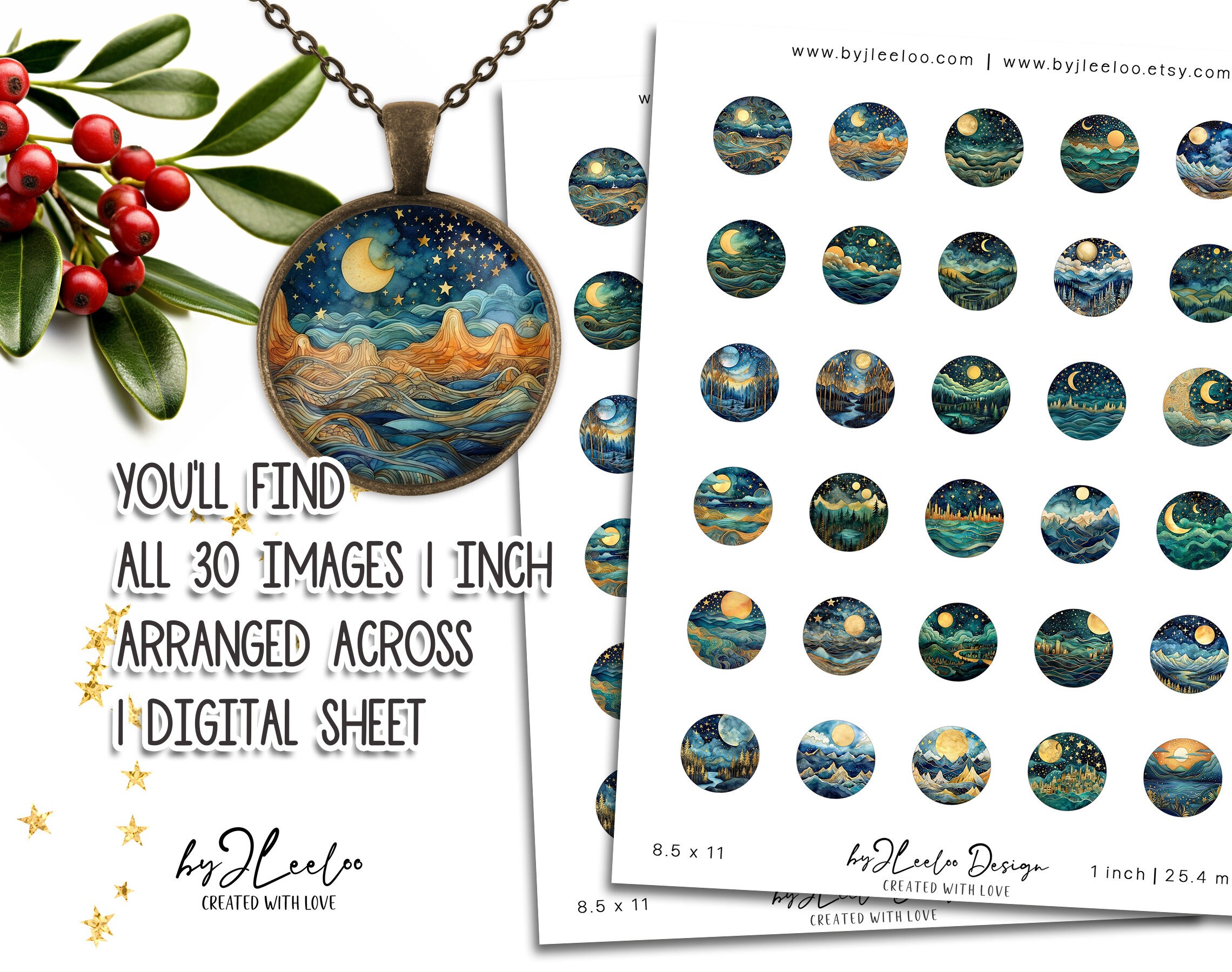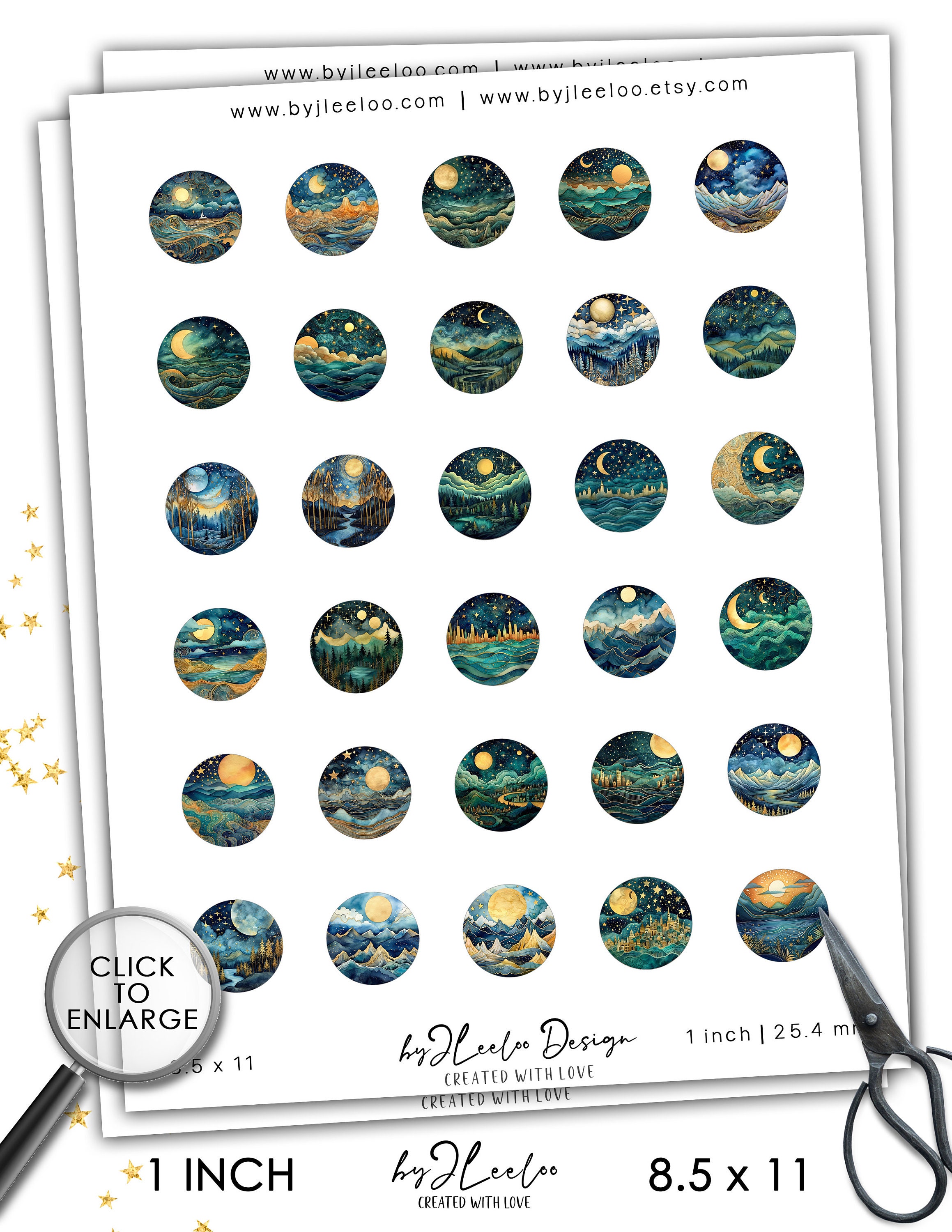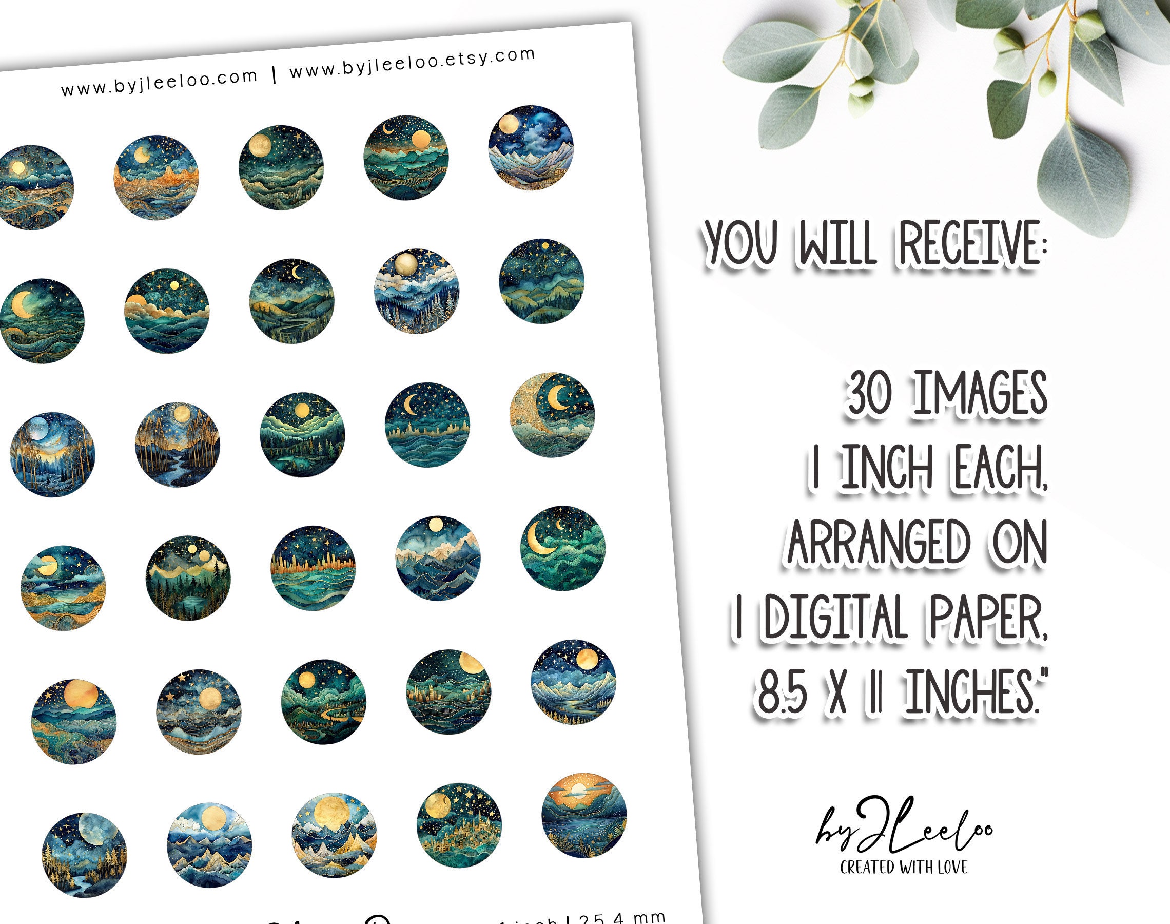 WATERCOLOR LANDSCAPE 1 inch circle printable for bottle cap sticker pendant pin badge magnet coaster | graphic digital collage sheet | tn722