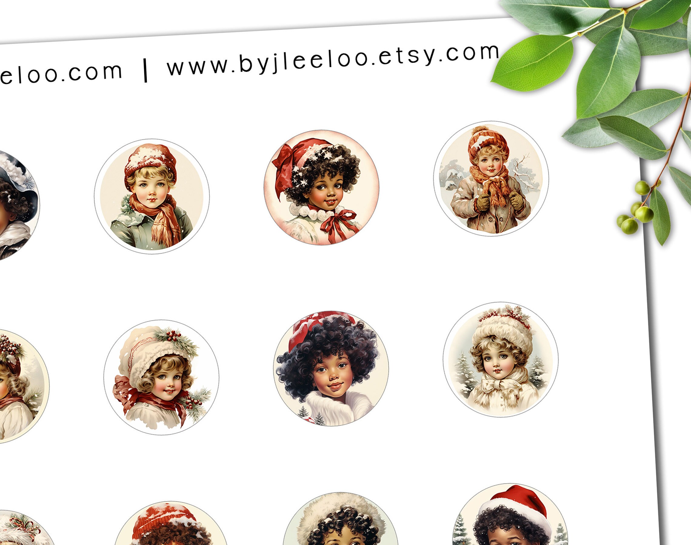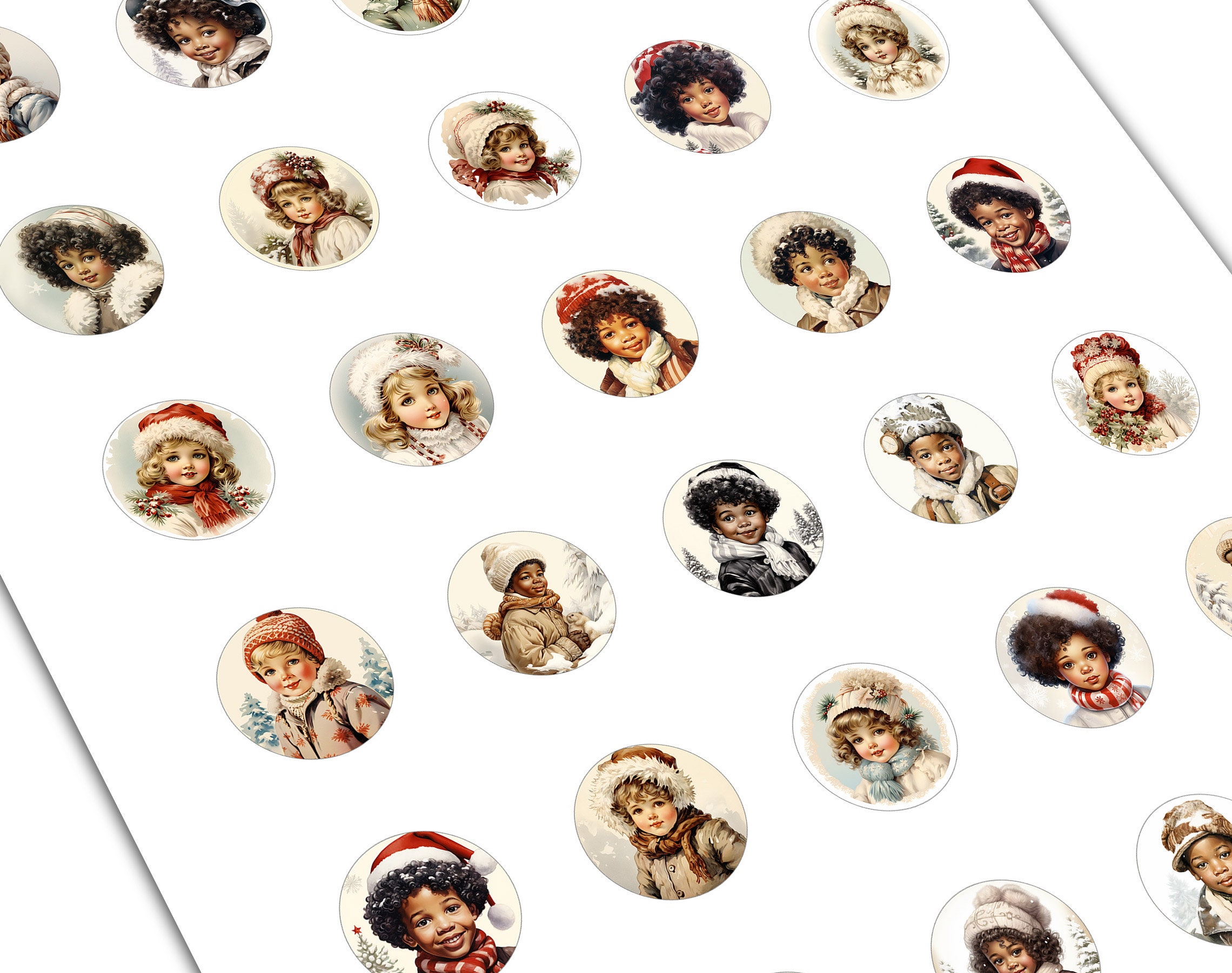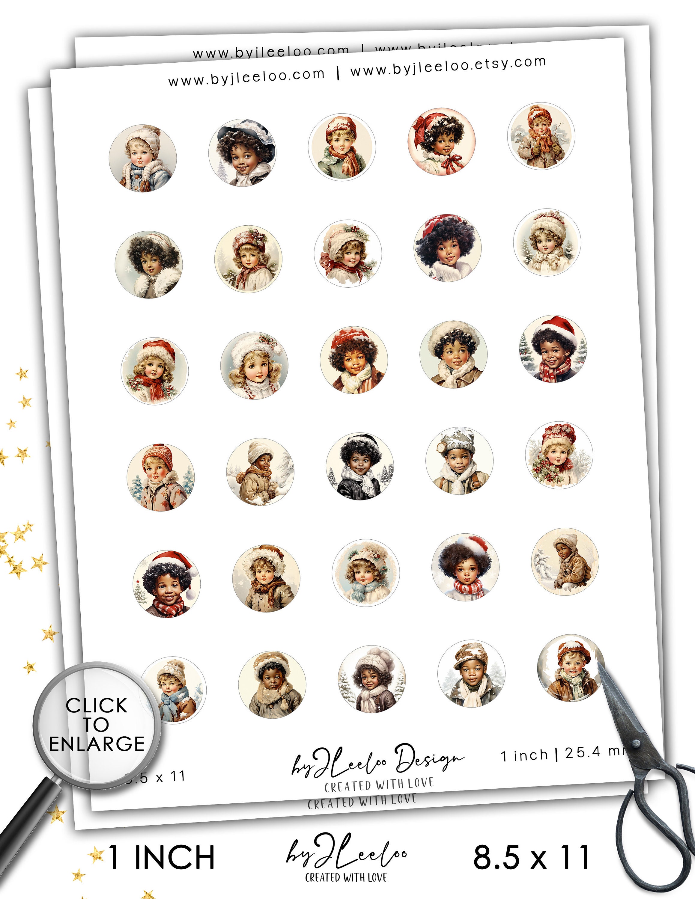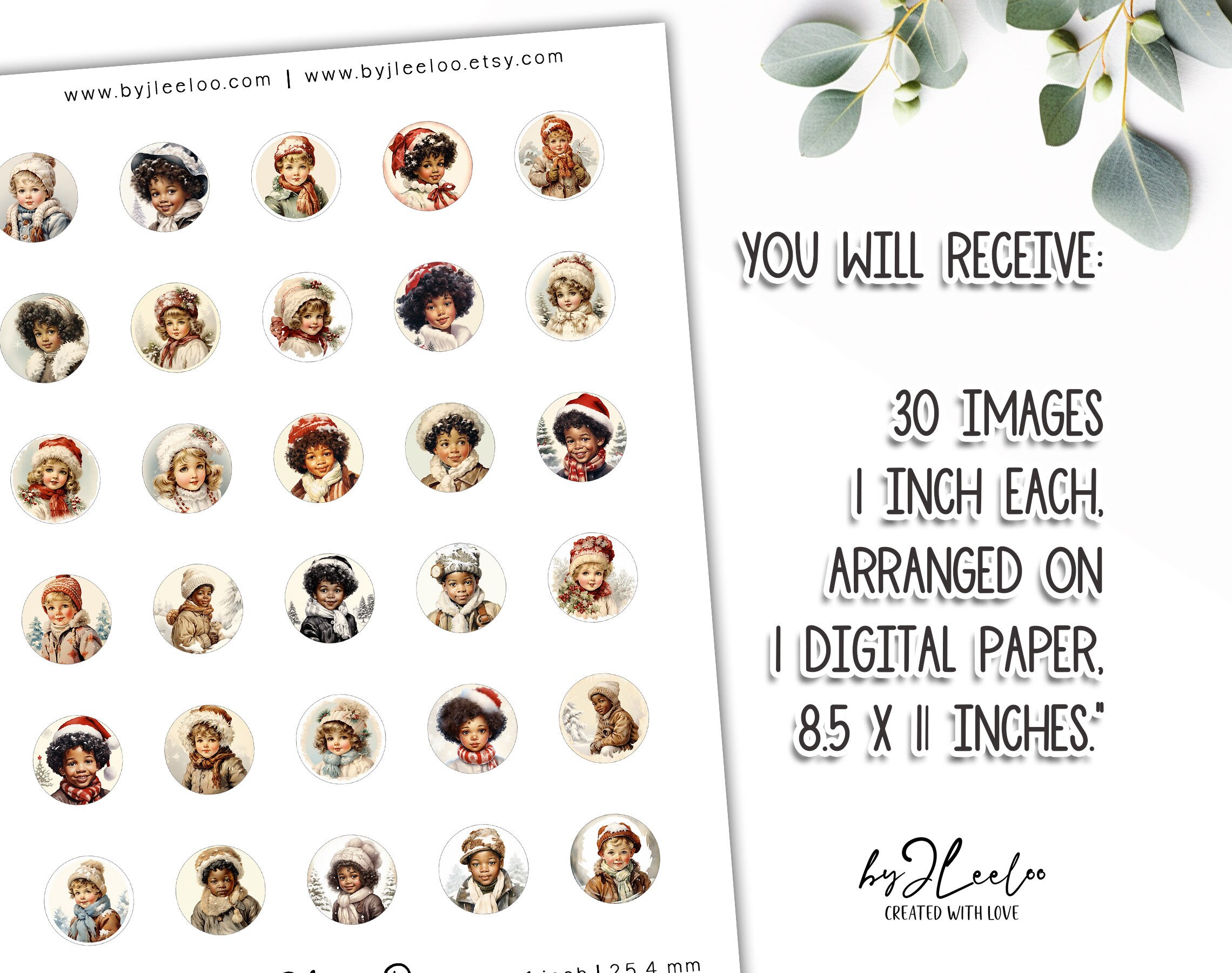 ADORABLE VINTAGE 1 inch printable christmas holidays | supplies round pendant, bezel trays, glass cabochon mountings, cameo settings | tn692
