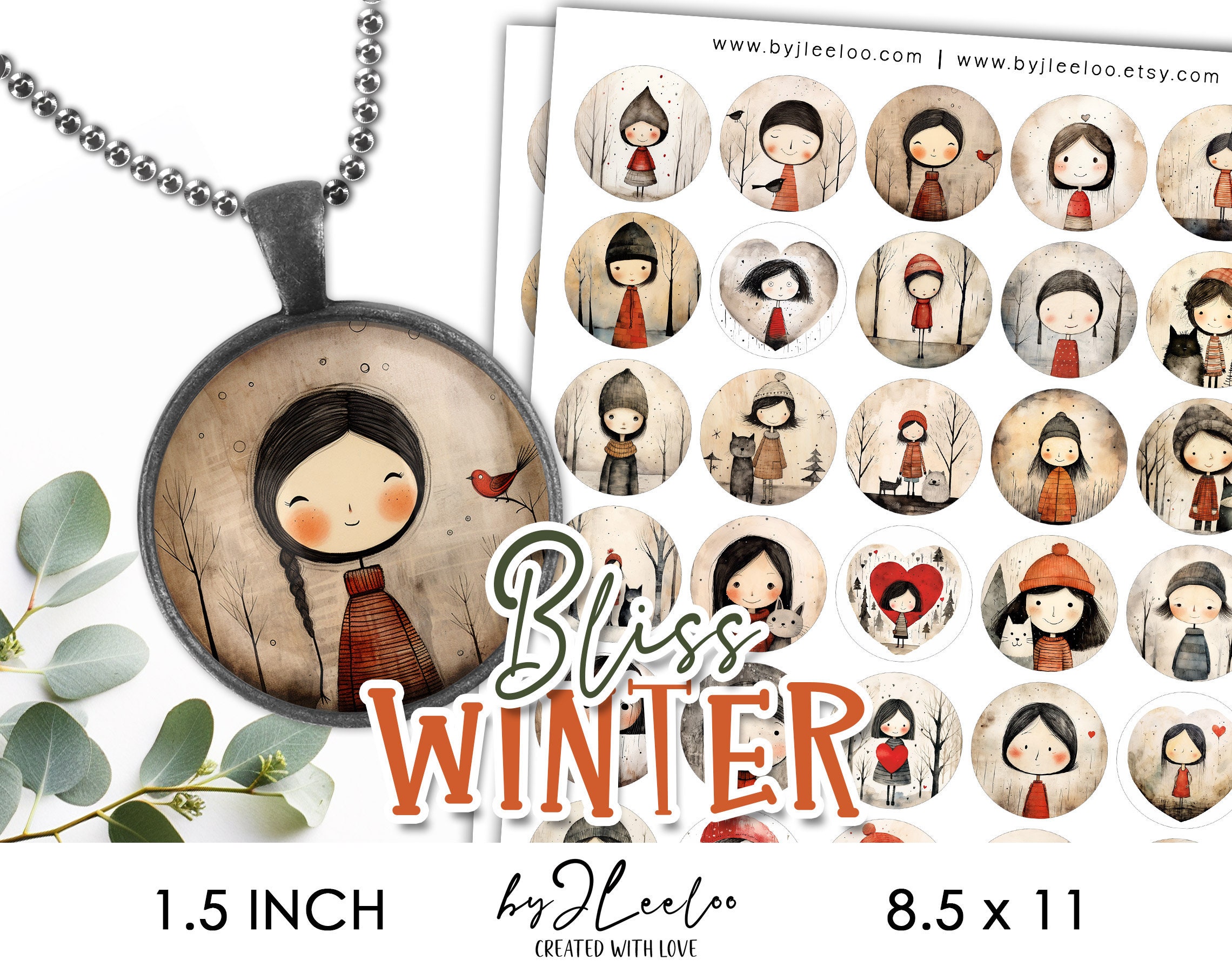WINTER BLISS 1.5 inch printable Christmas | Holidays supplies round pendant charm glass cabochon magnet | journal scrapbooking craft | tn699
